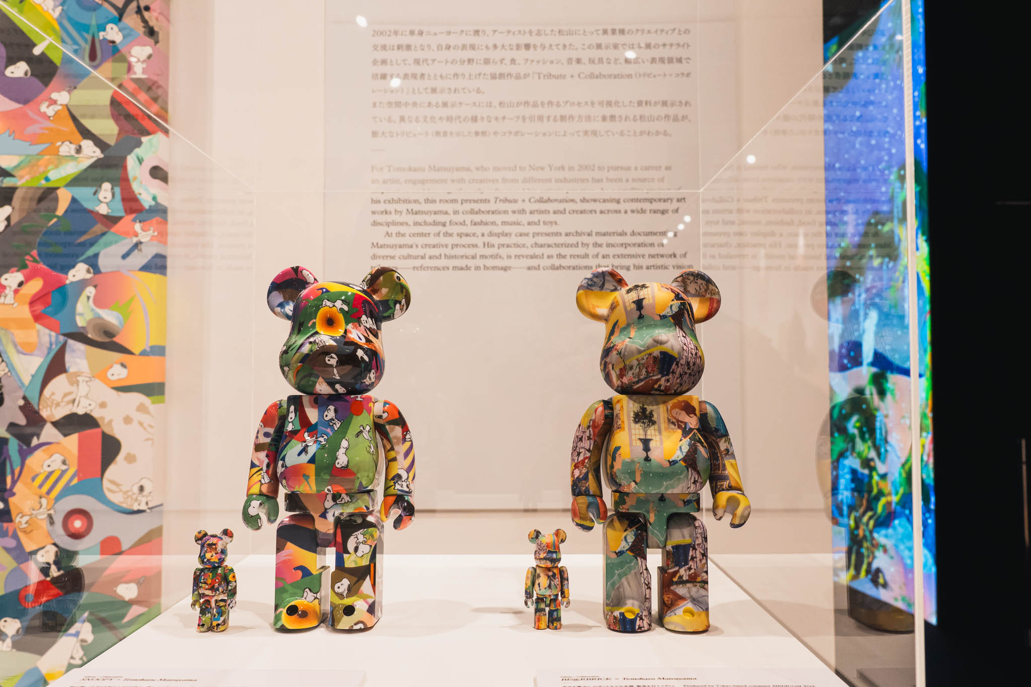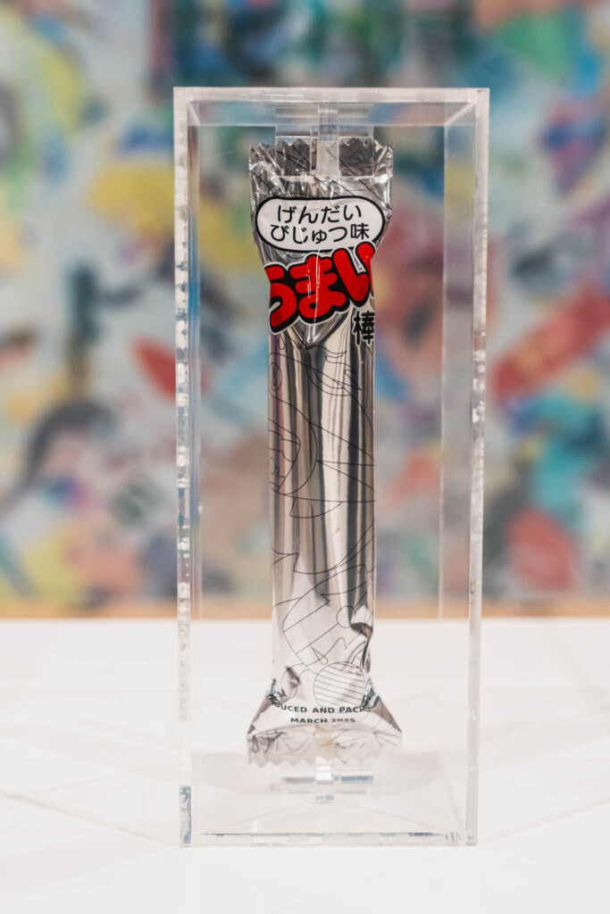 松山の創作の中核にある「サンプリングと再構成」の精神が前面に出た章です。うまい棒とのコラボレーション《げんだいびじゅつ味》は、アートと大衆文化の垣根を取り払う挑戦的な作品。また、BE@RBRICKとの限定フィギュアや、アパレルブランドとの協業作品など、ジャンルを超えたコラボレーションが展開されており、現代アートにおける「遊び」と「市場性」を問い直す意義ある展示でもあります。松山の創作が美術館にとどまらず、日常や街にまで拡張していく過程がここに表れています。