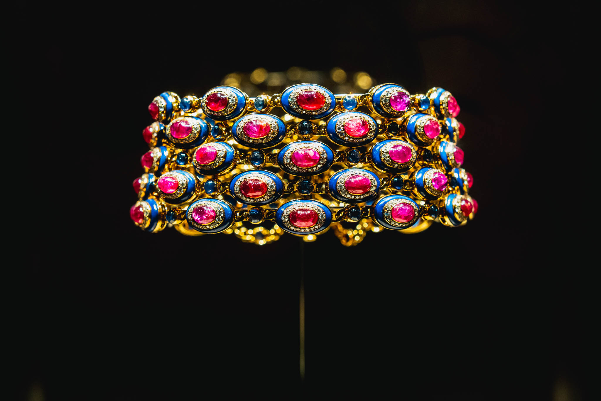 エメラルド、ルビー、サファイア どれも極上の石ばかりで、色彩の迫力は圧巻そのもの。