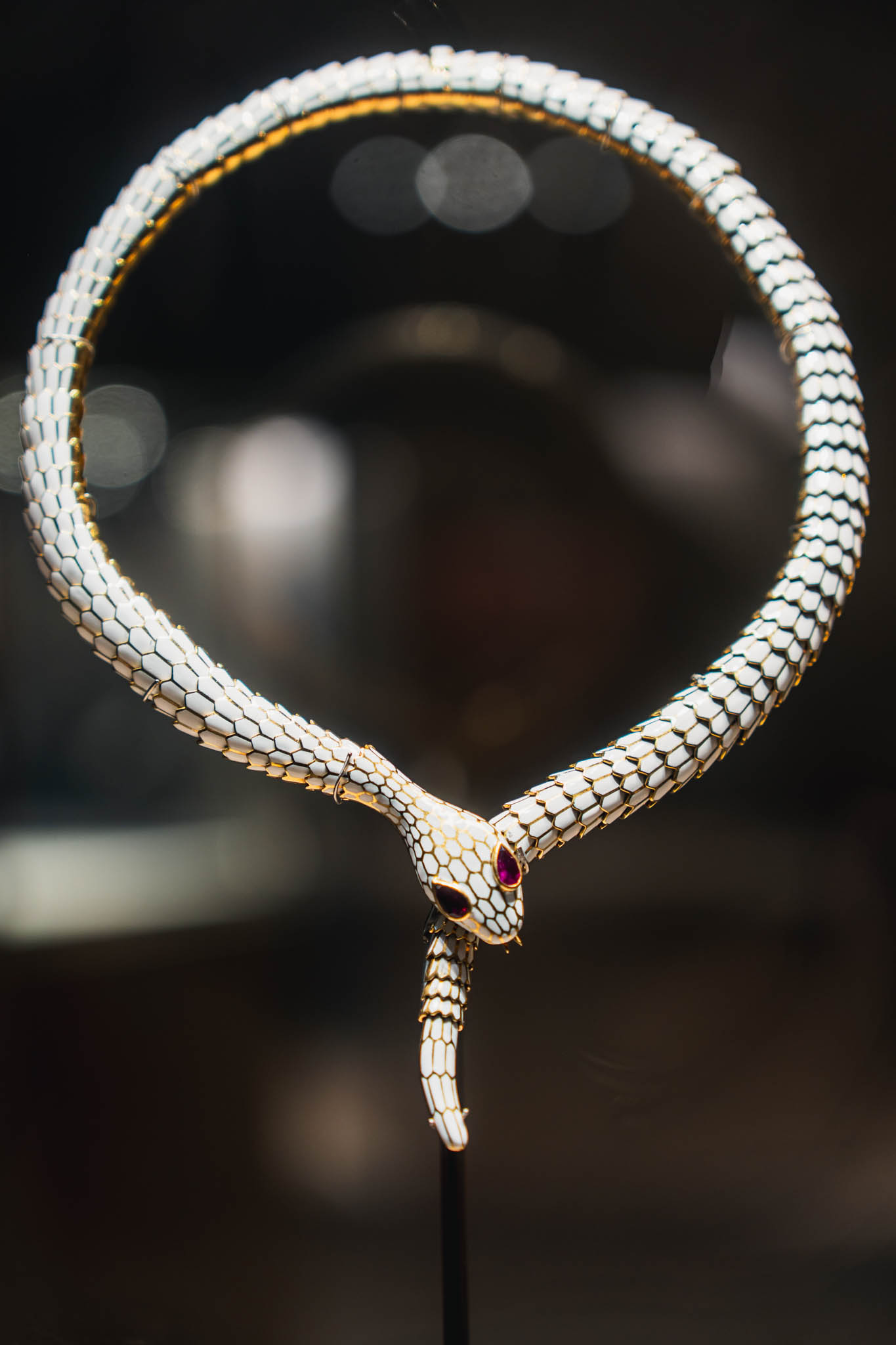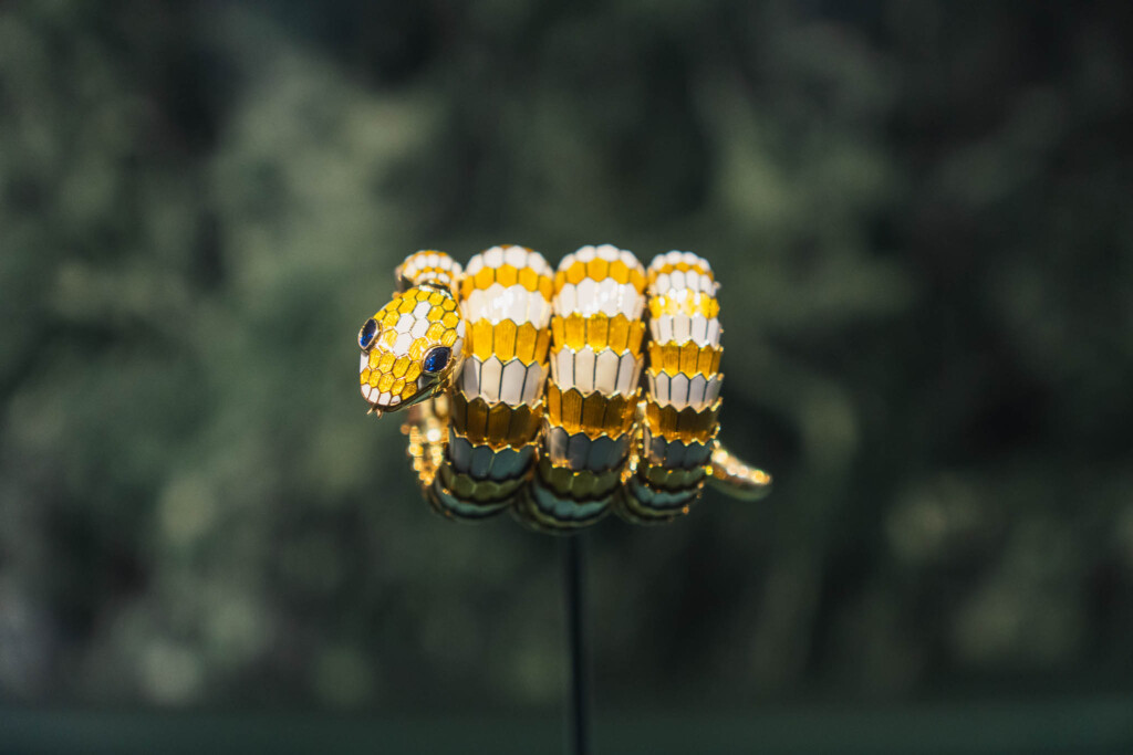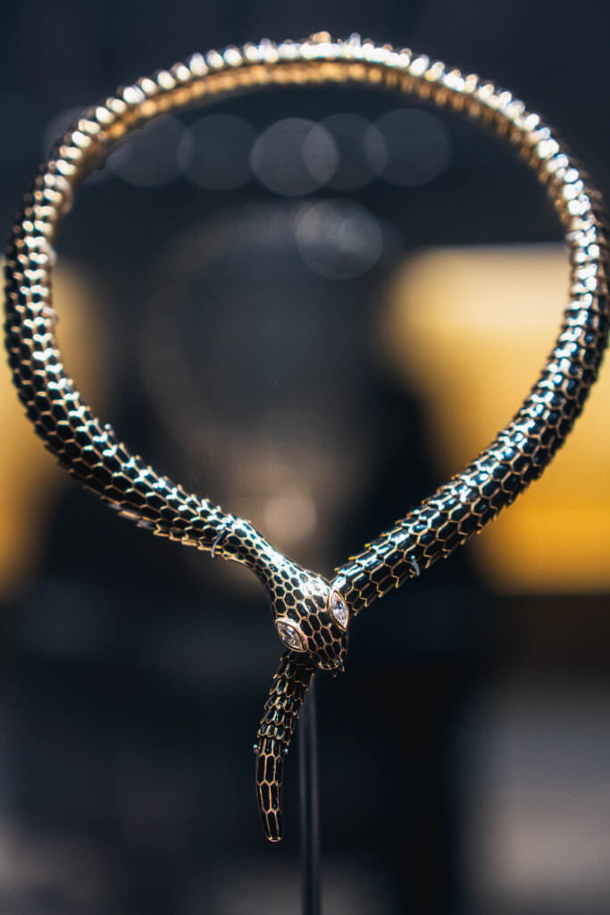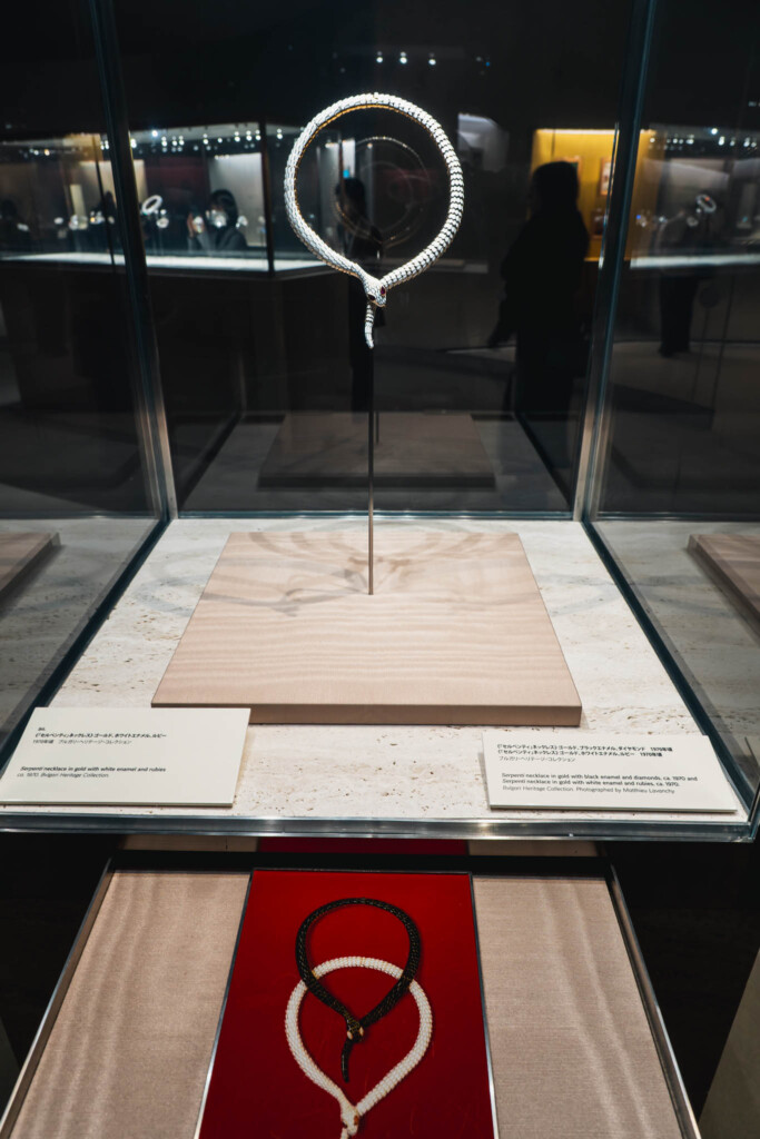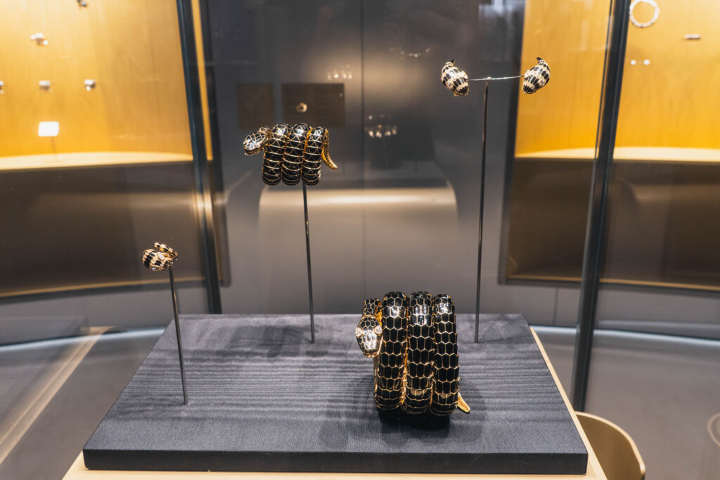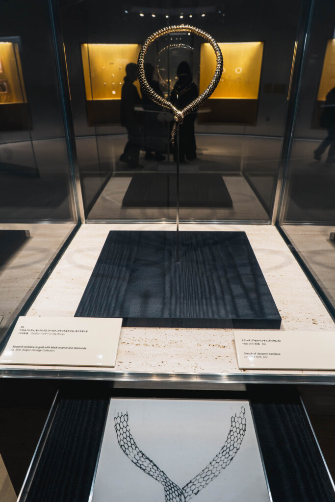 今回の展示で特に惹きつけられたのが、ブルガリの代表的シリーズ「セルペンティ」。