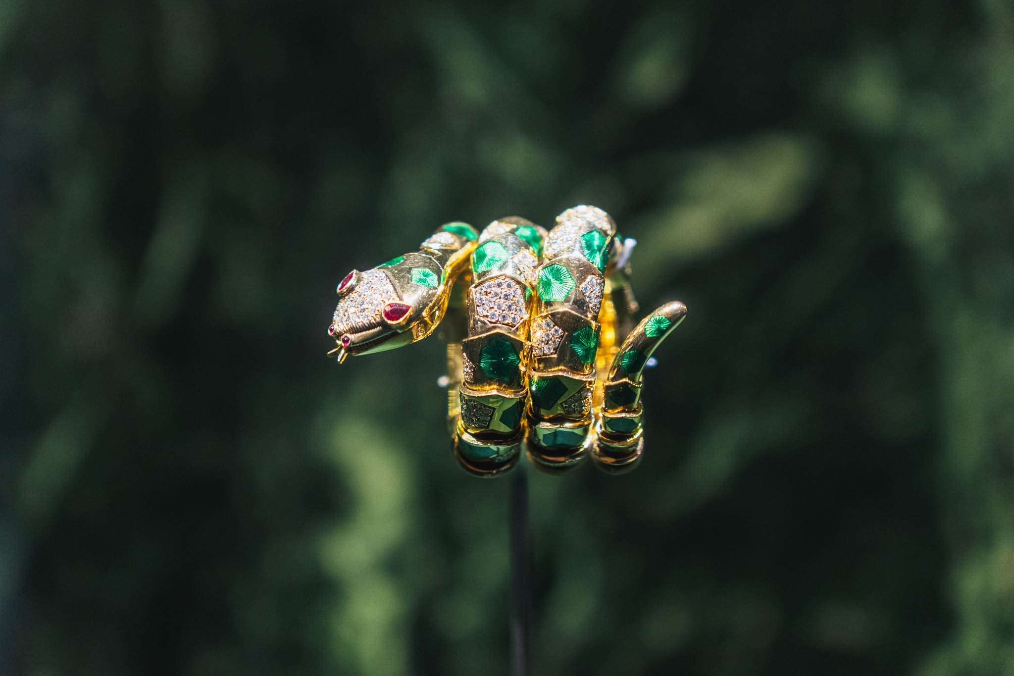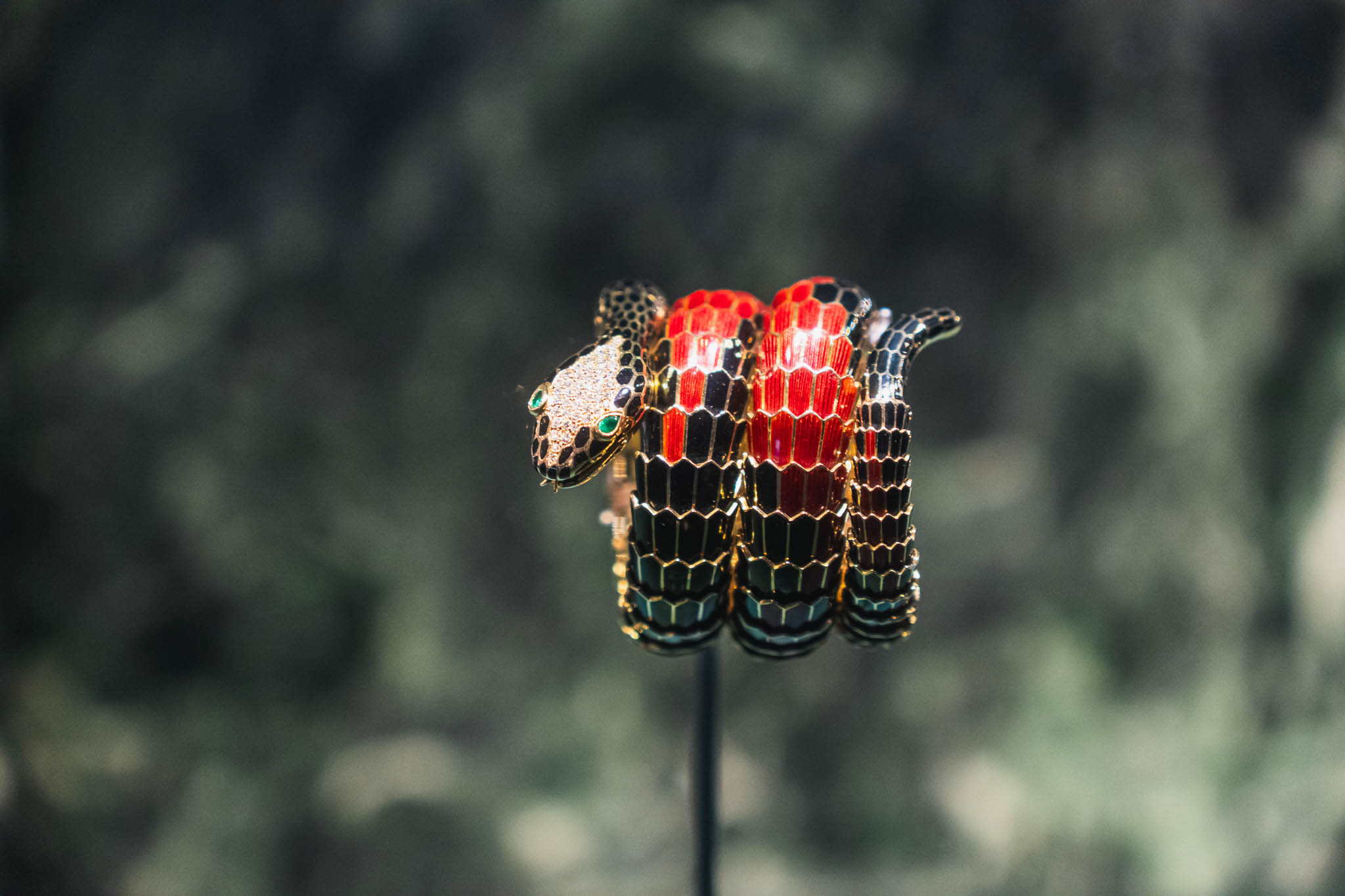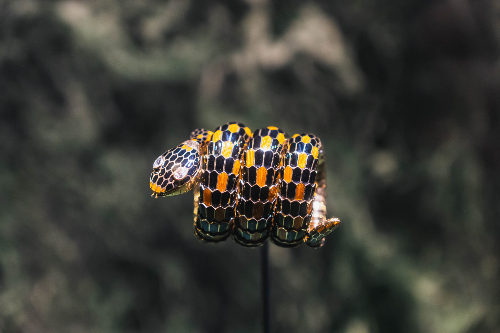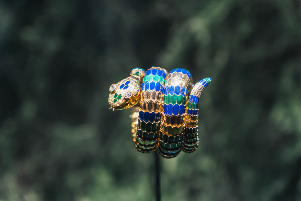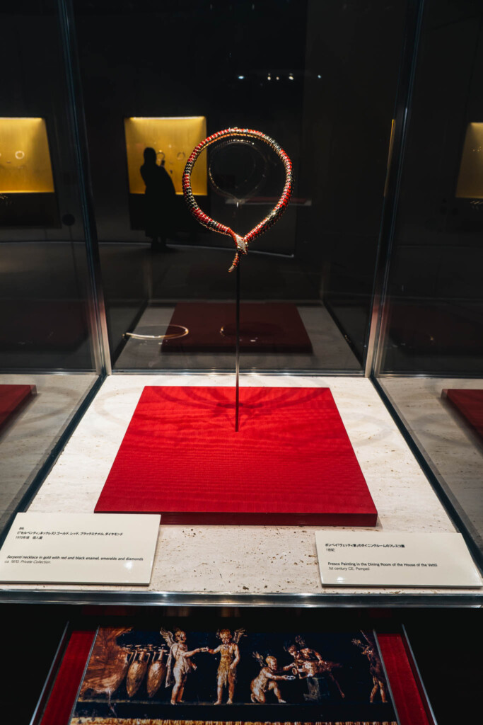 今回の展示で特に惹きつけられたのが、ブルガリの代表的シリーズ「セルペンティ」。