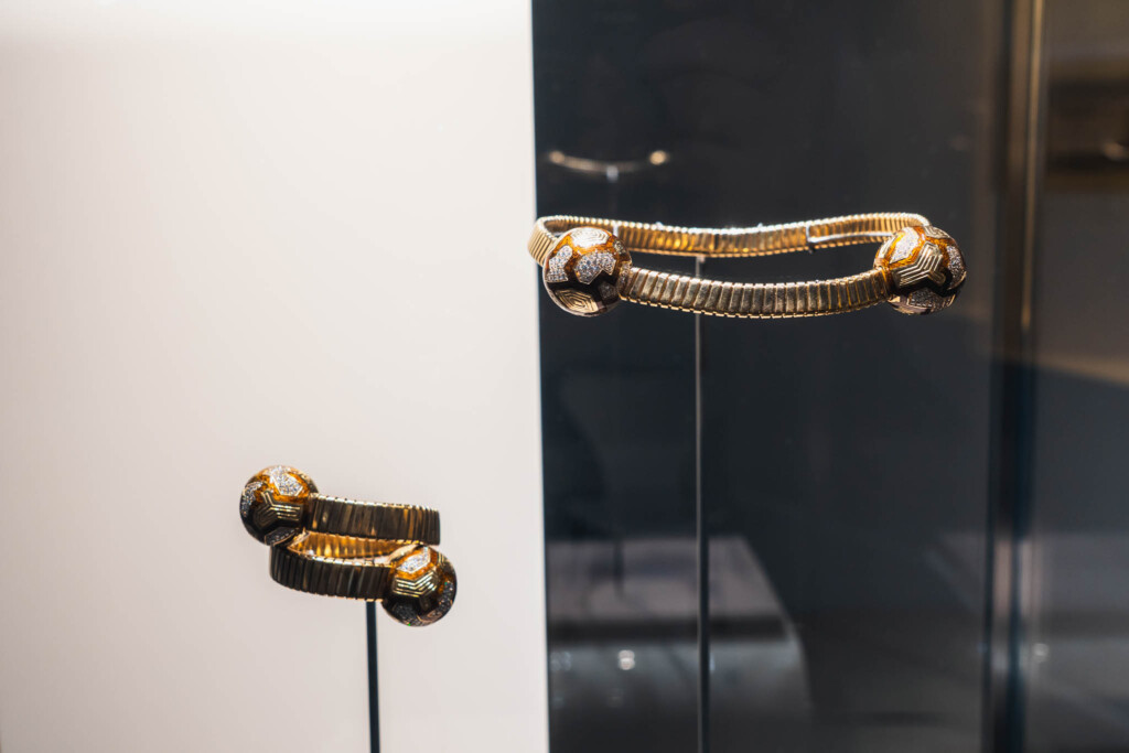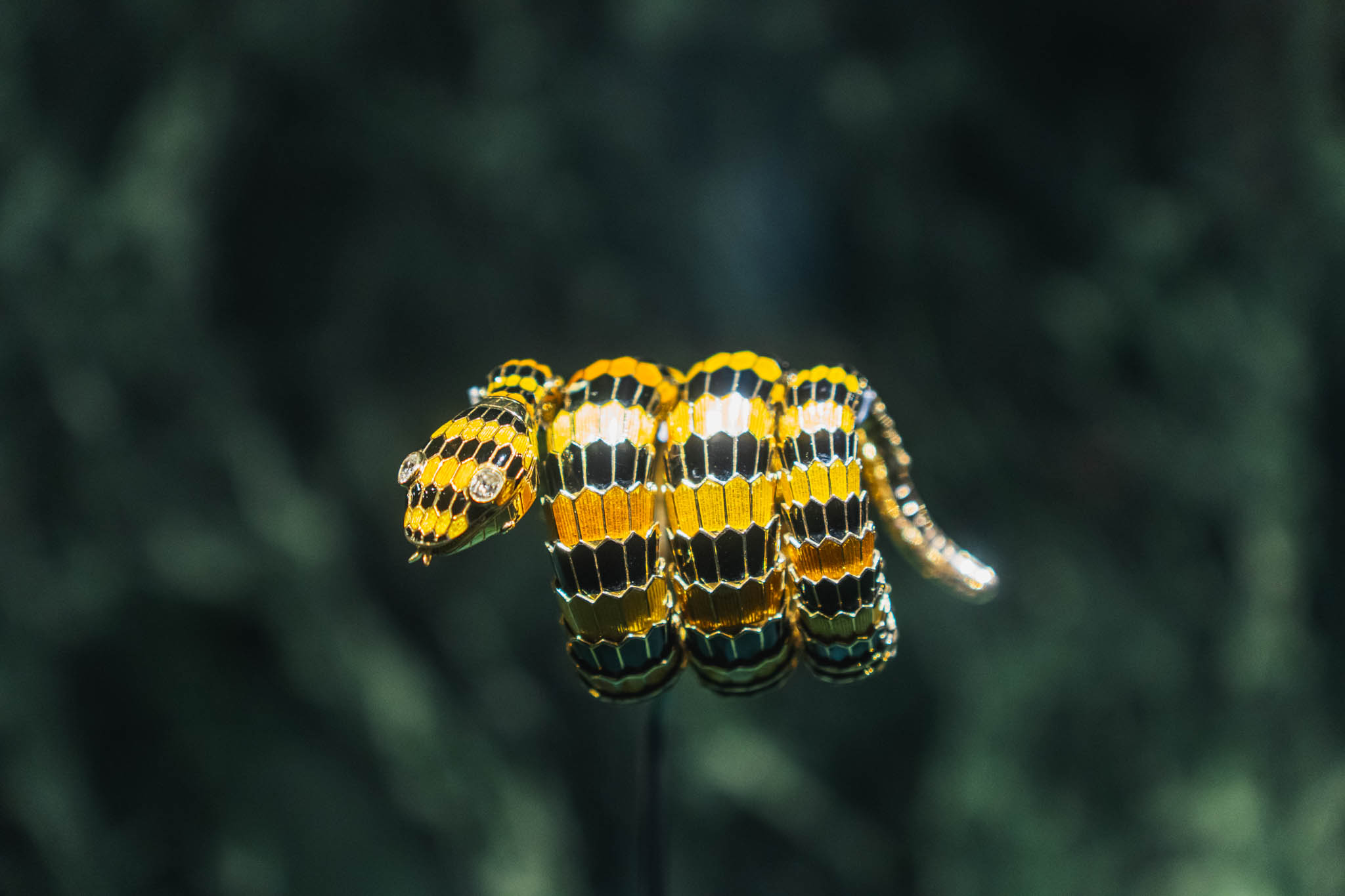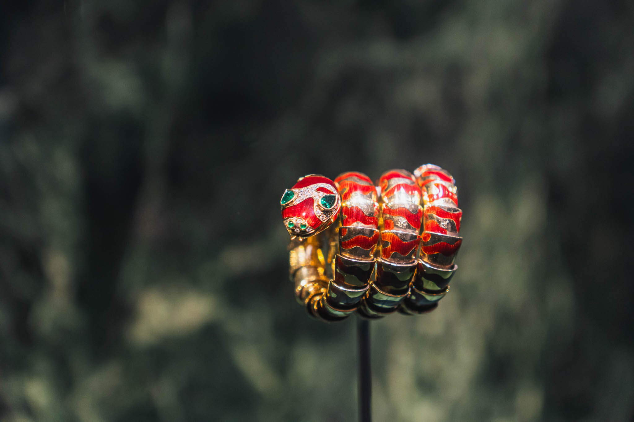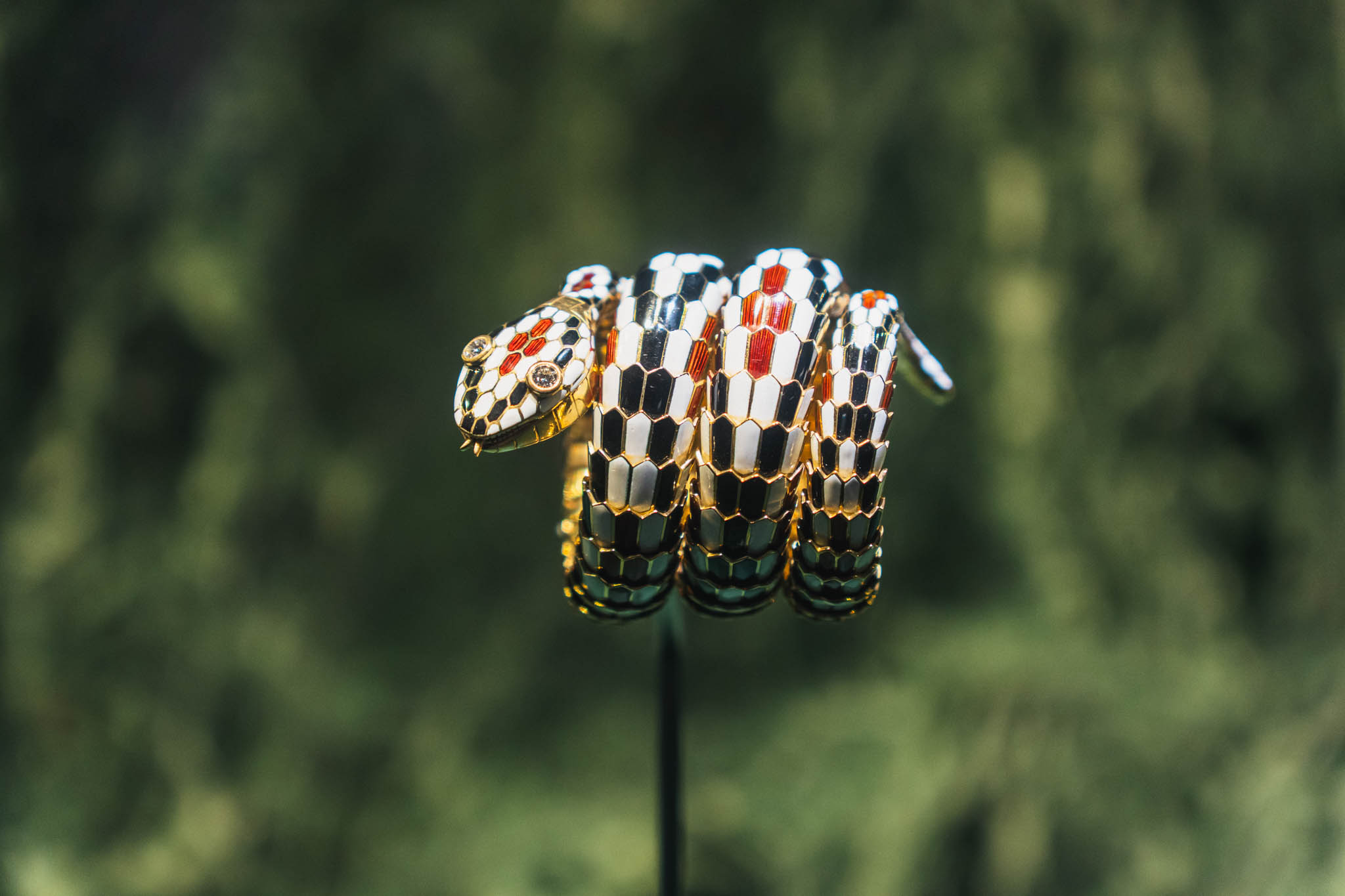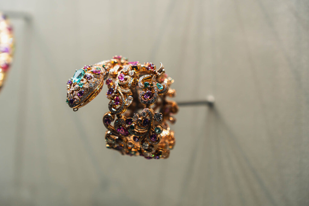 今回の展示で特に惹きつけられたのが、ブルガリの代表的シリーズ「セルペンティ」。