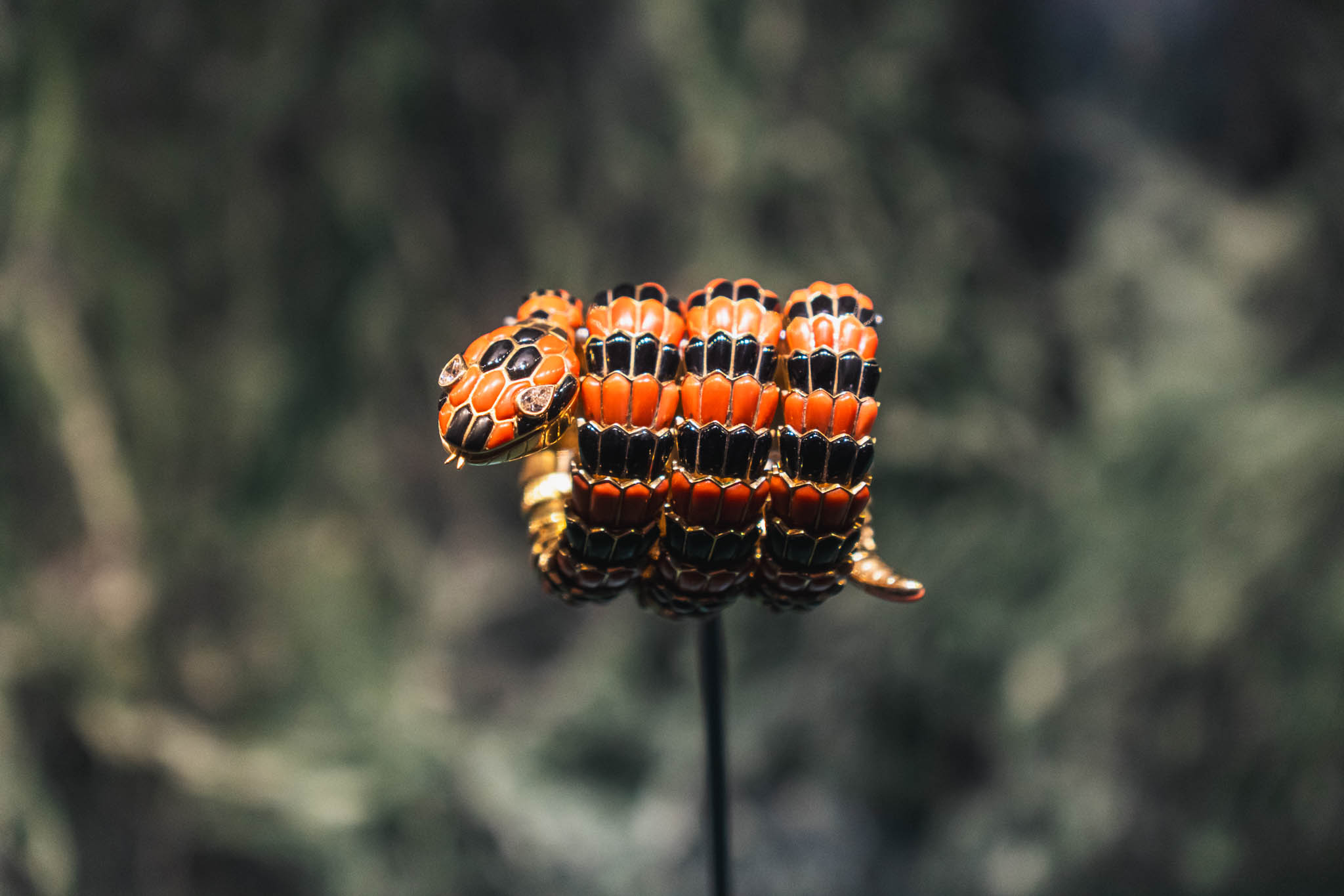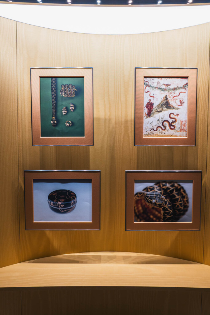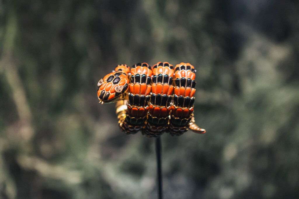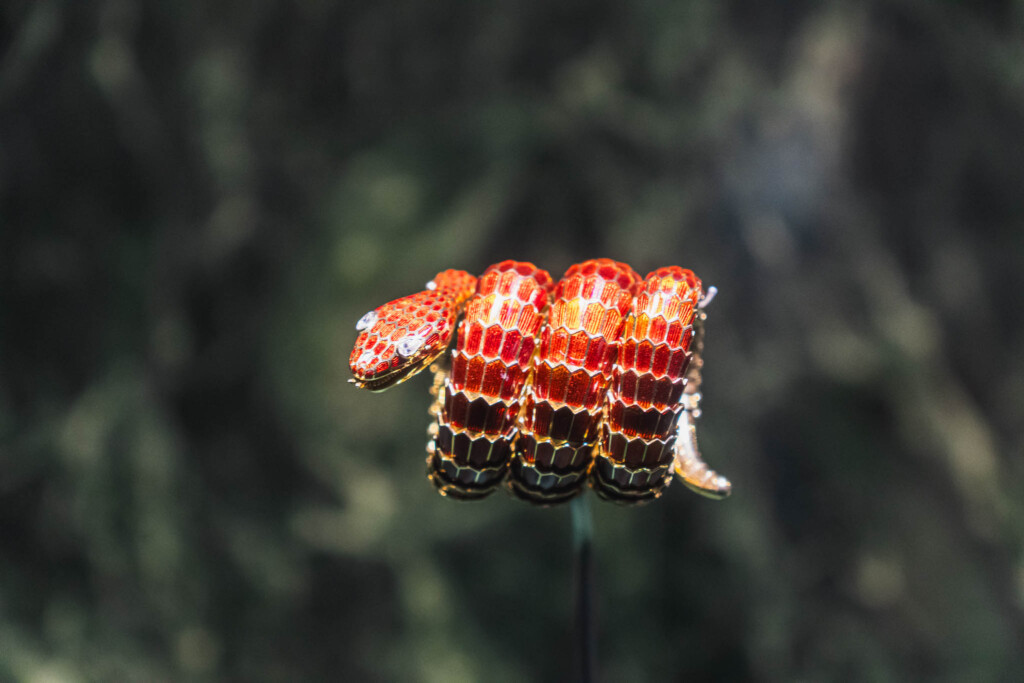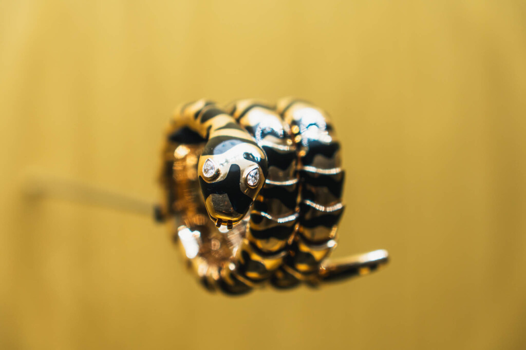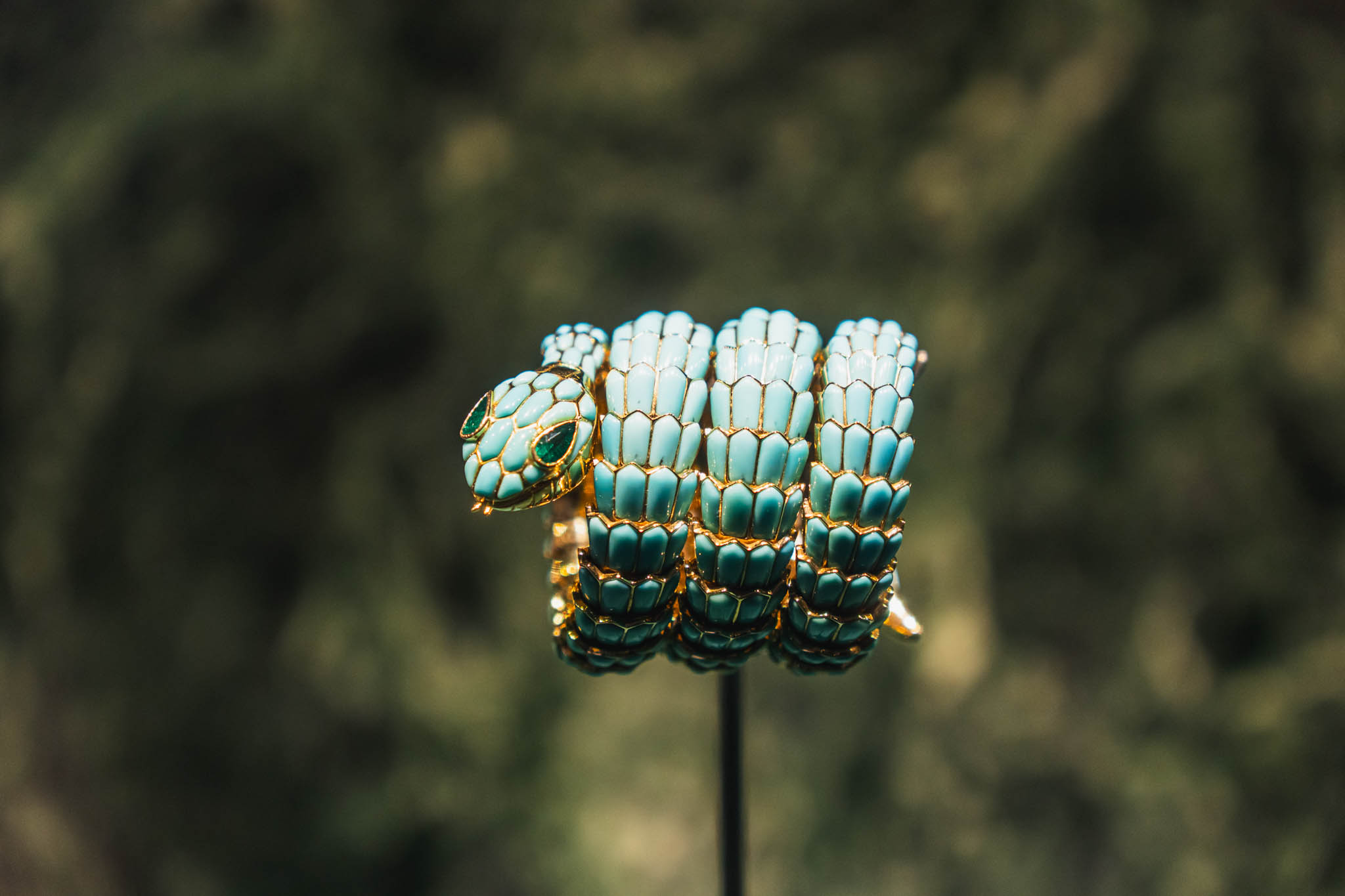 今回の展示で特に惹きつけられたのが、ブルガリの代表的シリーズ「セルペンティ」。