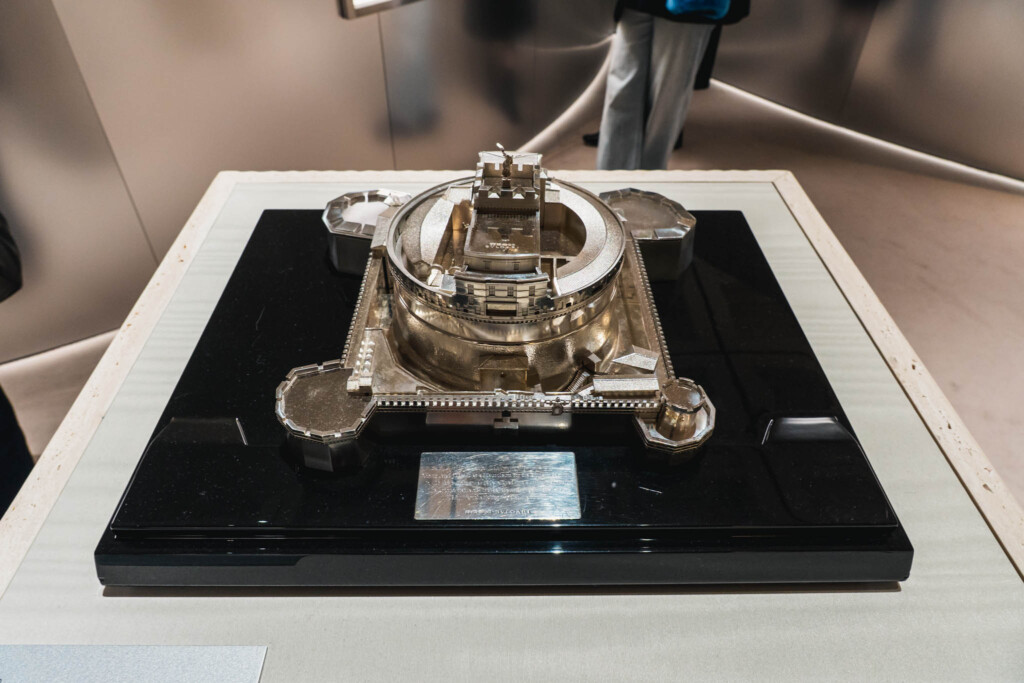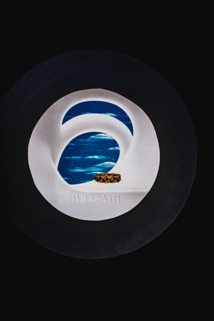 工業製品をアートへと転換するその手法は、ブルガリの「素材の美を引き出す」という哲学とも不思議な共鳴を見せていました。