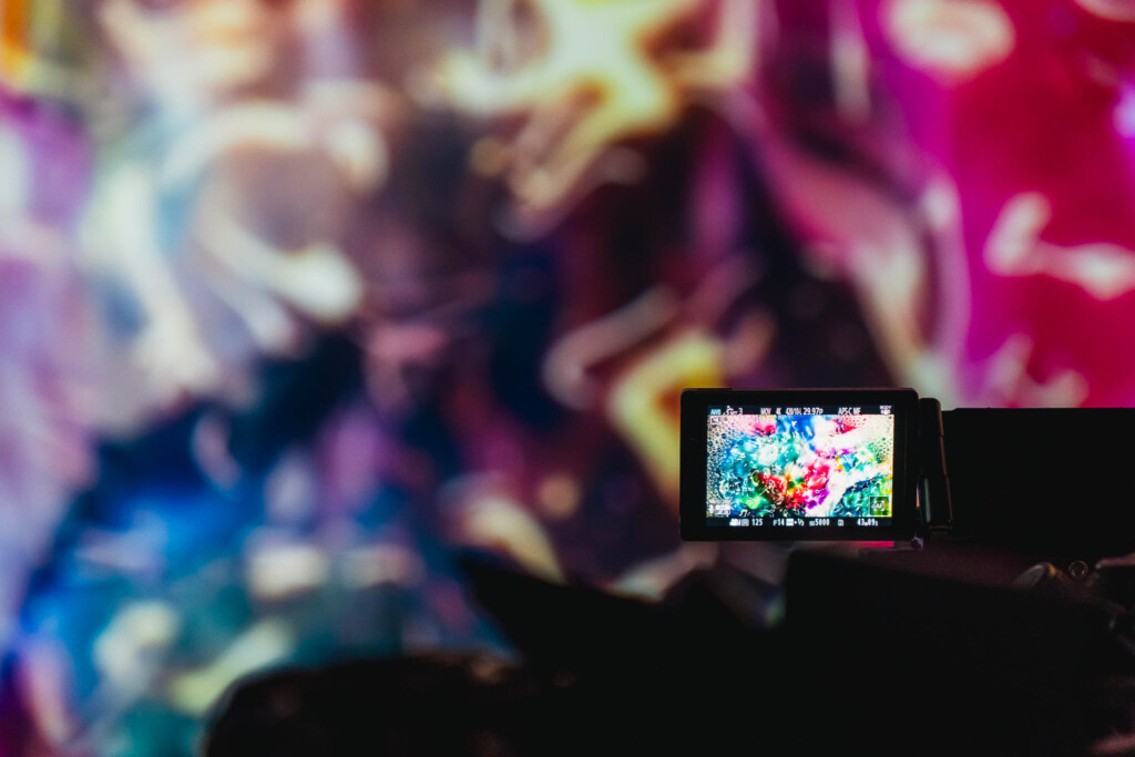 3台のカメラ映像をリアルタイムで編集・投影し、空間全体に広げていく作品です。