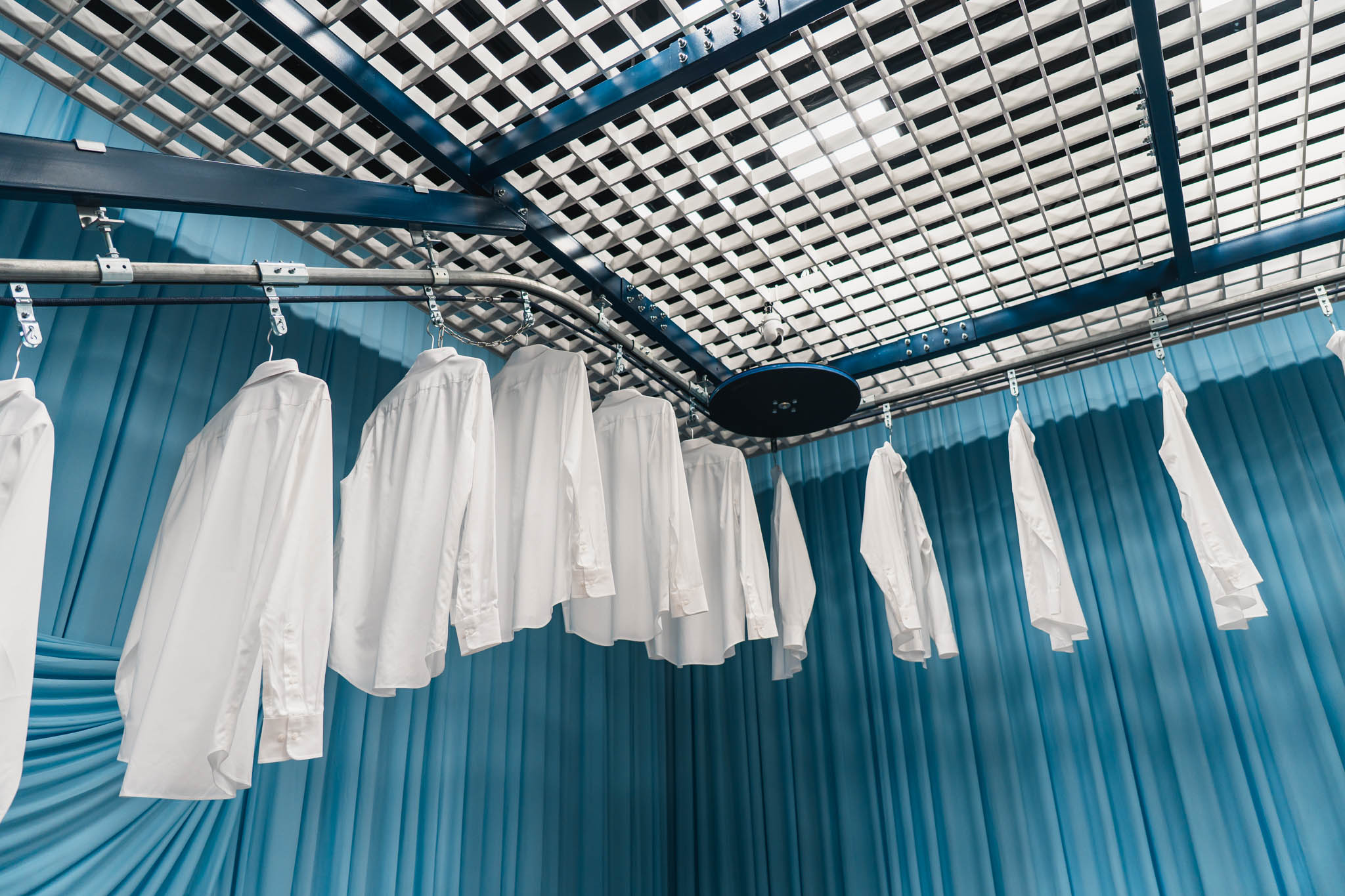 頭上では、Yシャツが連なって機械でぐるぐる回る仕掛けが動いていて、