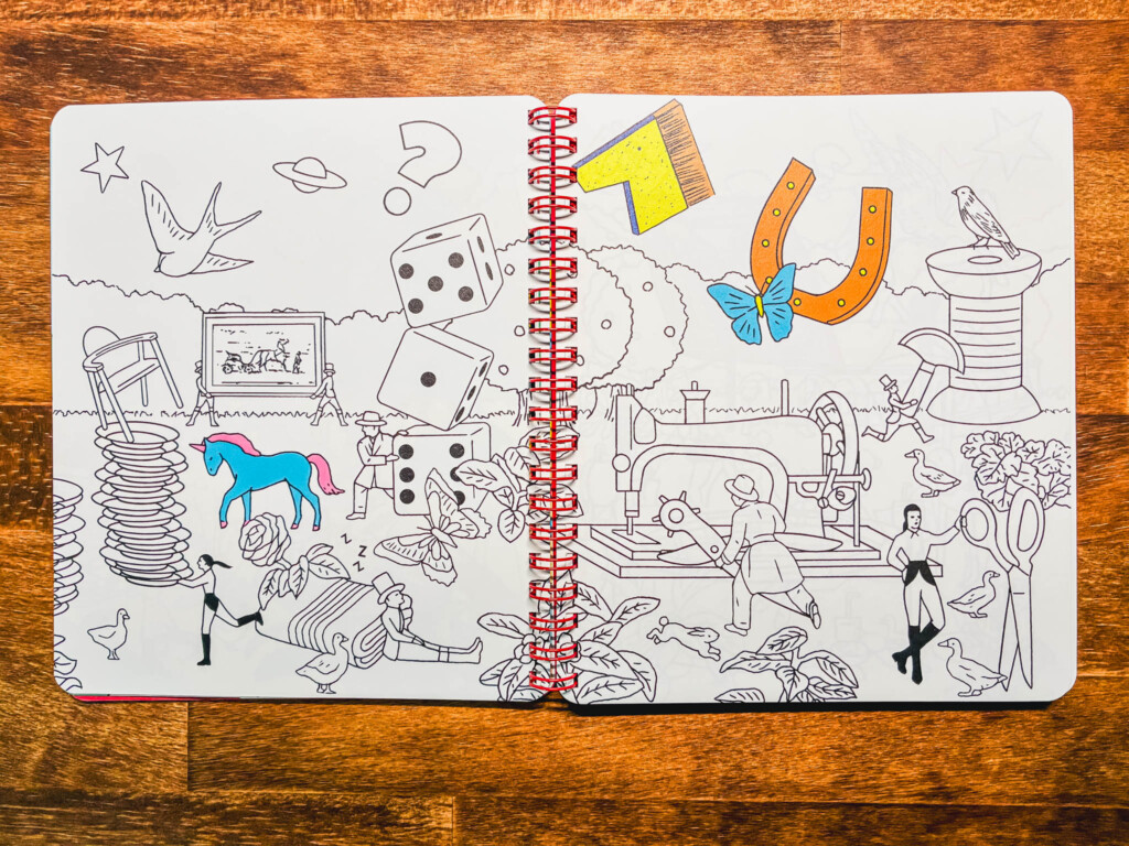 「今回の物語・塗り絵・白紙ノートが1冊にまとまった特製ノート」