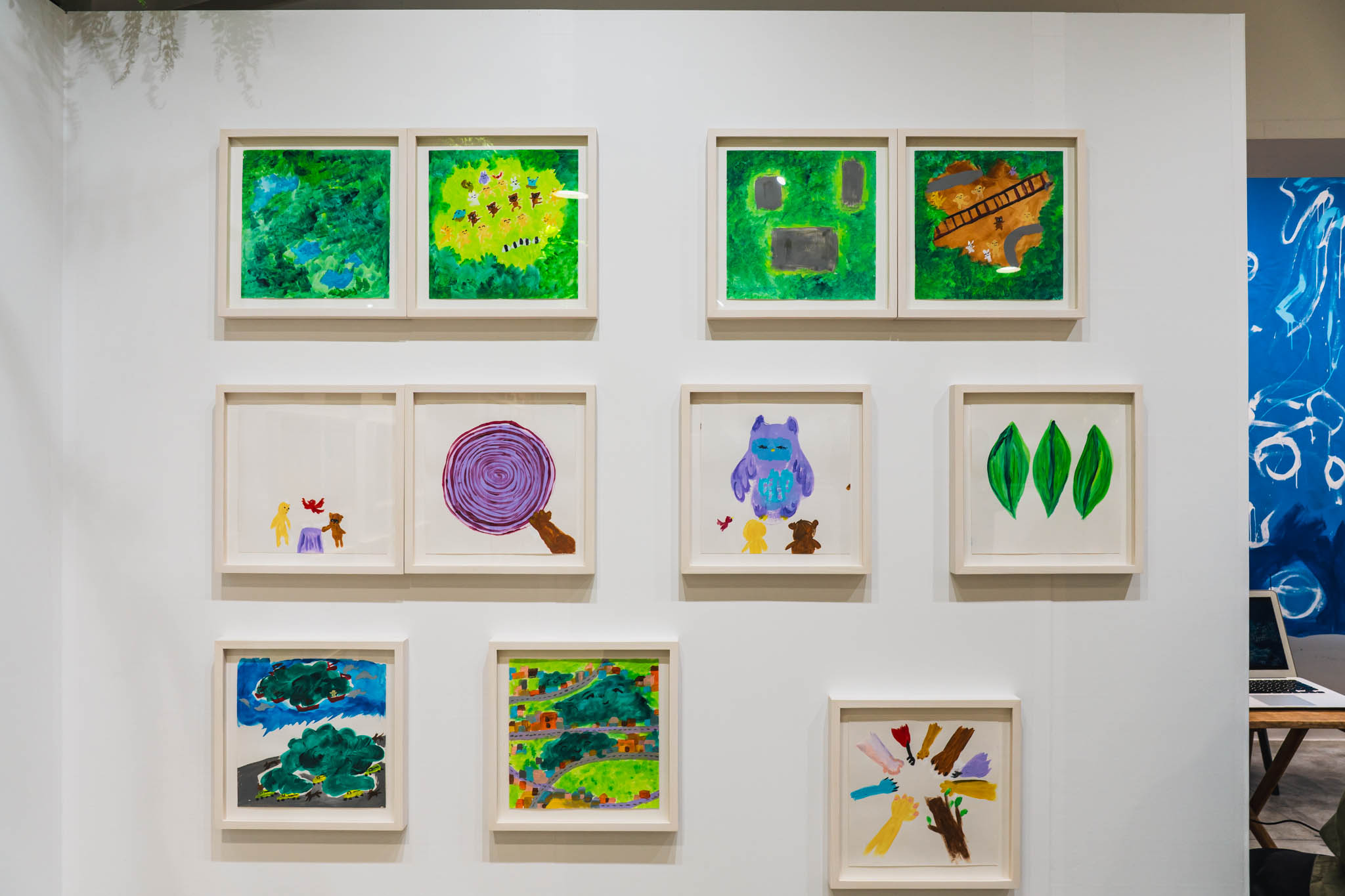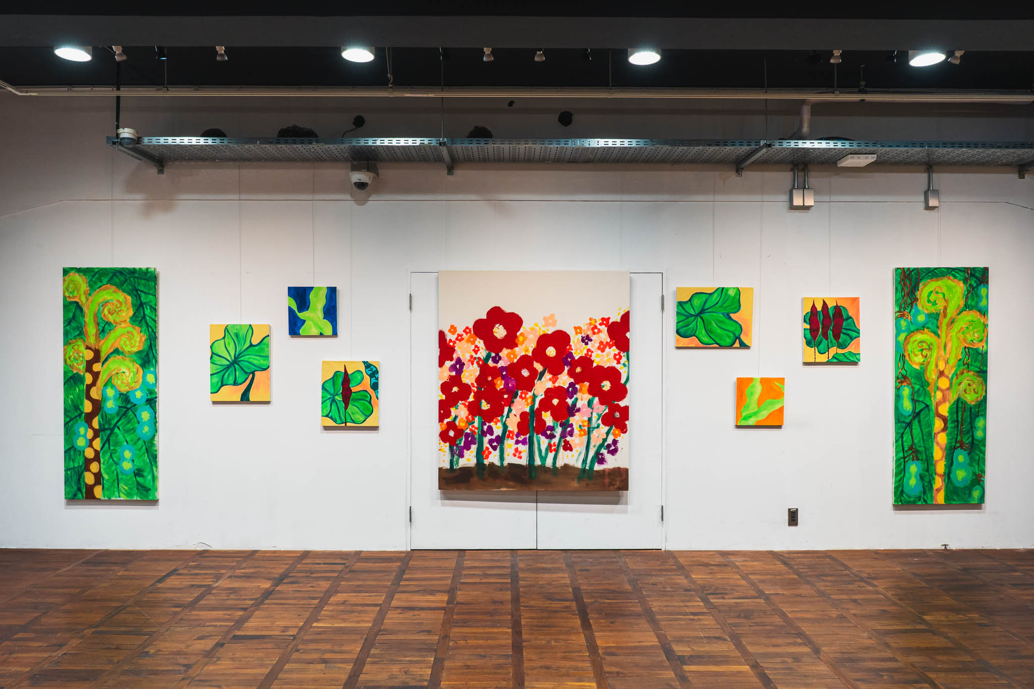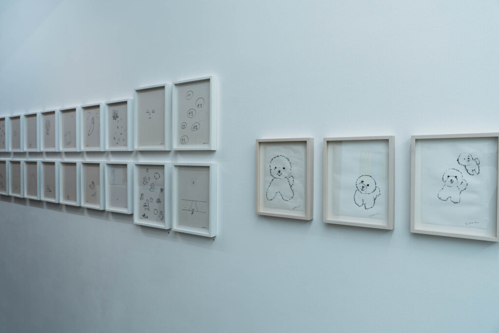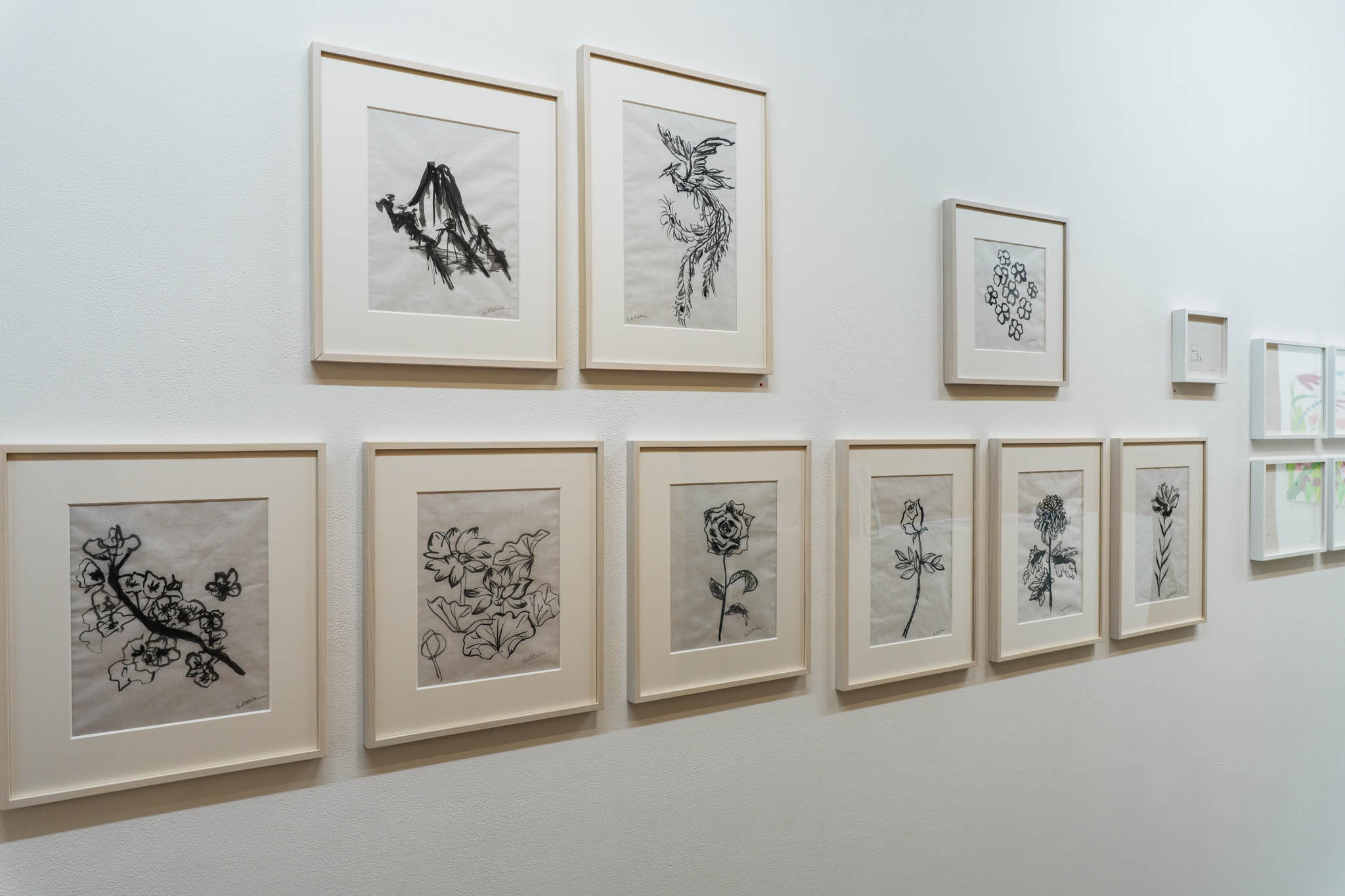 六本木のギャラリーでは、2012年の画家デビュー以降、晩年までの絵画・ドローイングが並んでいた。