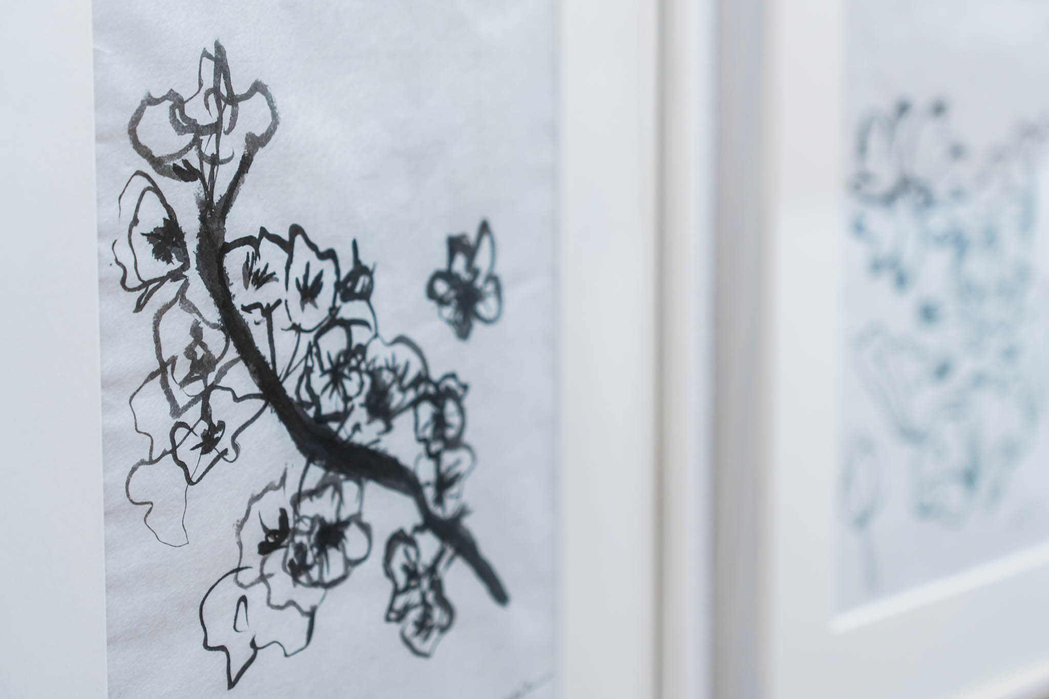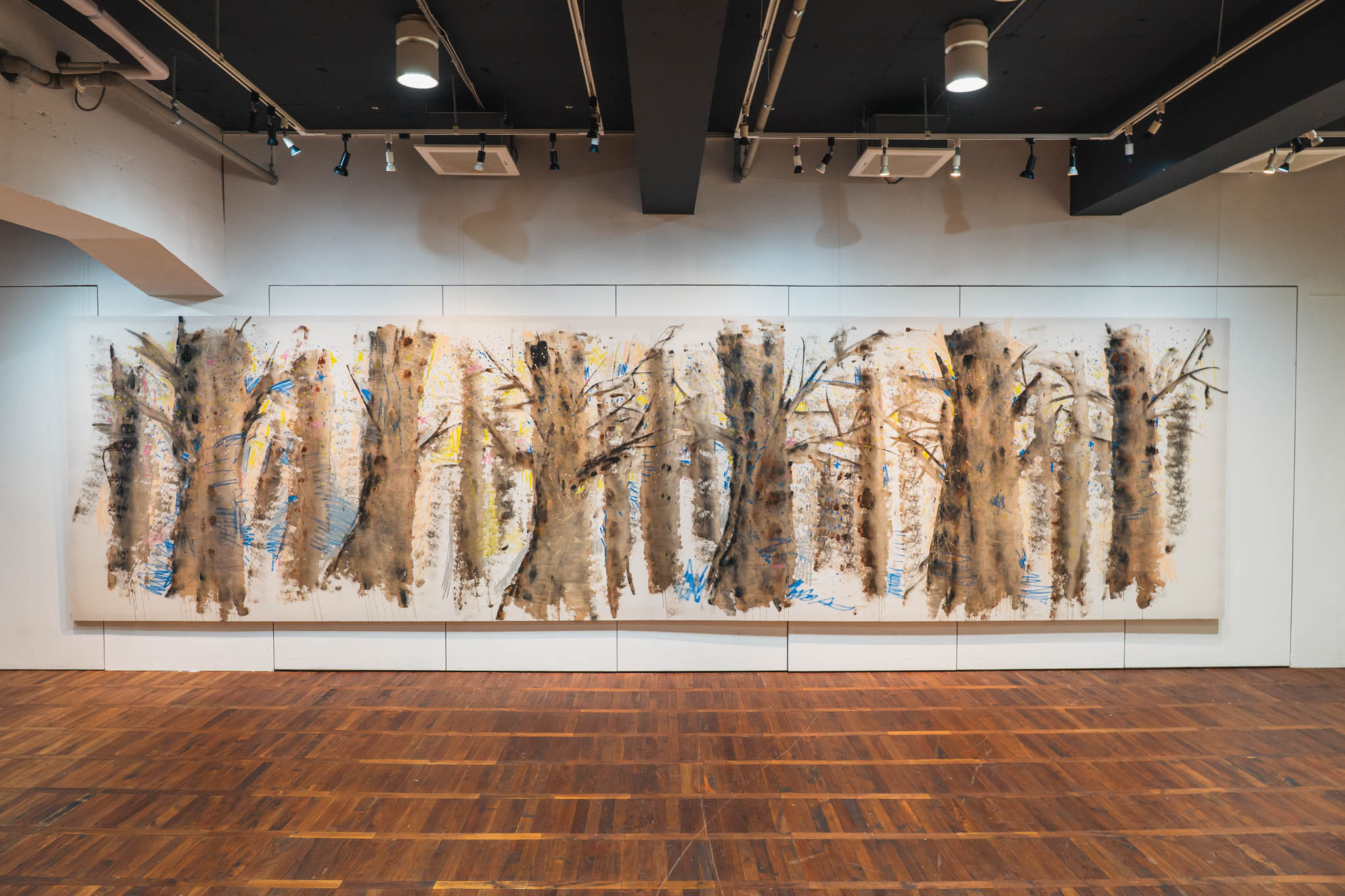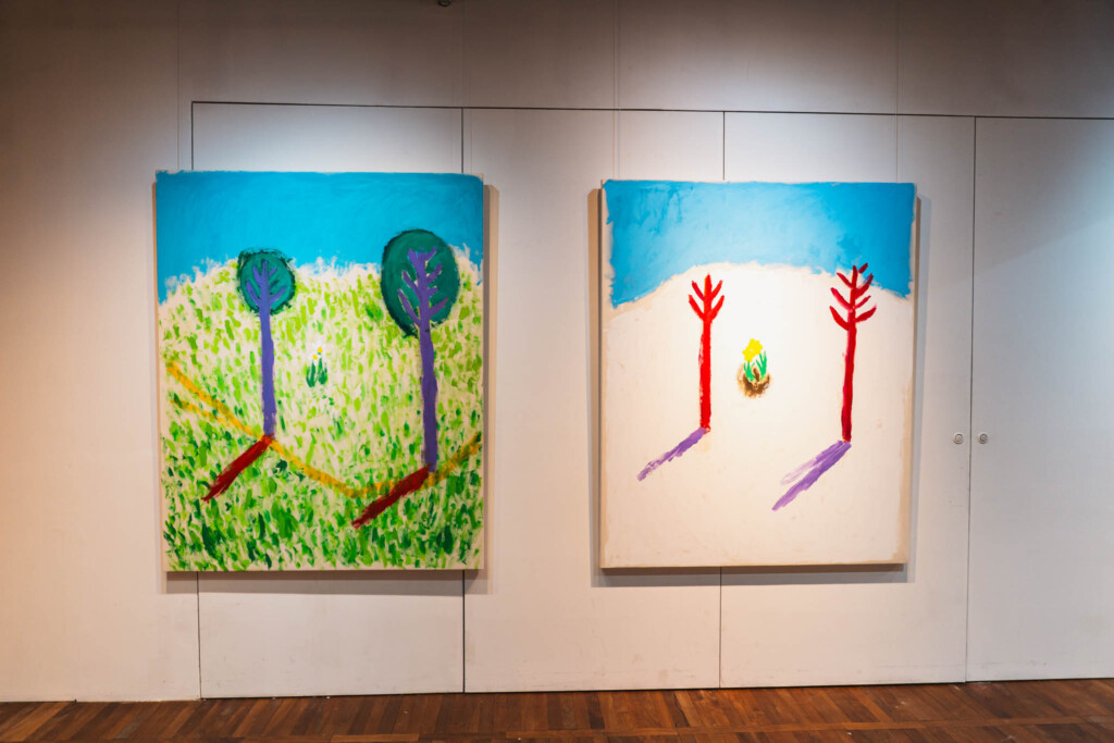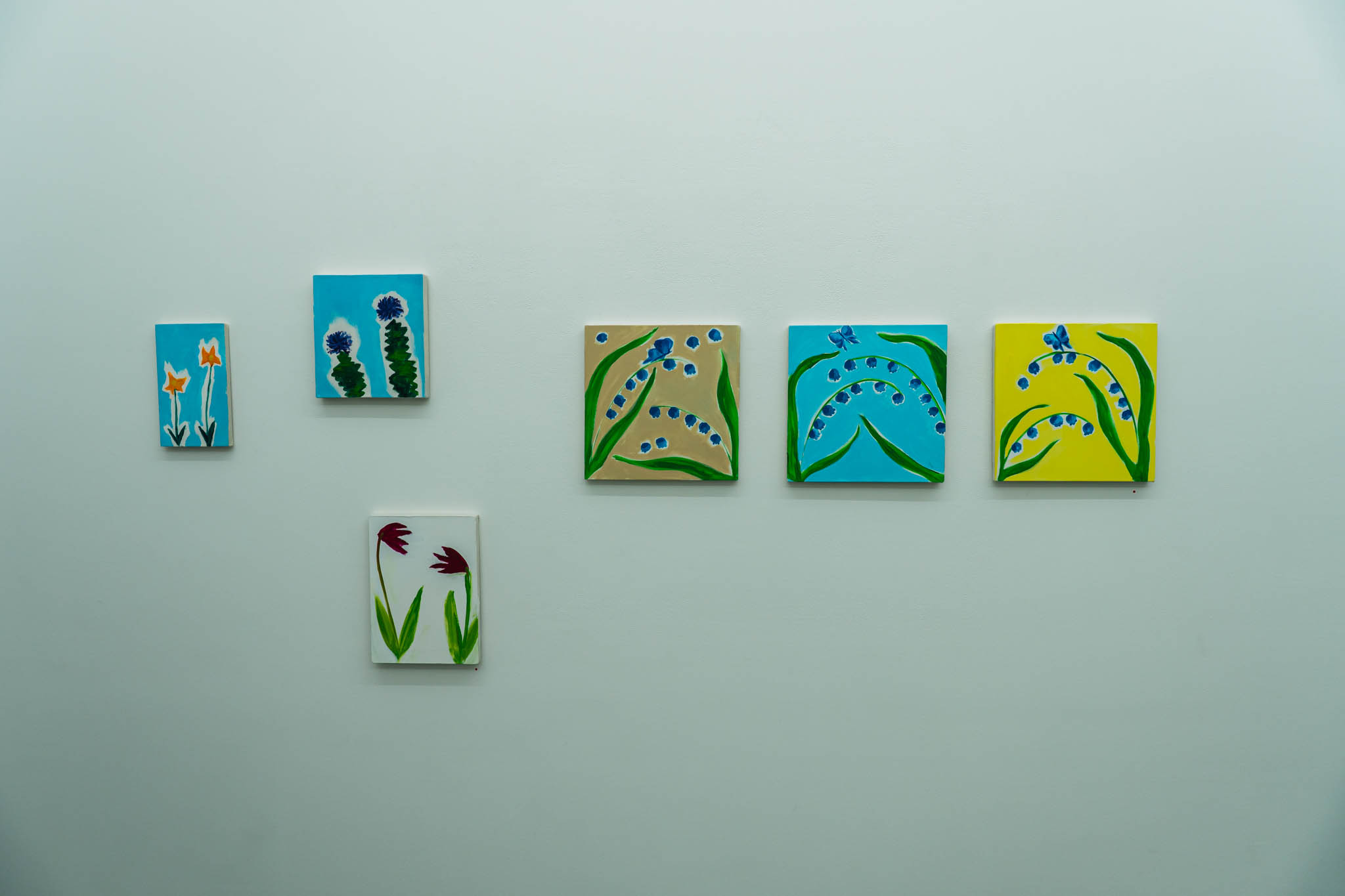 六本木のギャラリーでは、2012年の画家デビュー以降、晩年までの絵画・ドローイングが並んでいた。