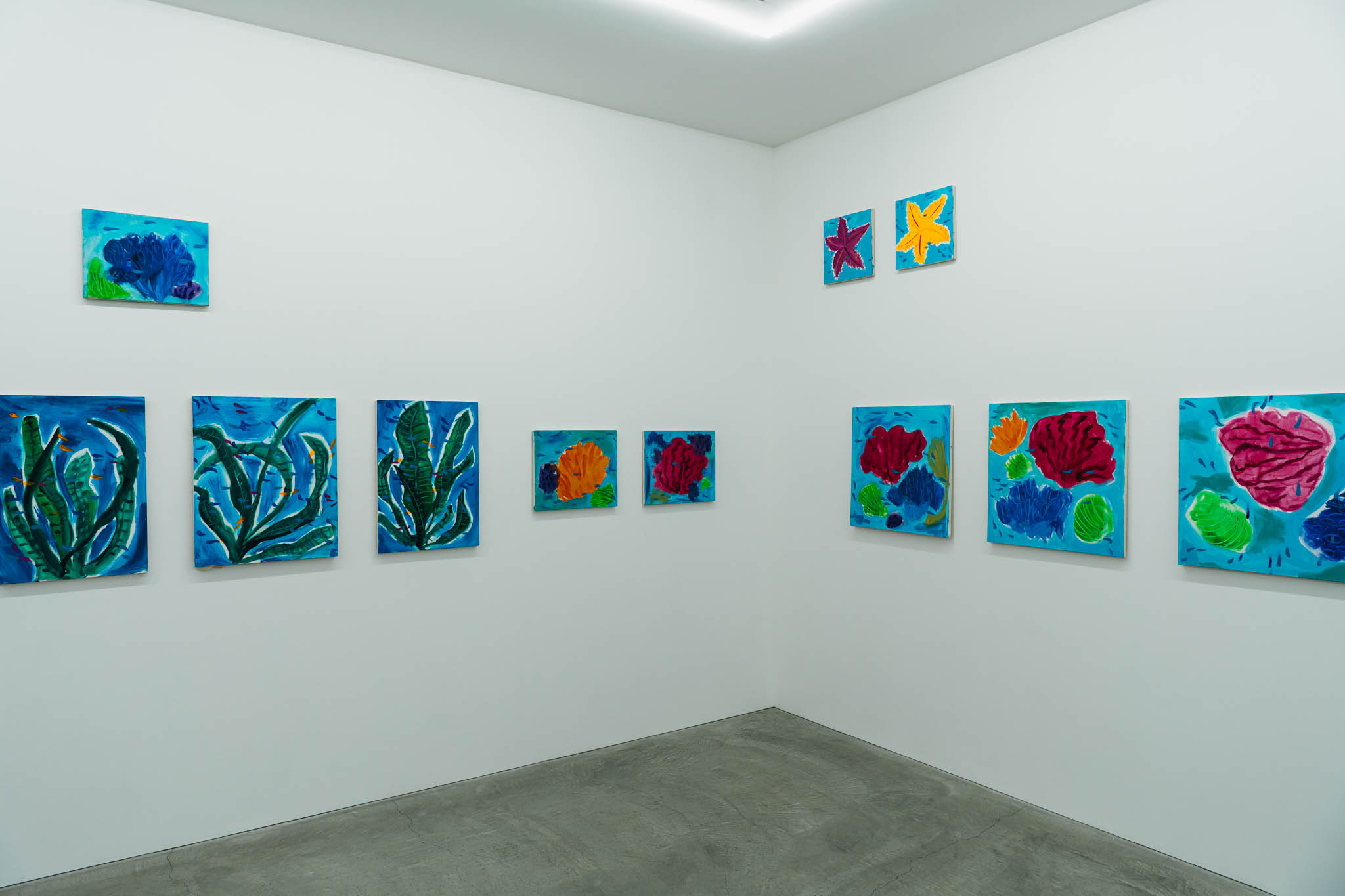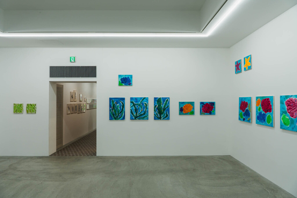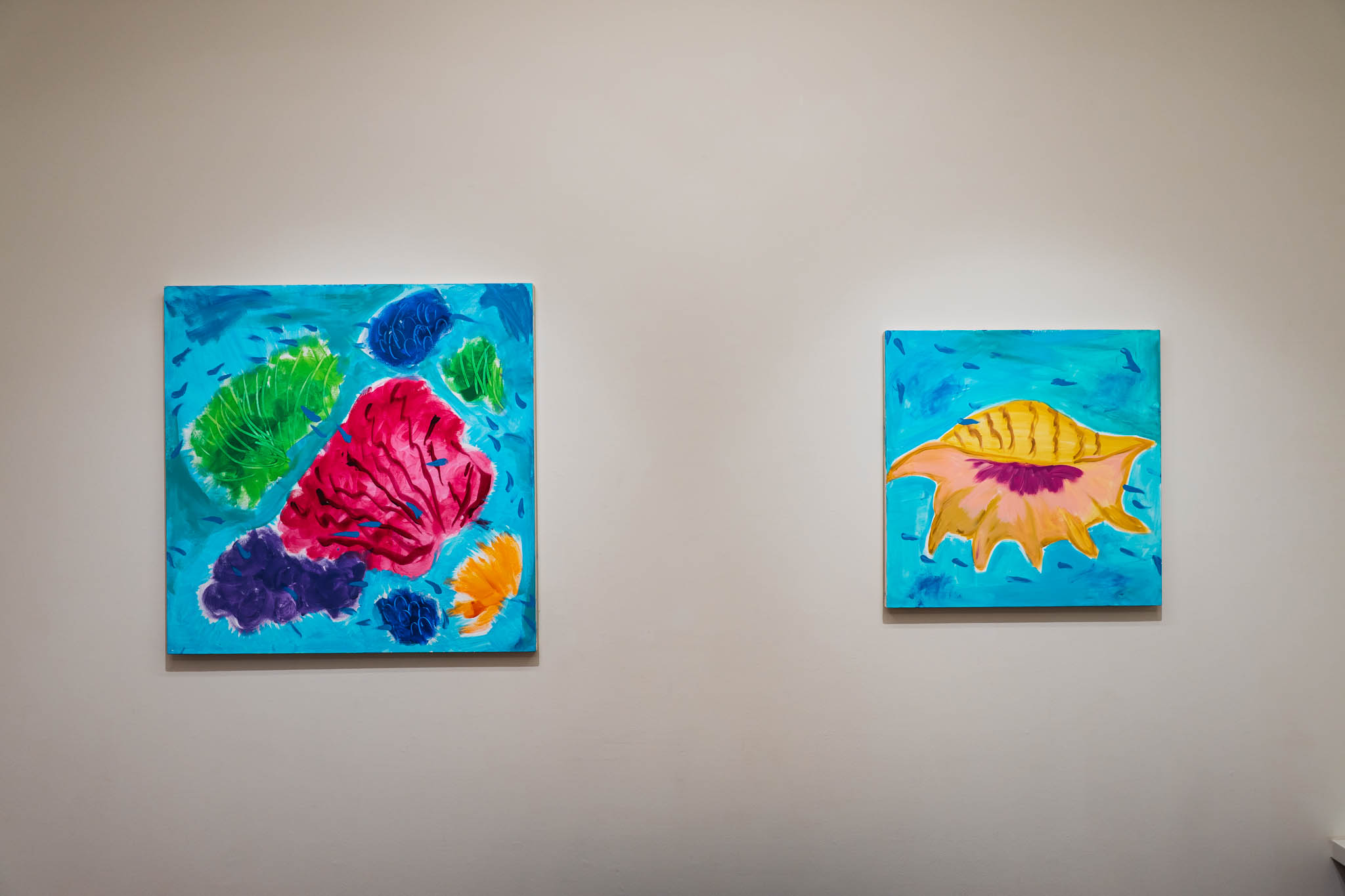 ある作品には「珊瑚礁と青い魚たちⅠ」というタイトルが付けられており、海や自然に対するまなざし、透明感が感じられた。