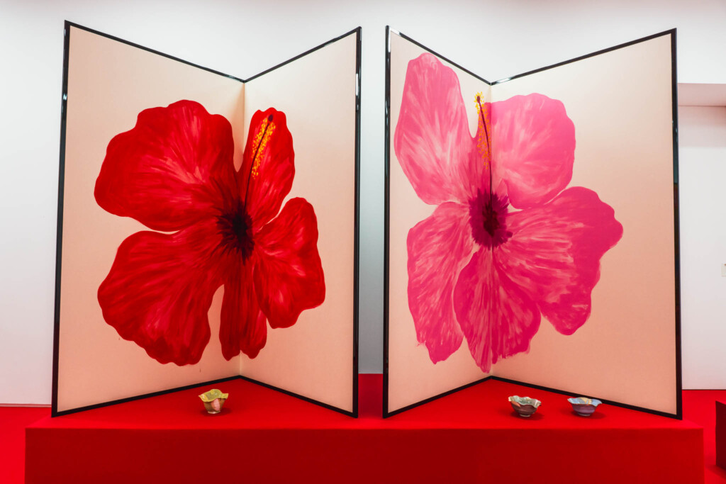 かつて京都で展示された襖絵と陶器を組み合わせ、