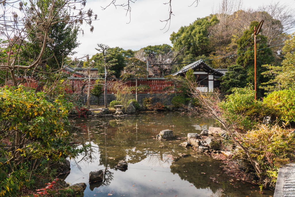 2025年12月13日。境内に入ると、冬の低い光が社殿の屋根に静かに落ちていました。風は弱く、木立の間を抜ける音も控えめで、神門の内側だけ時間の進み方が緩やかに感じられます。木橋の下を流れる水の気配と、足元の砂利を踏む音が、境内の奥へと導いていきます。
