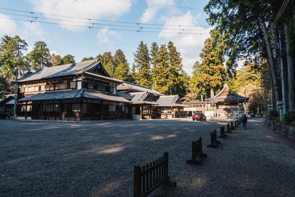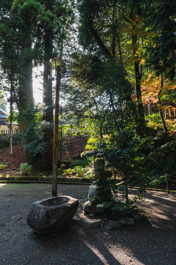 訪問日は2025年12月14日。土山町北土山の集落に入ると、山あいから下りてくる冷たい空気が境内に溜まり、午後の光はすでに柔らかさを失っていました。社前を流れる野洲川の音が遠くに聞こえ、参道では落葉を踏む足音だけが響いています。境内は人影が少なく、年末を前にした静かな時間が保たれていました。