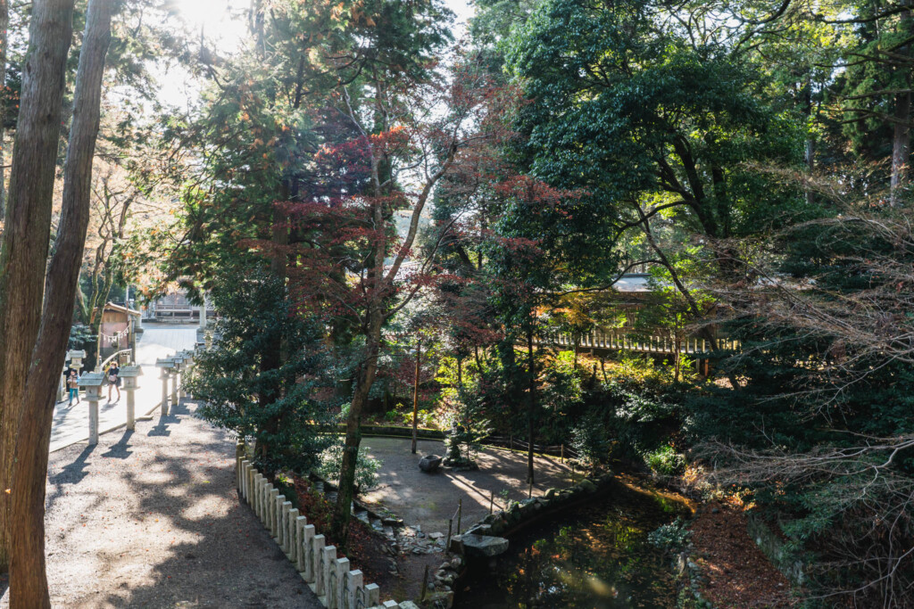 神社は山地から平地へ出る境目にあり、川と道が交わる場所に建っています。ここは移動の節目であり、立ち止まる理由が生まれやすい地点でした。人々は旅立ちや通過の前後にここで足を止め、祈り、区切りをつけてきました。