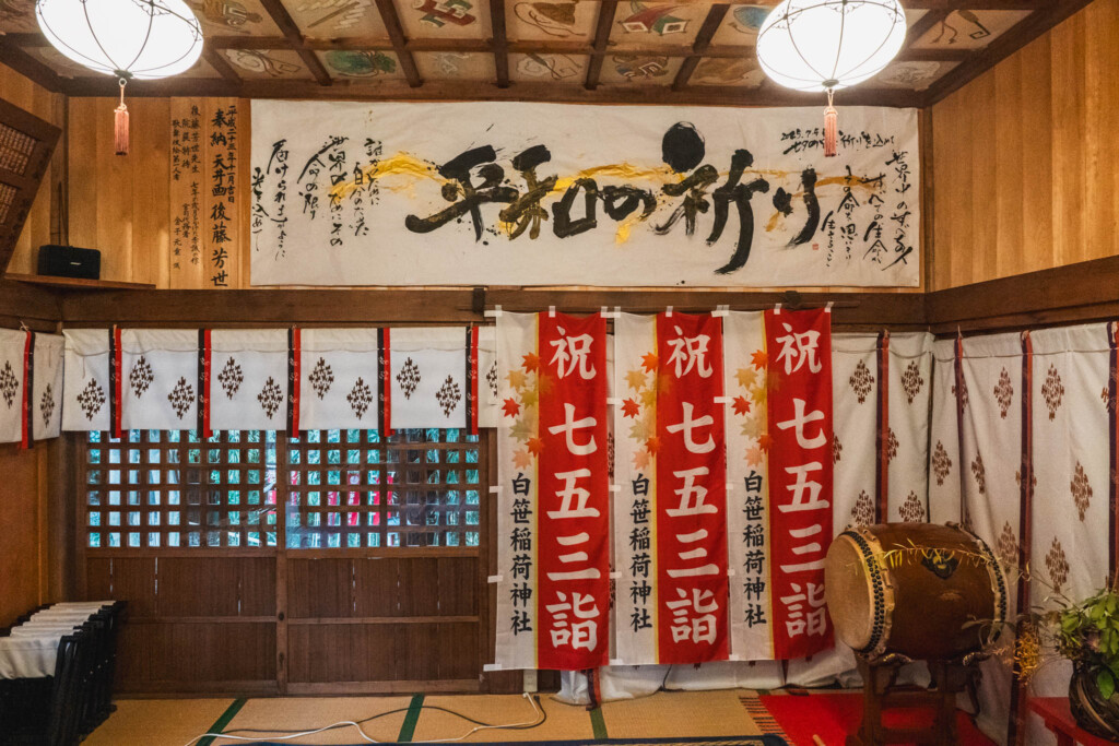 白笹稲荷神社は、何かを得るために訪れる場というより、暮らしの区切りや年の節目に向き合われてきた場所です。平地にあり、社殿に入り、天井を見上げるという行為もまた、参拝を日常から切り離さないための形として受け継がれてきました。