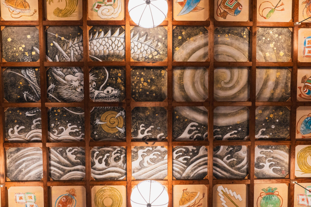 社殿は山中や高所ではなく、平地に設けられています。生活圏の中にあり、日常の動線上で手を合わせることが前提とされてきました。拝殿内部には天井画の龍が描かれていますが、これは社殿に入らなければ目に入りません。参拝の流れの中で偶然に出会う要素として存在しており、特別な説明や強調を伴わずに今日まで伝えられてきました。