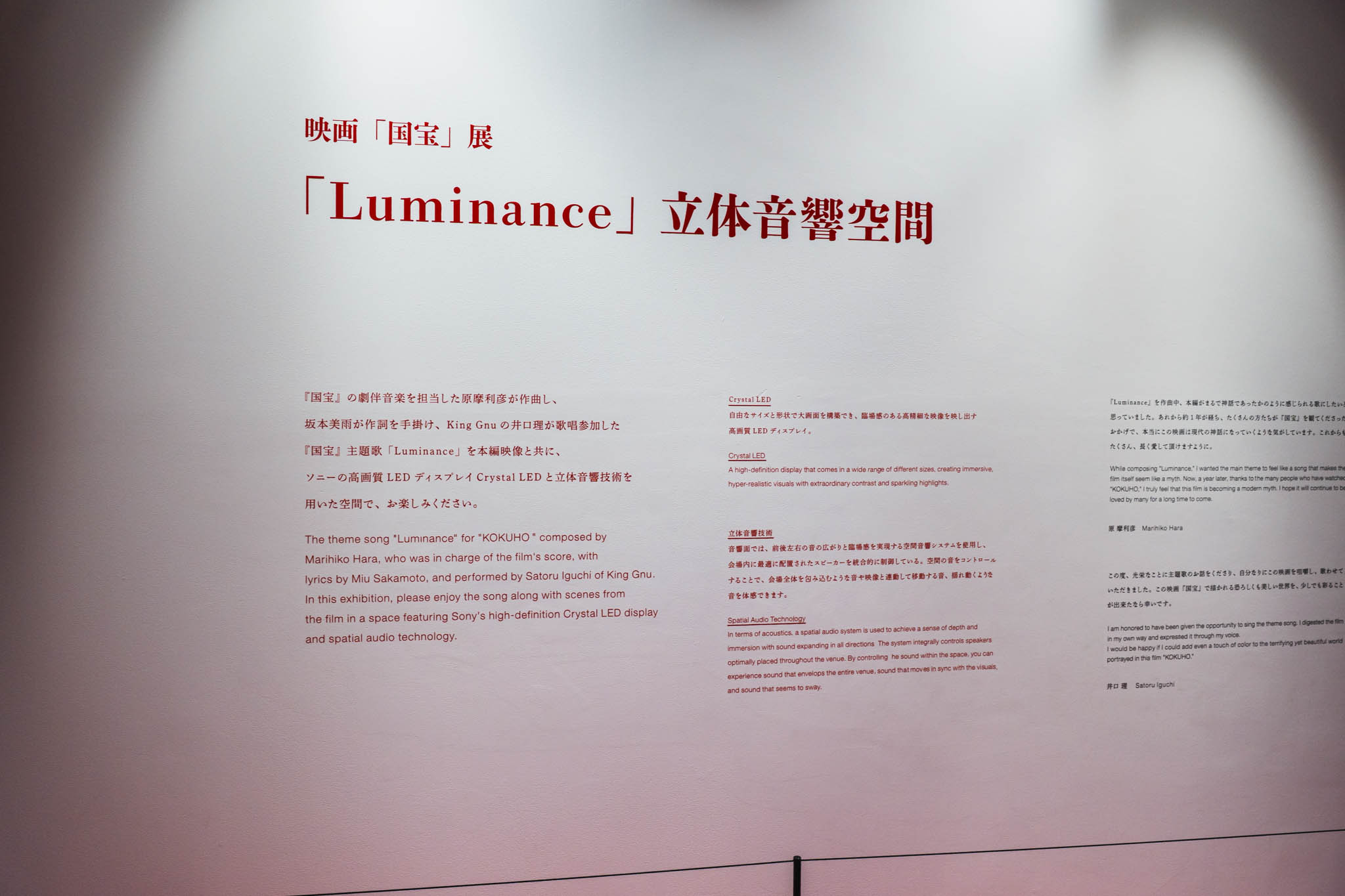 ここでは、ソニーの高画質LEDディスプレイ Crystal LED と立体音響技術を用い、映画『国宝』の世界を映像と音で体感できる展示が行われている。
