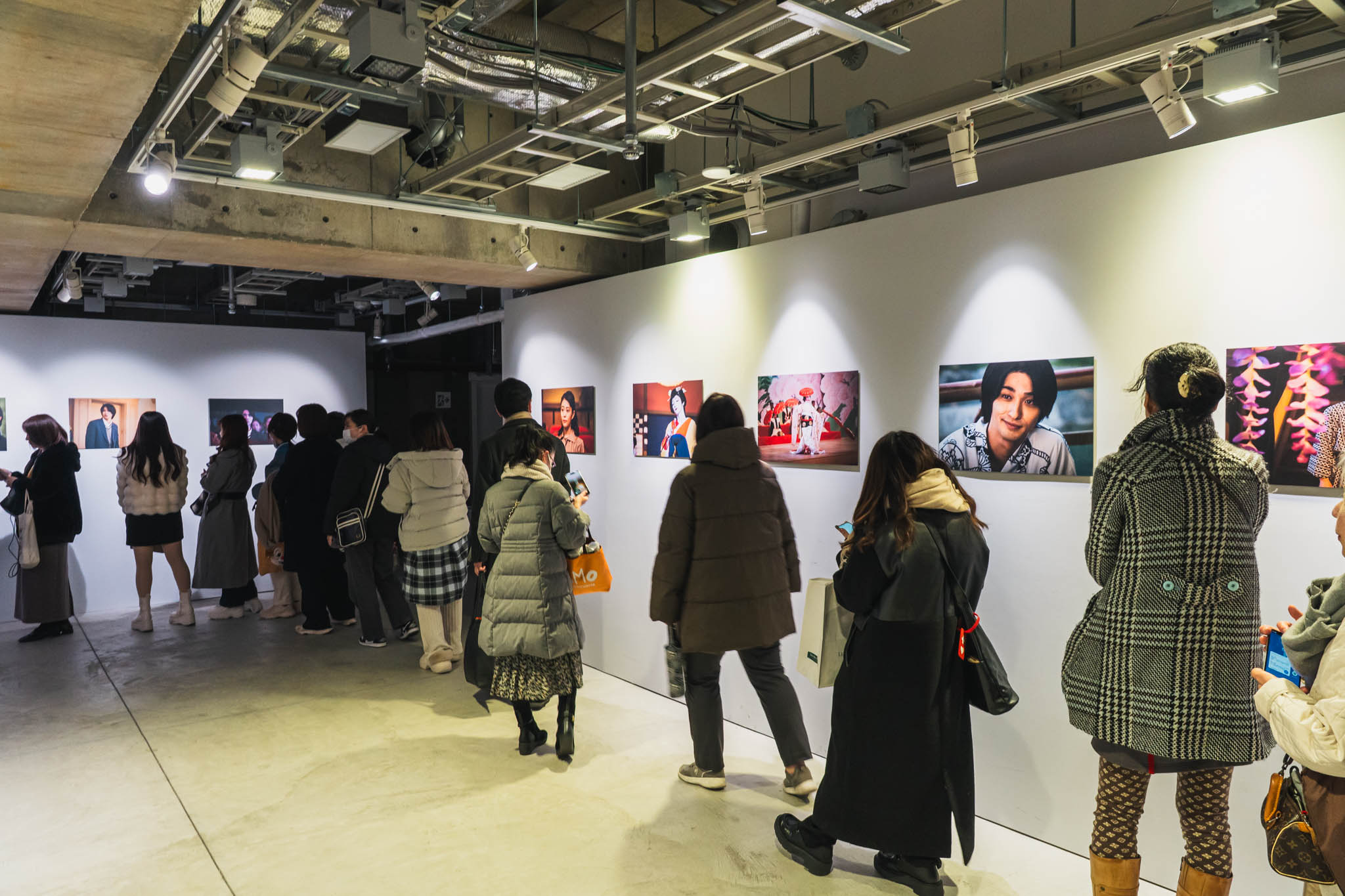 混雑のなかで至近距離から見る写真は、否応なくディテールを突きつけてくる。衣装の質感、視線の角度、背景に漂う空気。映像として流れていたはずのシーンが、一枚の写真として止まった瞬間に、別の説得力を持って迫ってくる。人の多さによる不便さを上回るだけの密度が、このフロアには確かにあった。