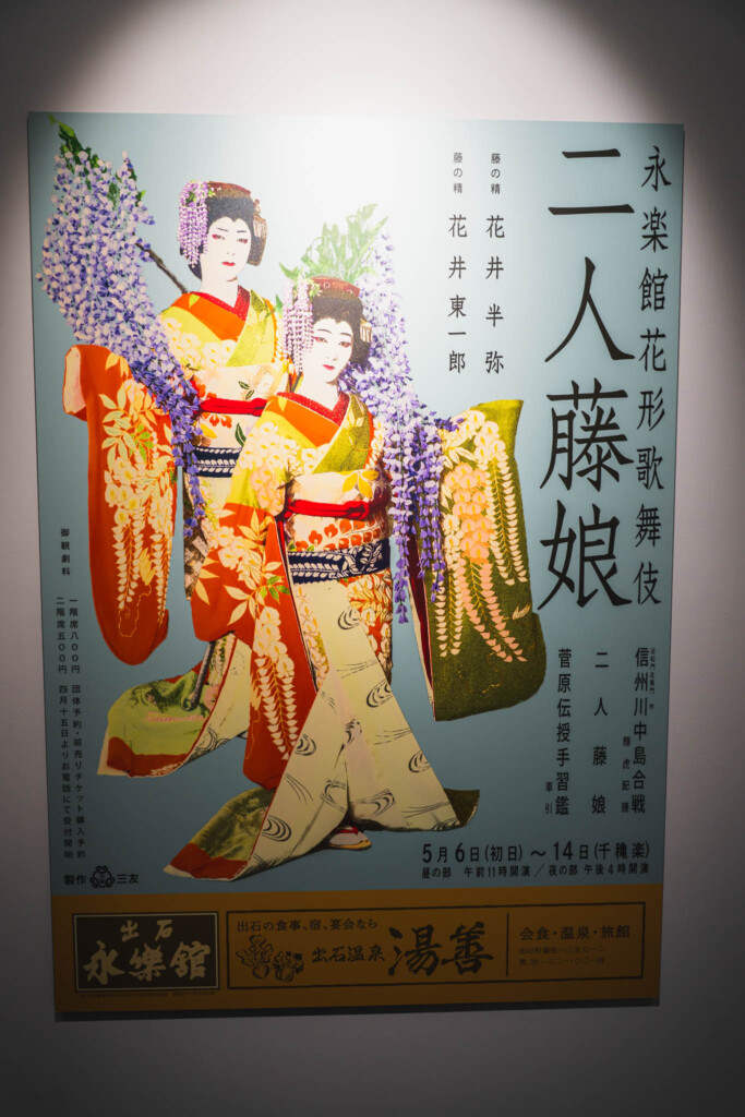 B2では、映画『国宝』の名場面を捉えた写真が展示されているほか、劇中で実際に使用された歌舞伎のポスターなども並ぶ。単なる撮影資料や小道具紹介ではなく、映画世界を成立させている“要素そのもの”が、展示として成立していた。