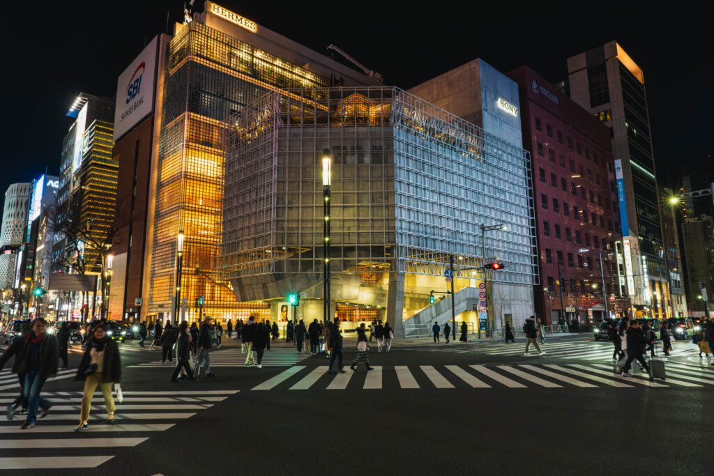 冬の夕方、日が落ち始めた銀座は、昼間とはまったく違う表情を見せていた。街の輪郭が少しずつ陰影を帯び、ネオンや街灯の光が浮かび上がる時間帯。その流れのなかで向かったのが、Ginza Sony Parkで開催中の国宝展だった。