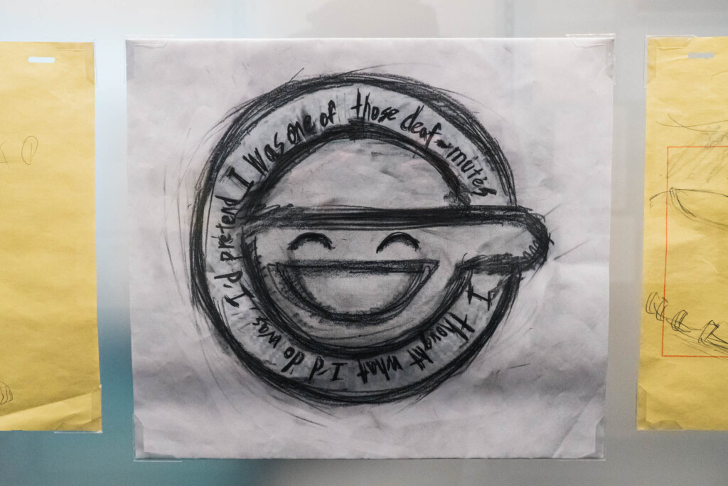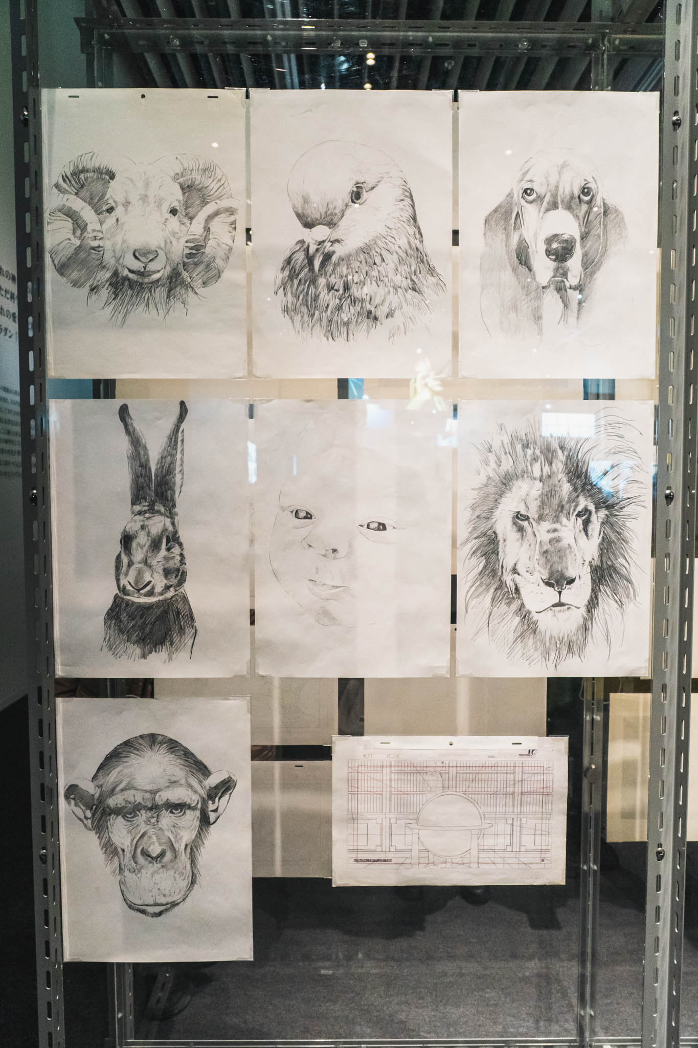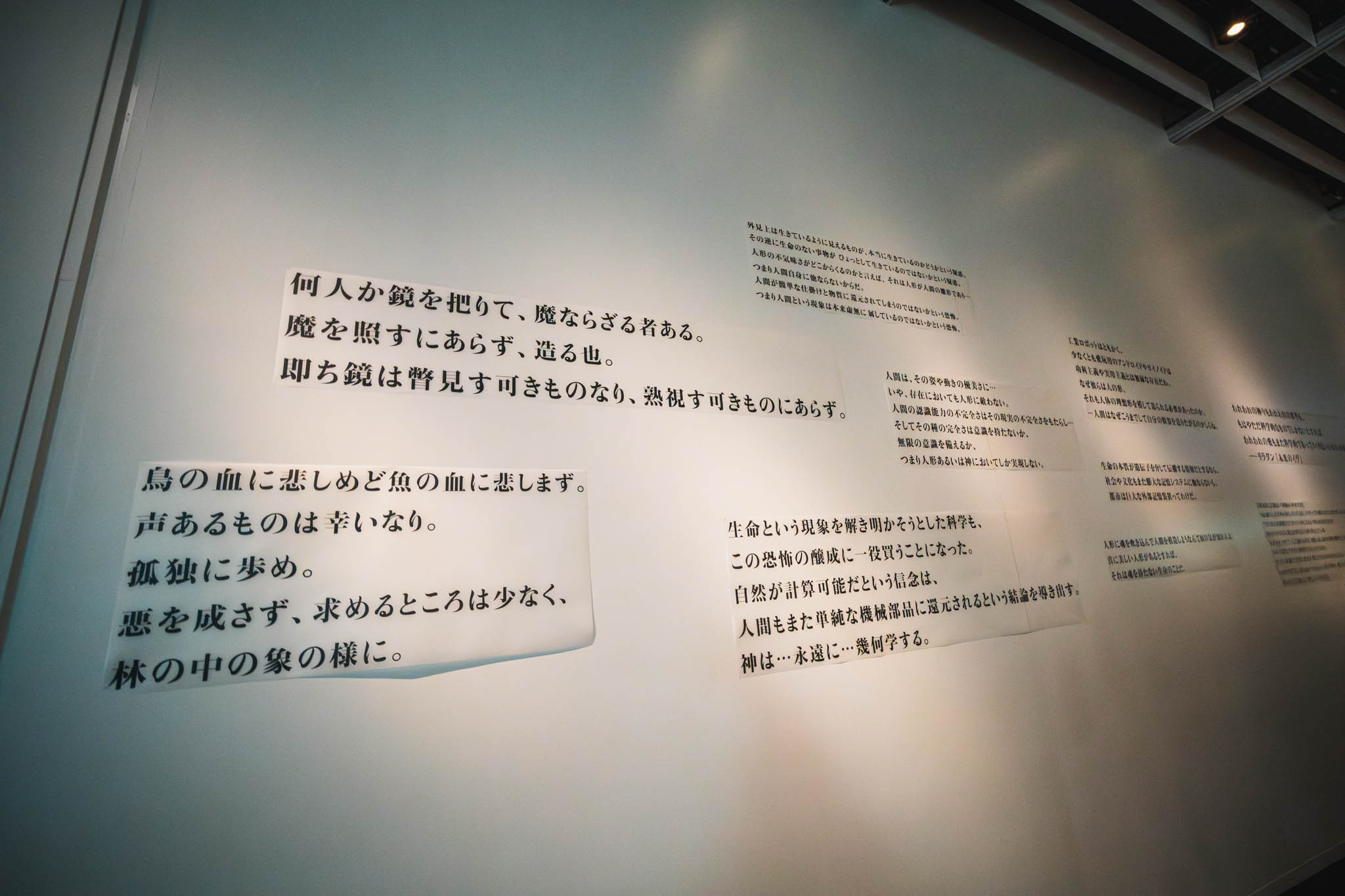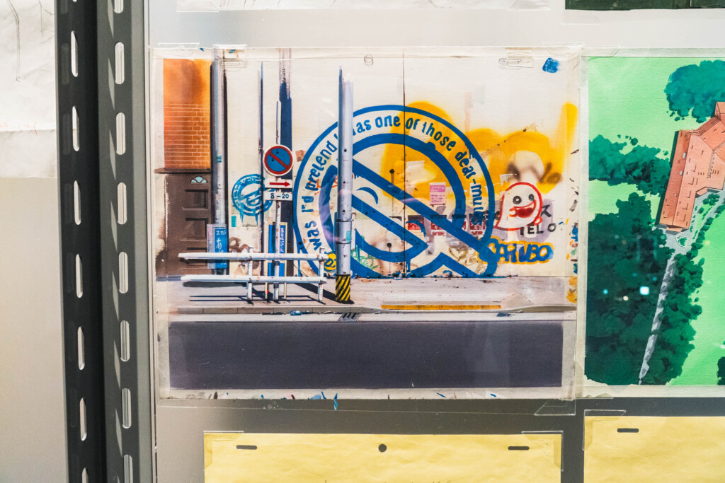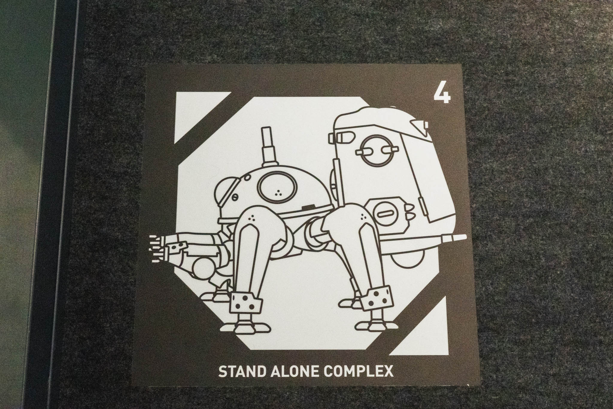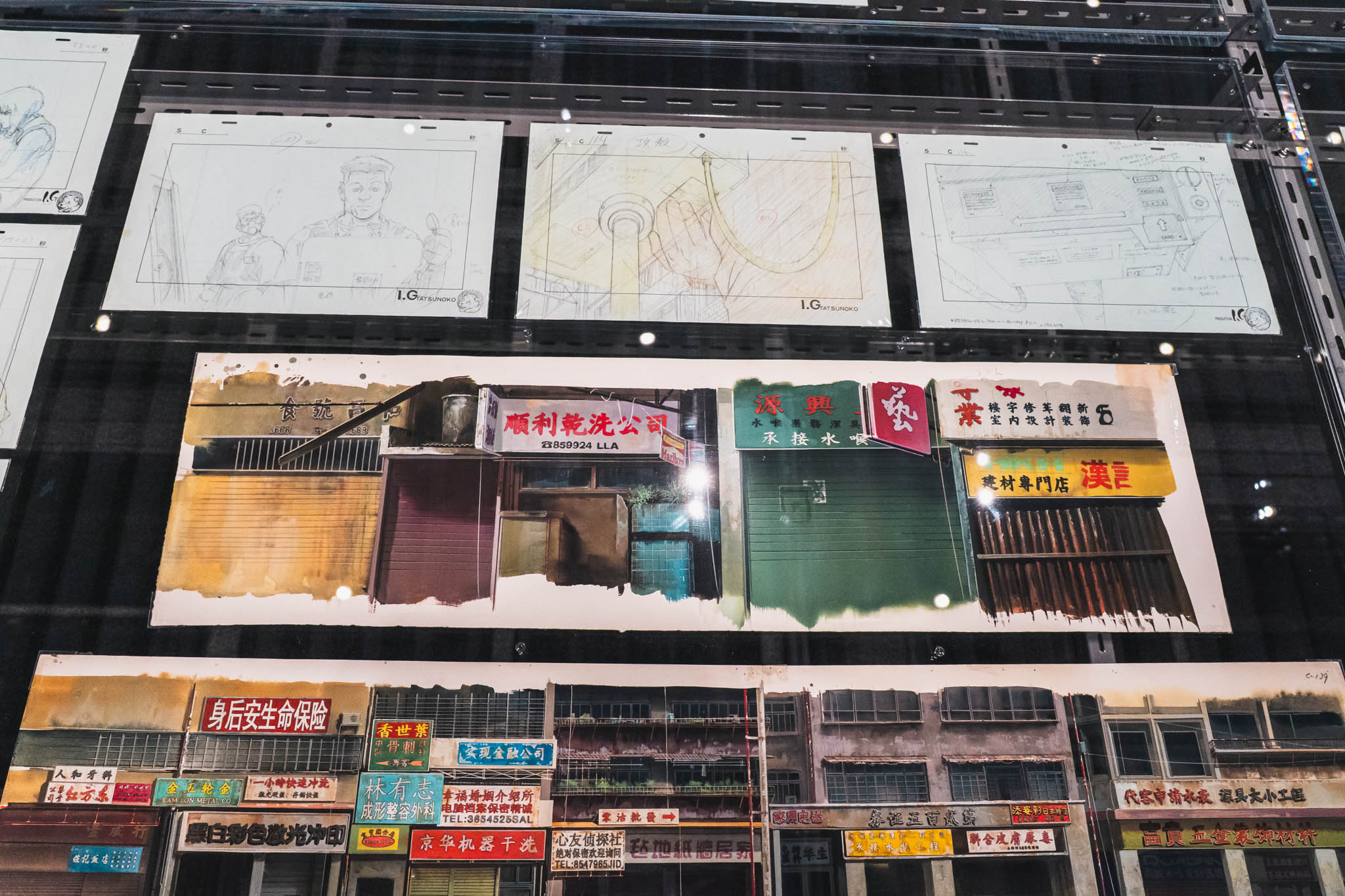 展示の心臓部「GALLERY B “DIG”」は、めまいに似た感覚を覚える空間です 。壁一面を埋め尽くす1,600点超のアーカイブは、35年にわたり構築されてきた『攻殻機動隊』という巨大な電脳ネットワークを物理的に視覚化したかのようです 。