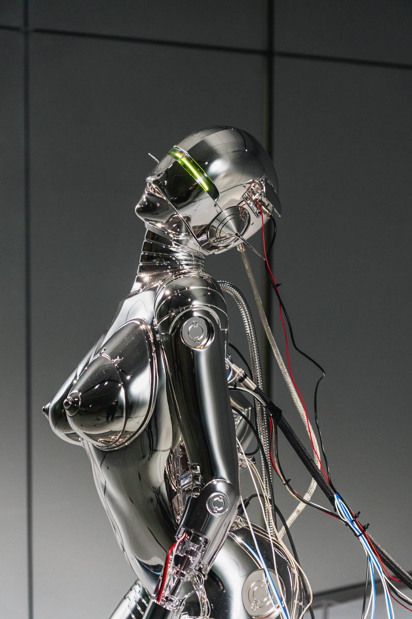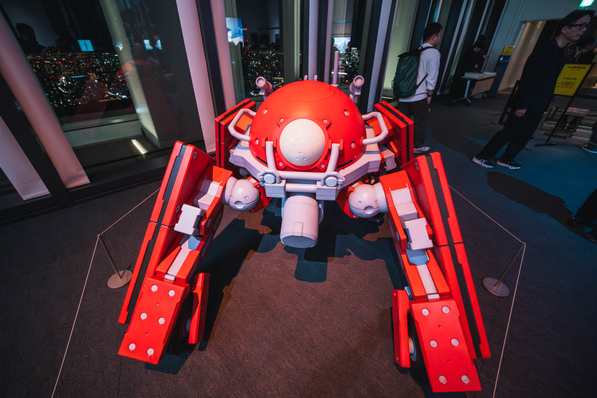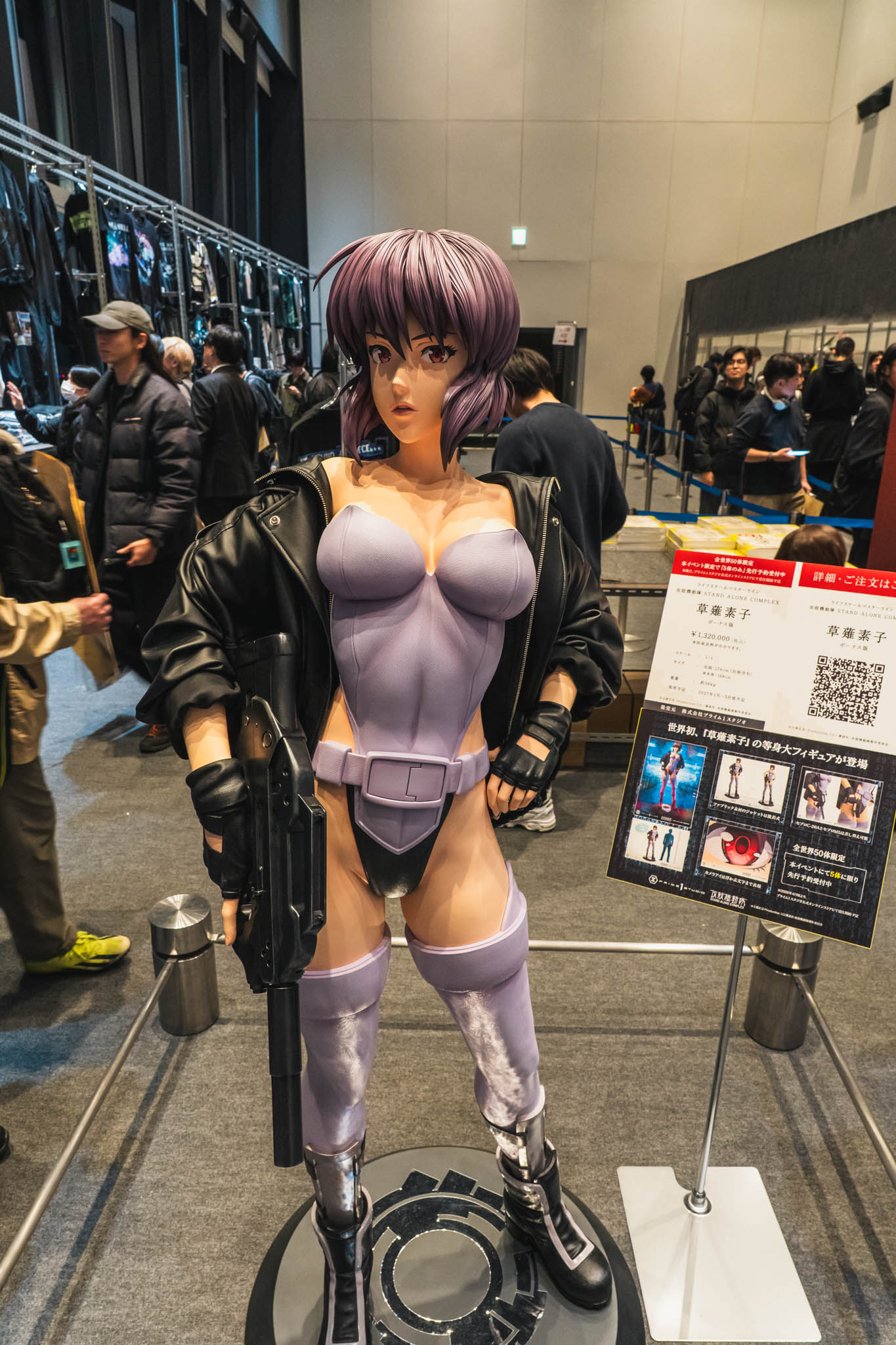 地上200メートル超の空間で鈍い銀色に輝く、草薙素子をモデルにした新作スタチュー 。空山氏の代名詞である「セクシーロボット」の流線美と、少佐のストイックな魂が融合したその姿は、3年前の衝撃をさらに進化させた、究極の「義体」の提示でした 。