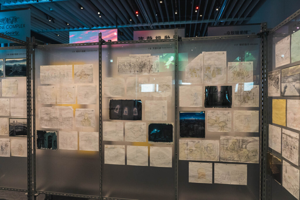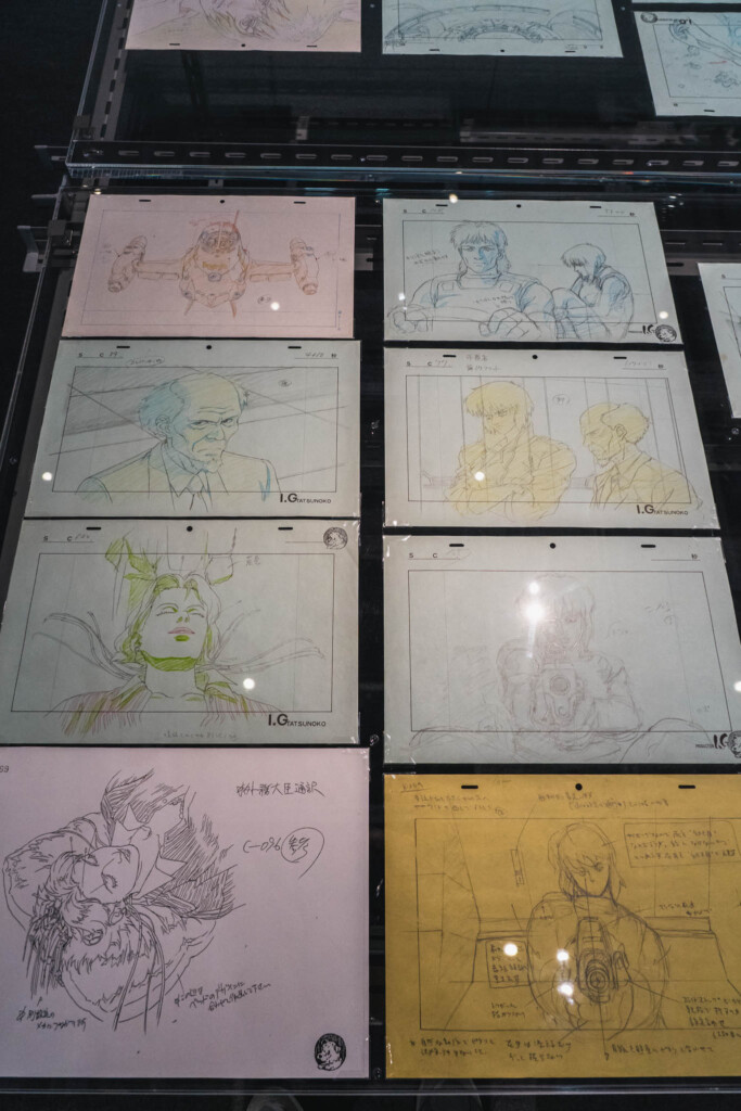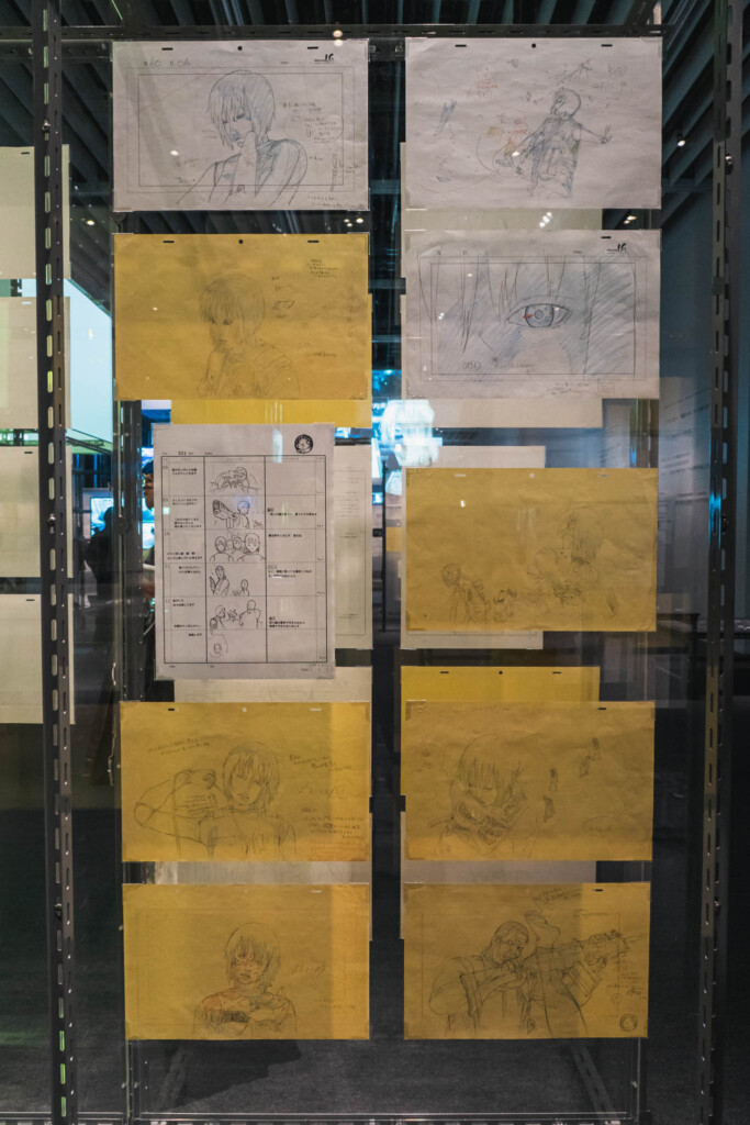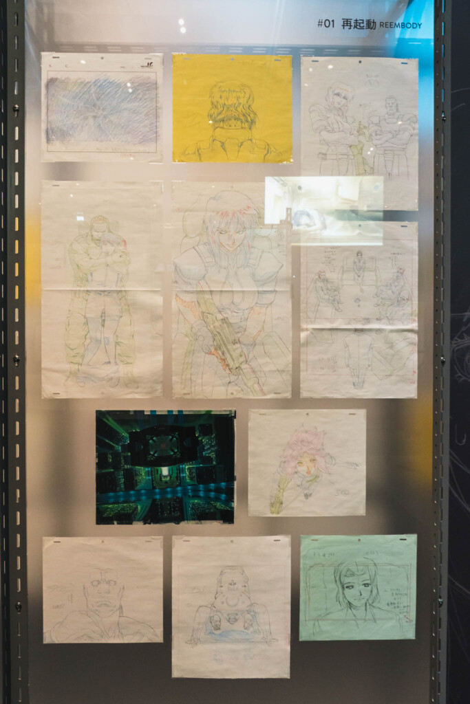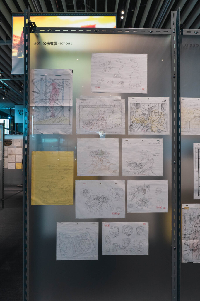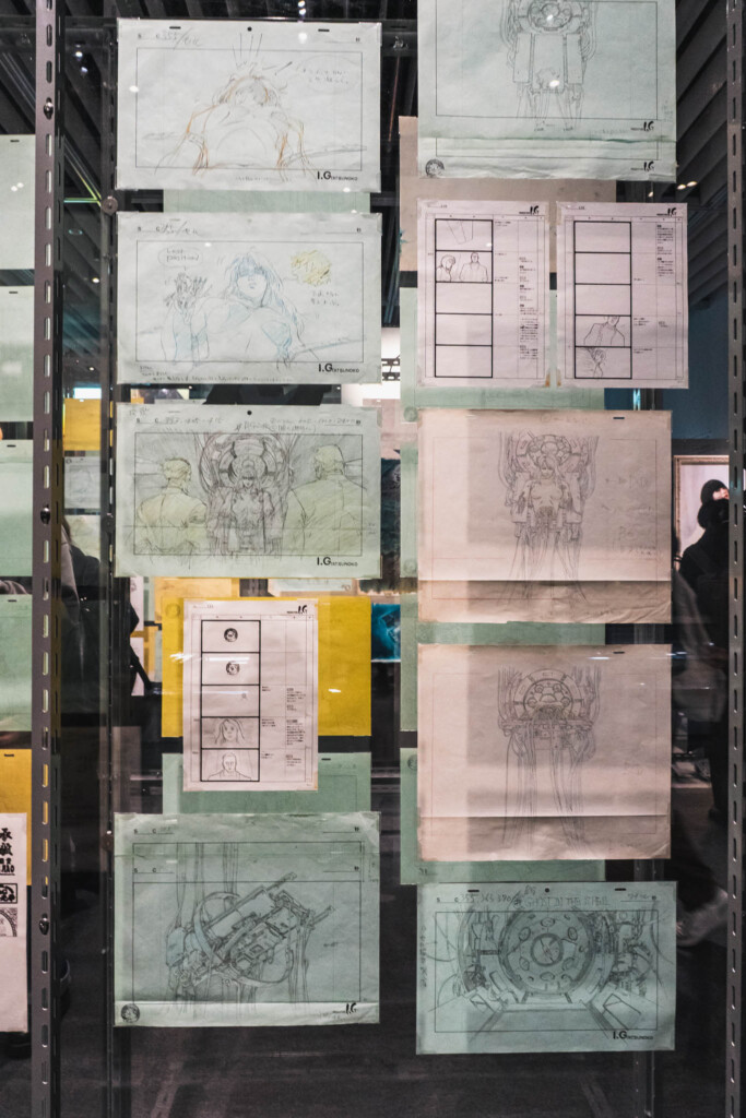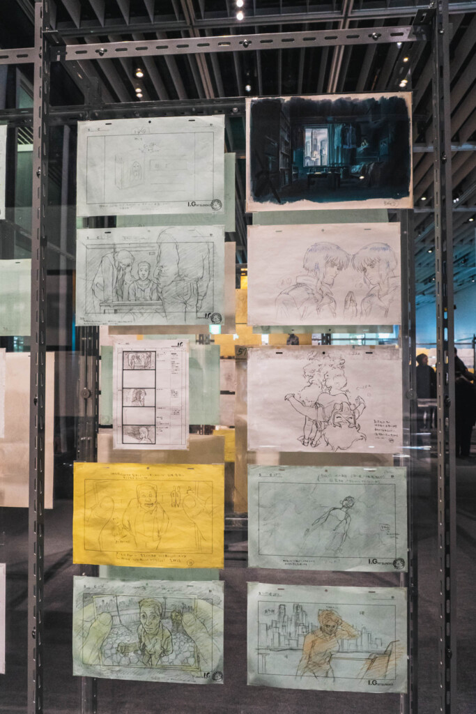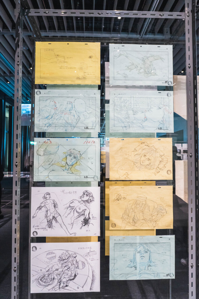 - 未公開資料の衝撃: これまで門外不出とされてきた絵コンテや、設定資料が惜しみなく公開されています。特に押井守、神山健治といった歴代監督たちが「Ghost」と「Shell」をどう定義し、映像へと落とし込んできたのかを解き明かすインタビュー映像は、展示の解像度を一段と高めてくれます。