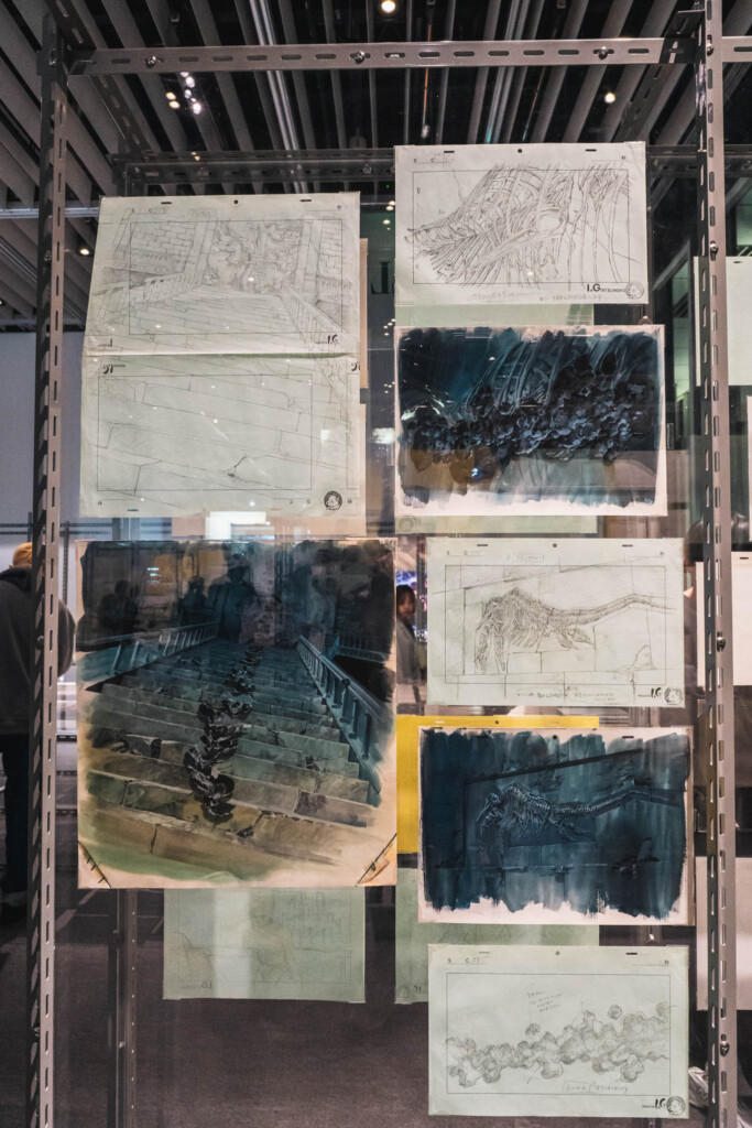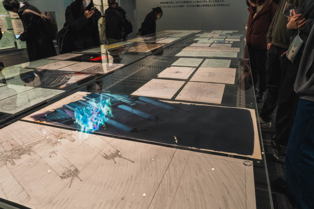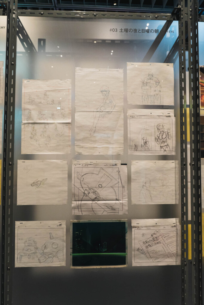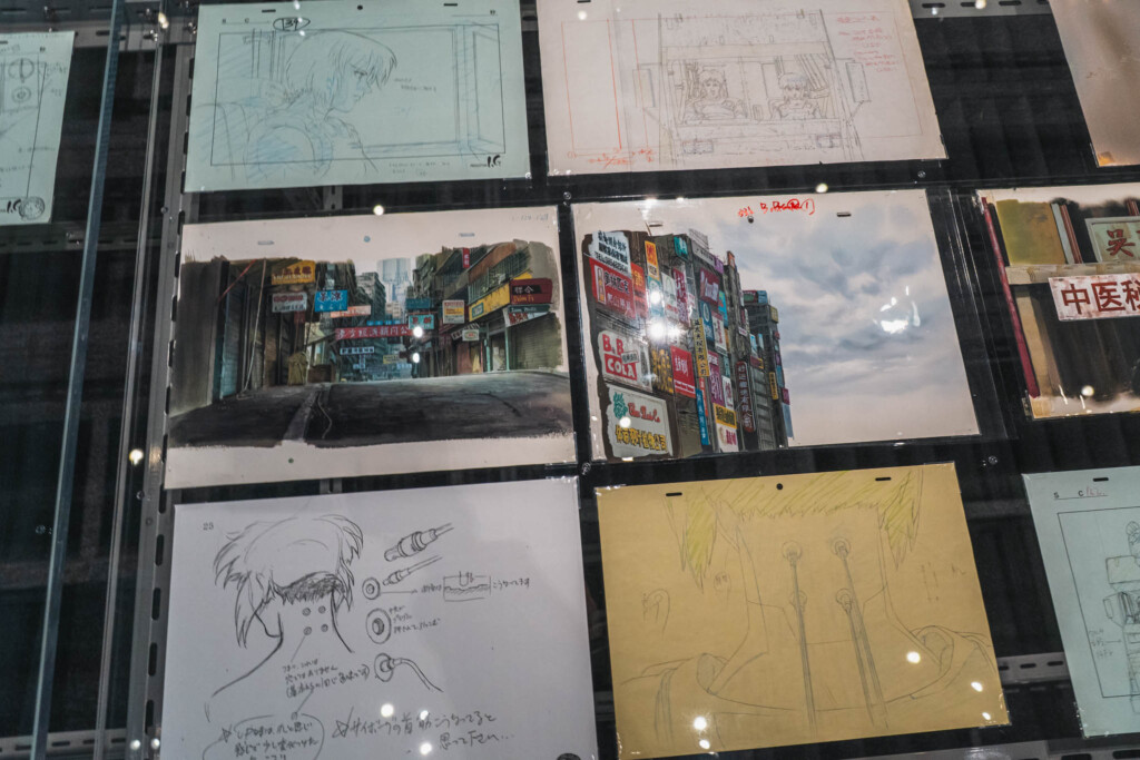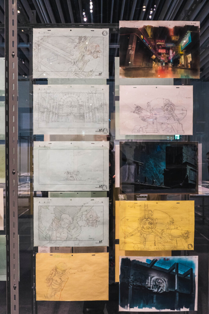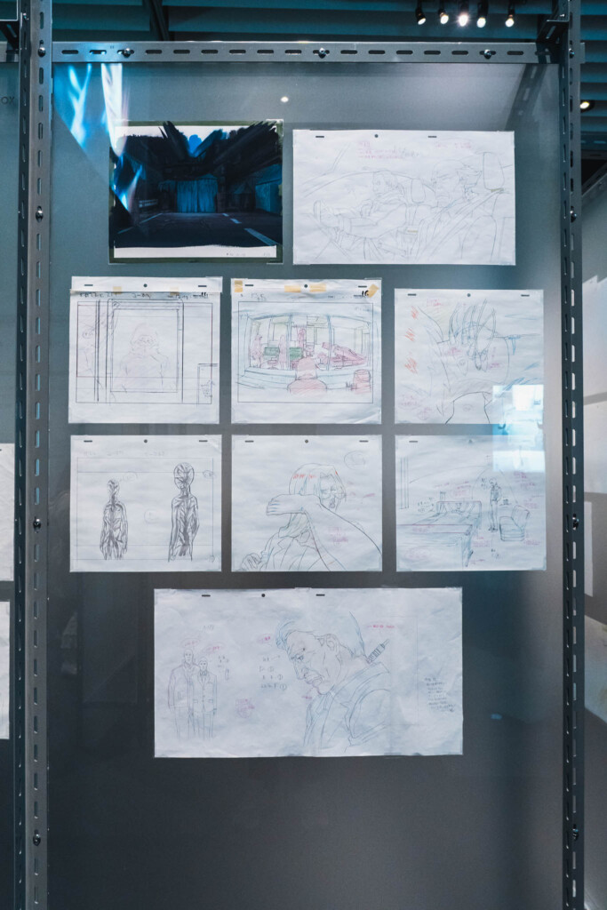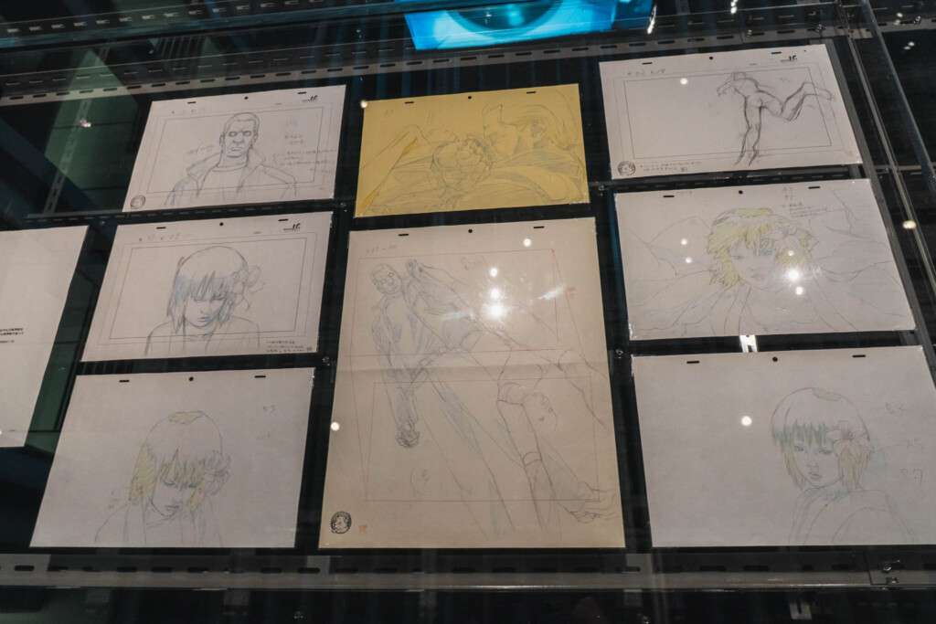 - 未公開資料の衝撃: これまで門外不出とされてきた絵コンテや、設定資料が惜しみなく公開されています。特に押井守、神山健治といった歴代監督たちが「Ghost」と「Shell」をどう定義し、映像へと落とし込んできたのかを解き明かすインタビュー映像は、展示の解像度を一段と高めてくれます。