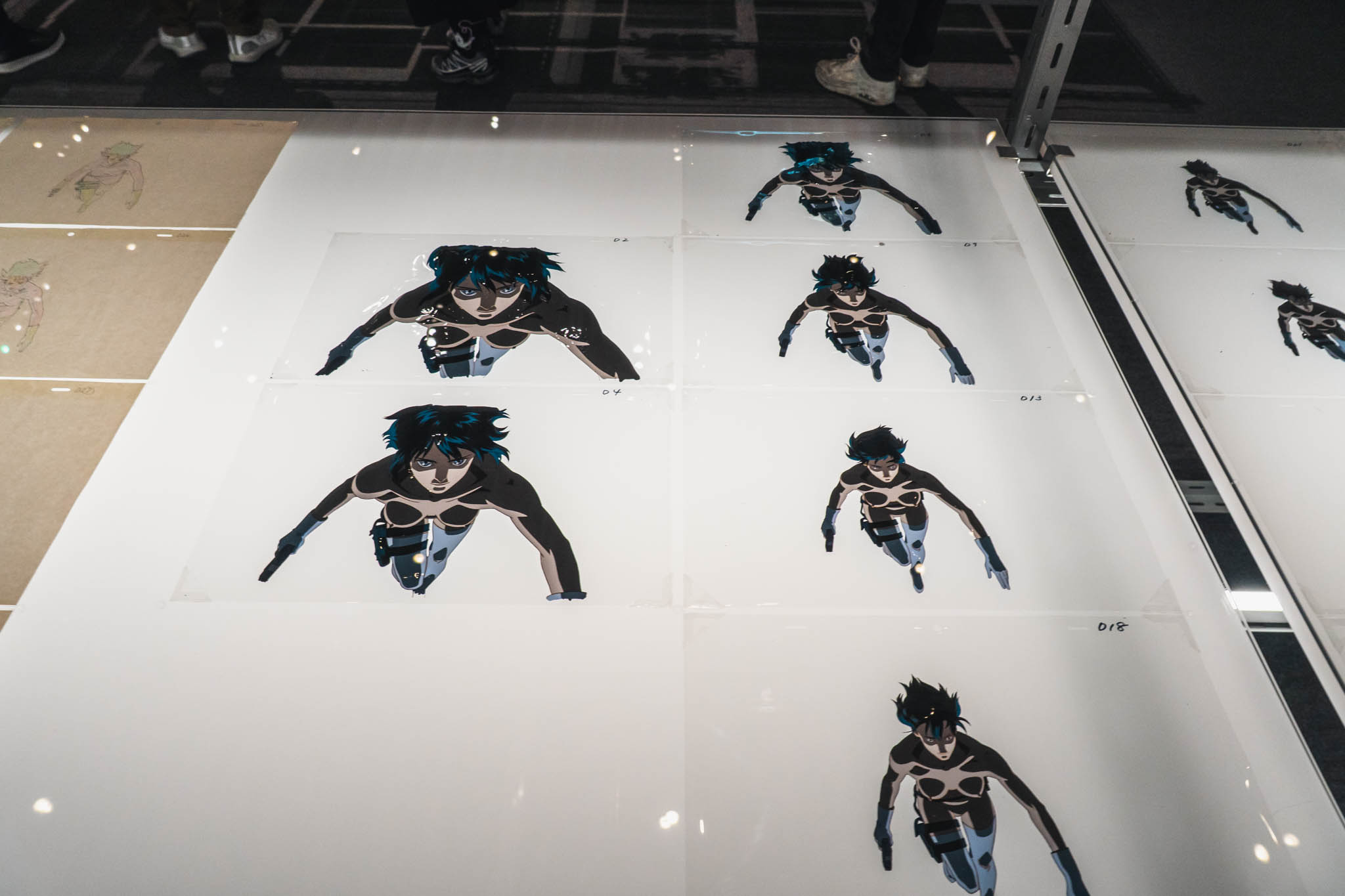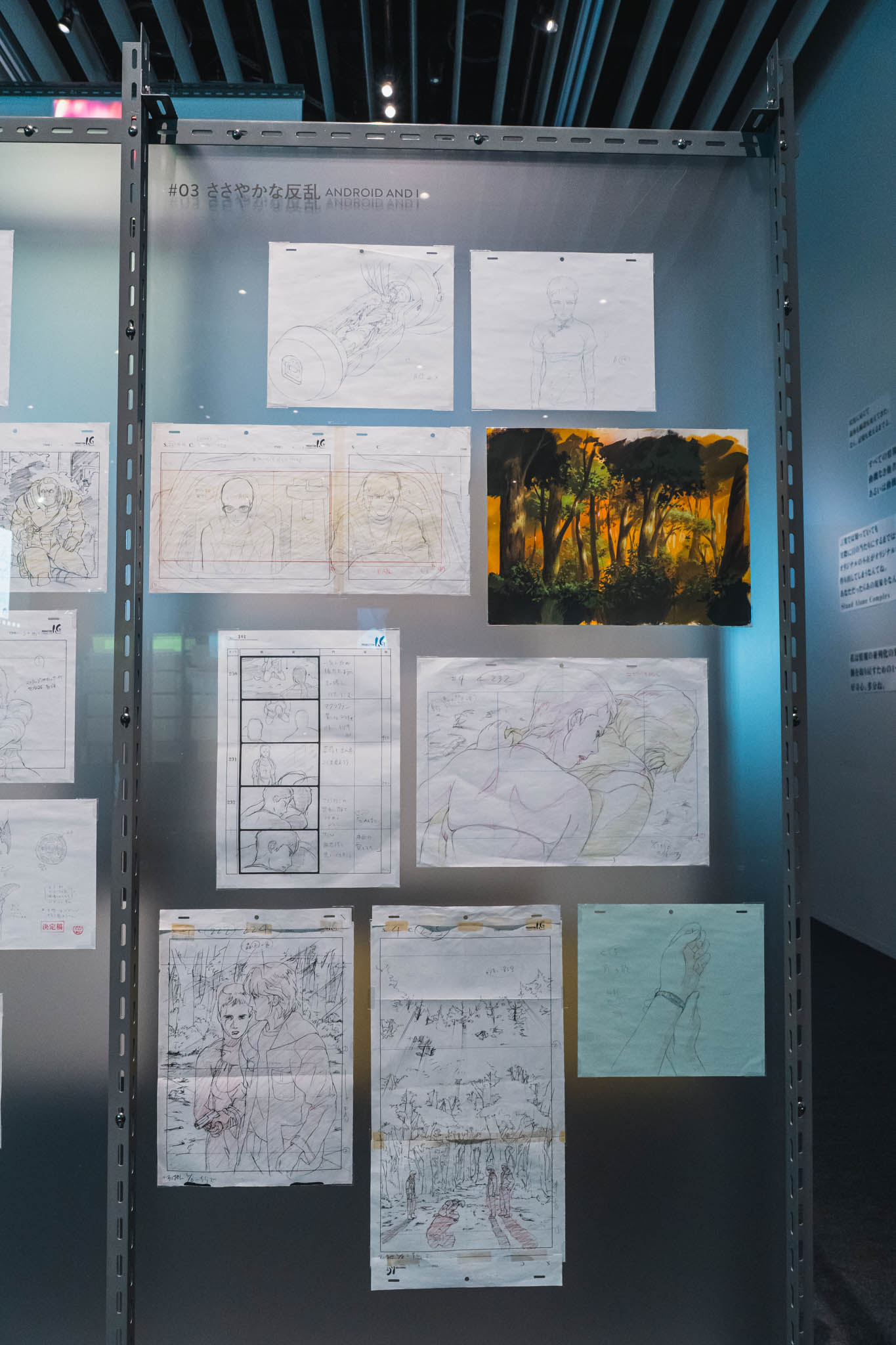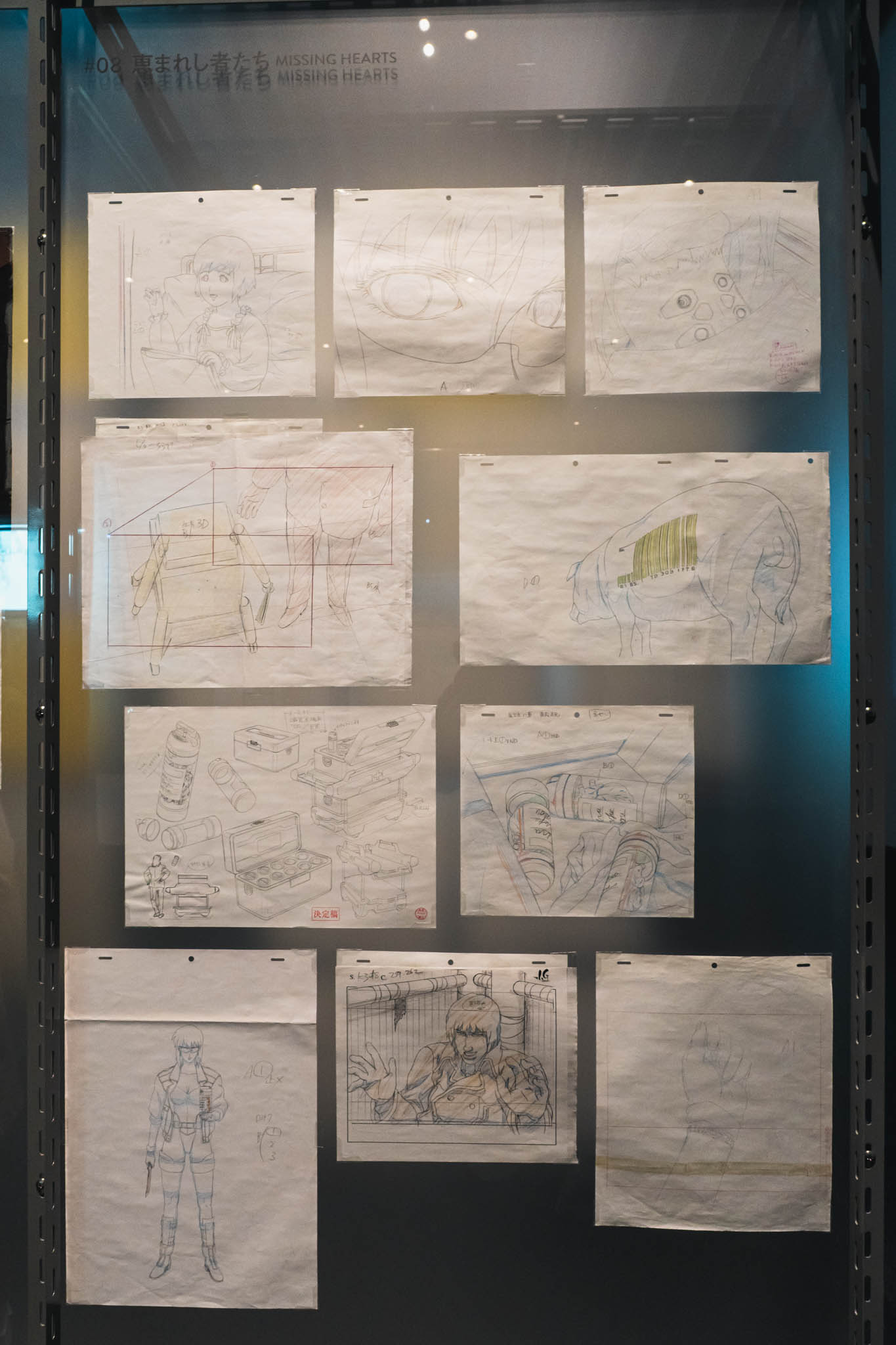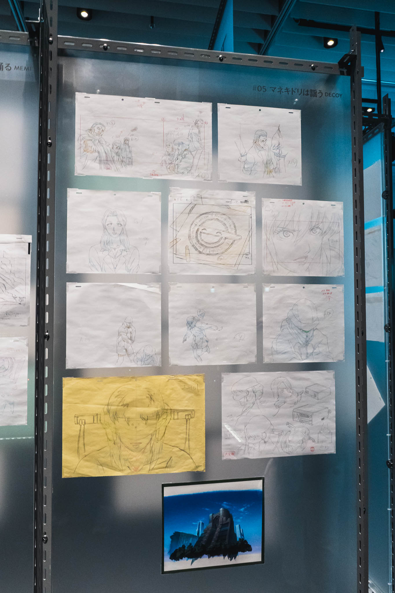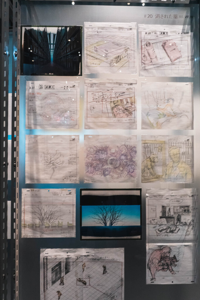 - 未公開資料の衝撃: これまで門外不出とされてきた絵コンテや、設定資料が惜しみなく公開されています。特に押井守、神山健治といった歴代監督たちが「Ghost」と「Shell」をどう定義し、映像へと落とし込んできたのかを解き明かすインタビュー映像は、展示の解像度を一段と高めてくれます。