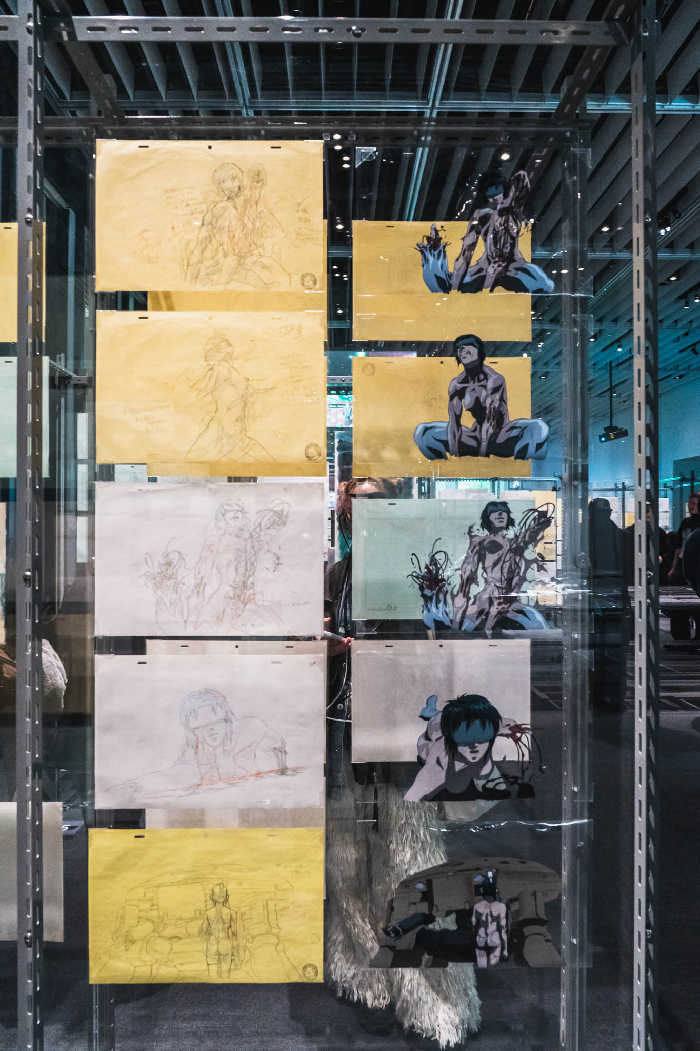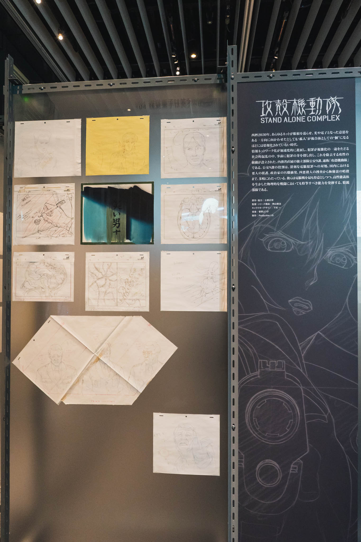 展示は1995年の劇場版『GHOST IN THE SHELL / 攻殻機動隊』から、2026年に放送を控える最新シリーズの原画まで、シリーズの全貌を体系的に網羅しています。