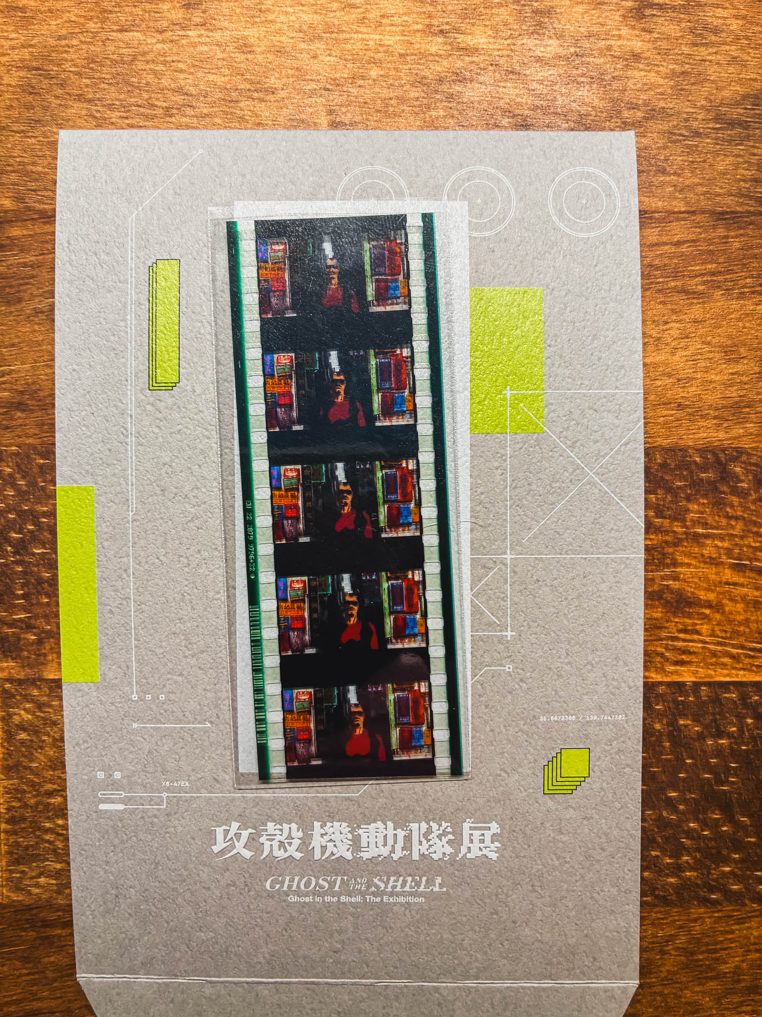 今回の来場特典として手にしたのが、押井守監督作品「GHOST IN THE SHELL オリジナル複製フィルム」です 。フィルムを光に透かすと、九龍城砦のような混沌とした背景の中に、ツァン・ゲン・ファーの姿が鮮明に浮かび上がります 。 手元にあるのは単なる「一コマ」の断片ではありません。連なるフレームが物語の鼓動を今にも伝えそうな、生きたシーンの記録です 。この緻密な描き込みこそが『GHOST IN THE SHELL』の凄みであり、デジタル化された情報の海にあって、唯一無二の「物理的な記憶」が私の手元に届きました 。
