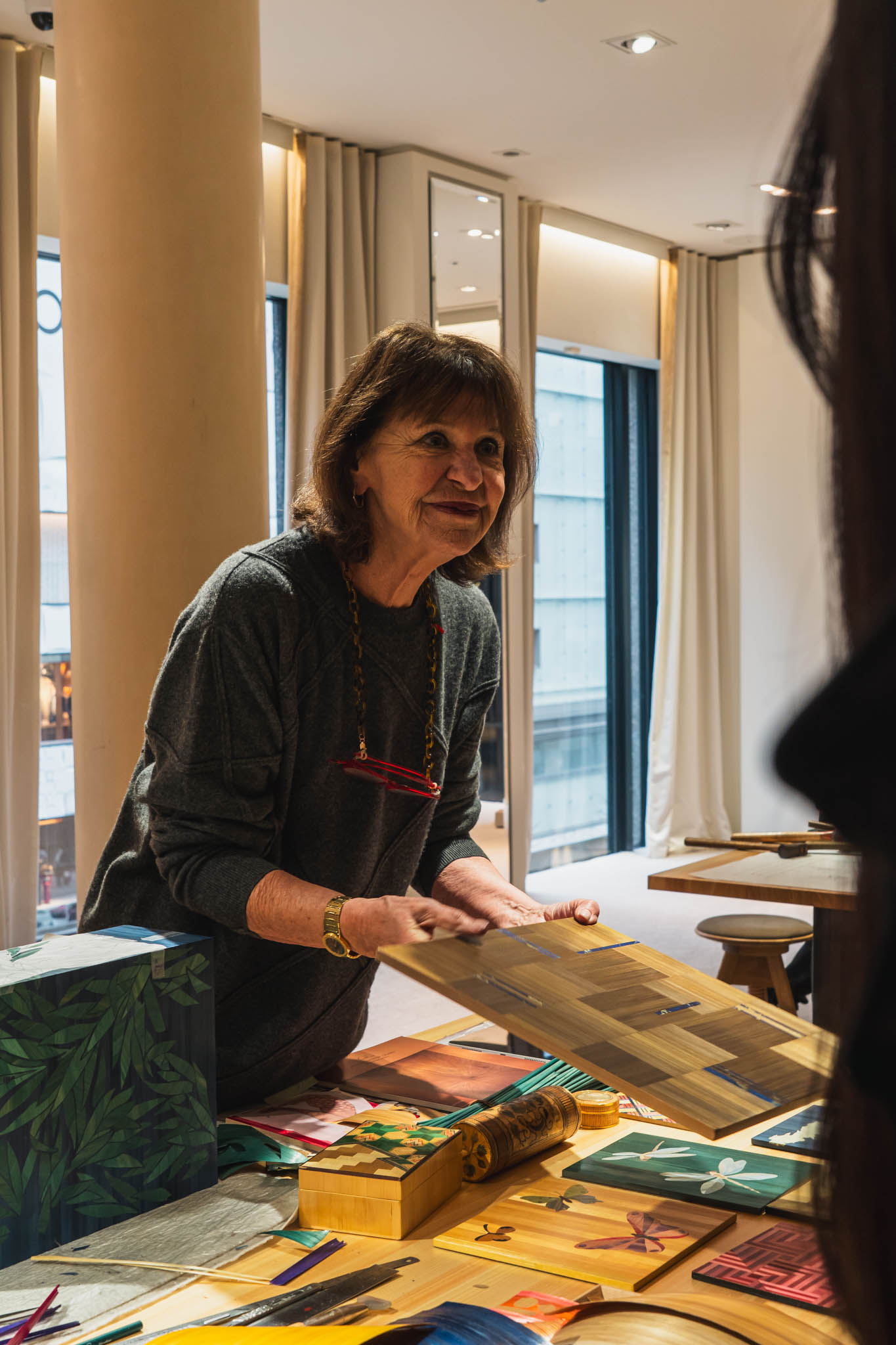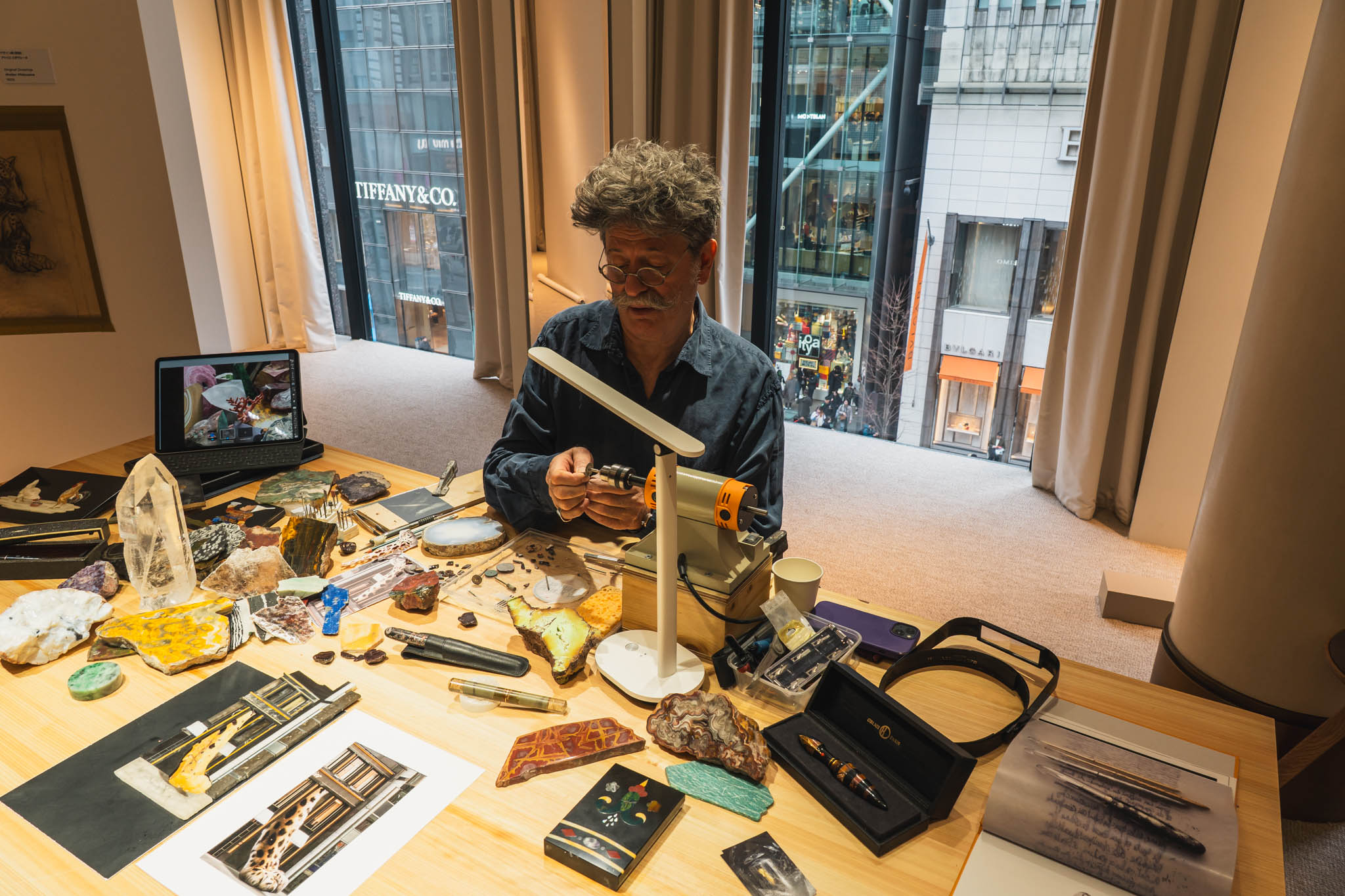 展示では、グリプティックにとどまらず、エングレービング、ストローマルケトリ、エナメル装飾など、多様な技術が紹介されていた。それぞれの職人は異なる専門を持ちながら、最終的にはひとつの作品のために協働する。