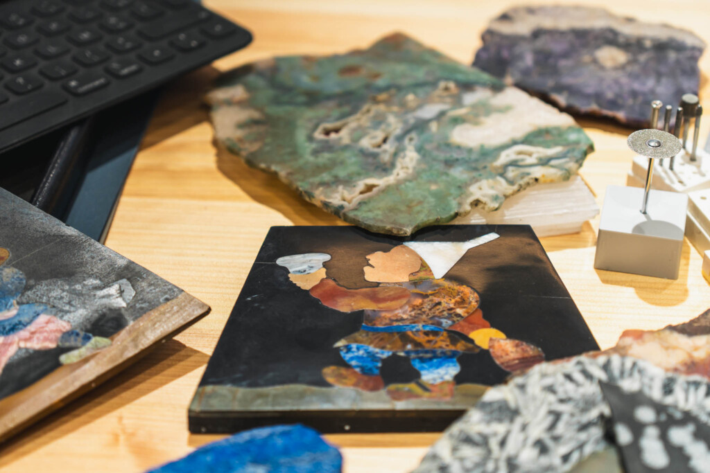 宝石に触れる刃先は、削っているというより、導いているように見える。素材の中にすでに存在している形を、解放しているかのようだった。
