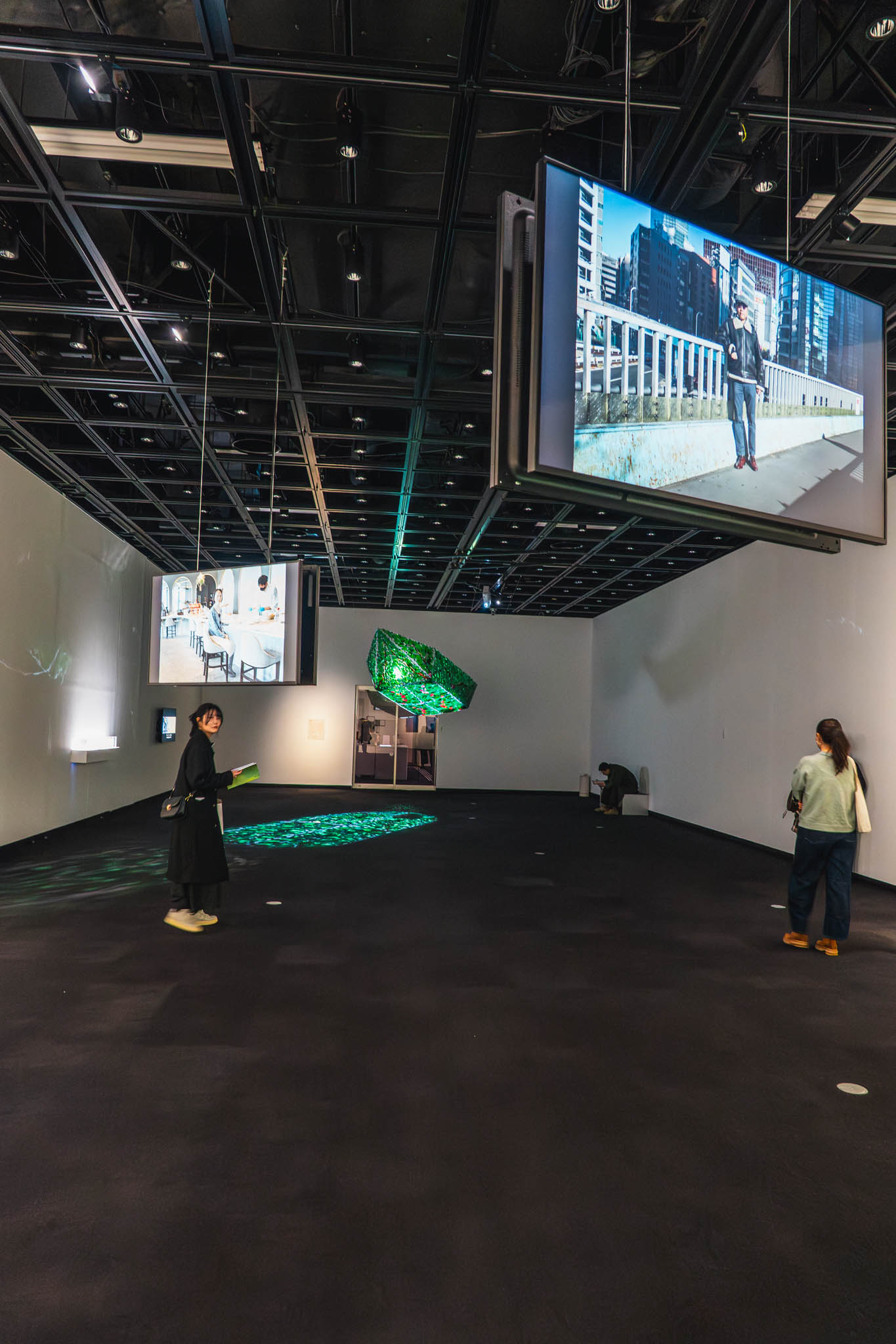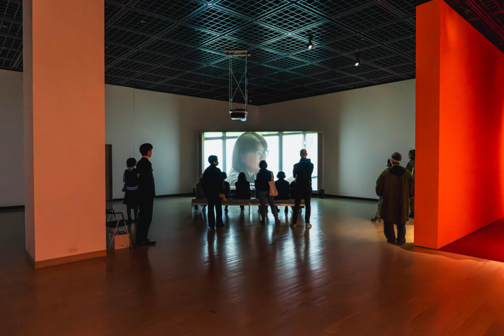 地下展示室が身体感覚への直接的な没入を促す空間であったのに対し、この2階展示室は、映像を通して個人の存在そのものを見つめ直すための空間だった。そこでは映像は単なる視覚体験ではなく、社会の中における「自己」を再認識するための装置として機能していた。