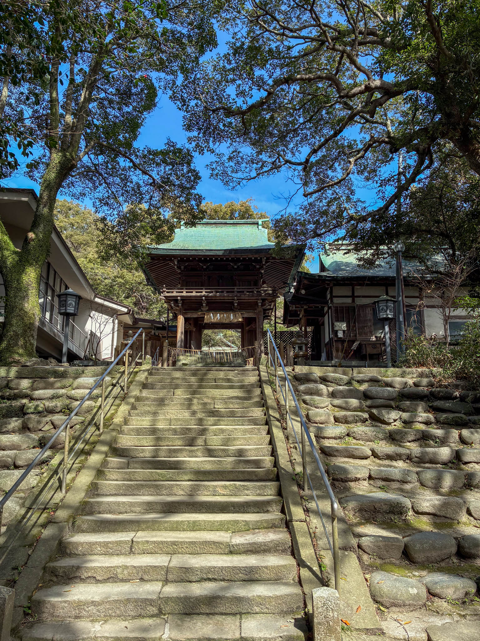 志賀海神社は「海神の総本社」「龍の都」と古くから称えられてきた、海の神様の頂点に立つ神社です。高台に鎮座しているので、境内からは玄界灘を一望できます。この日は風に洗われた空気が澄んでいて、海の青さがひときわ鮮やかでした。