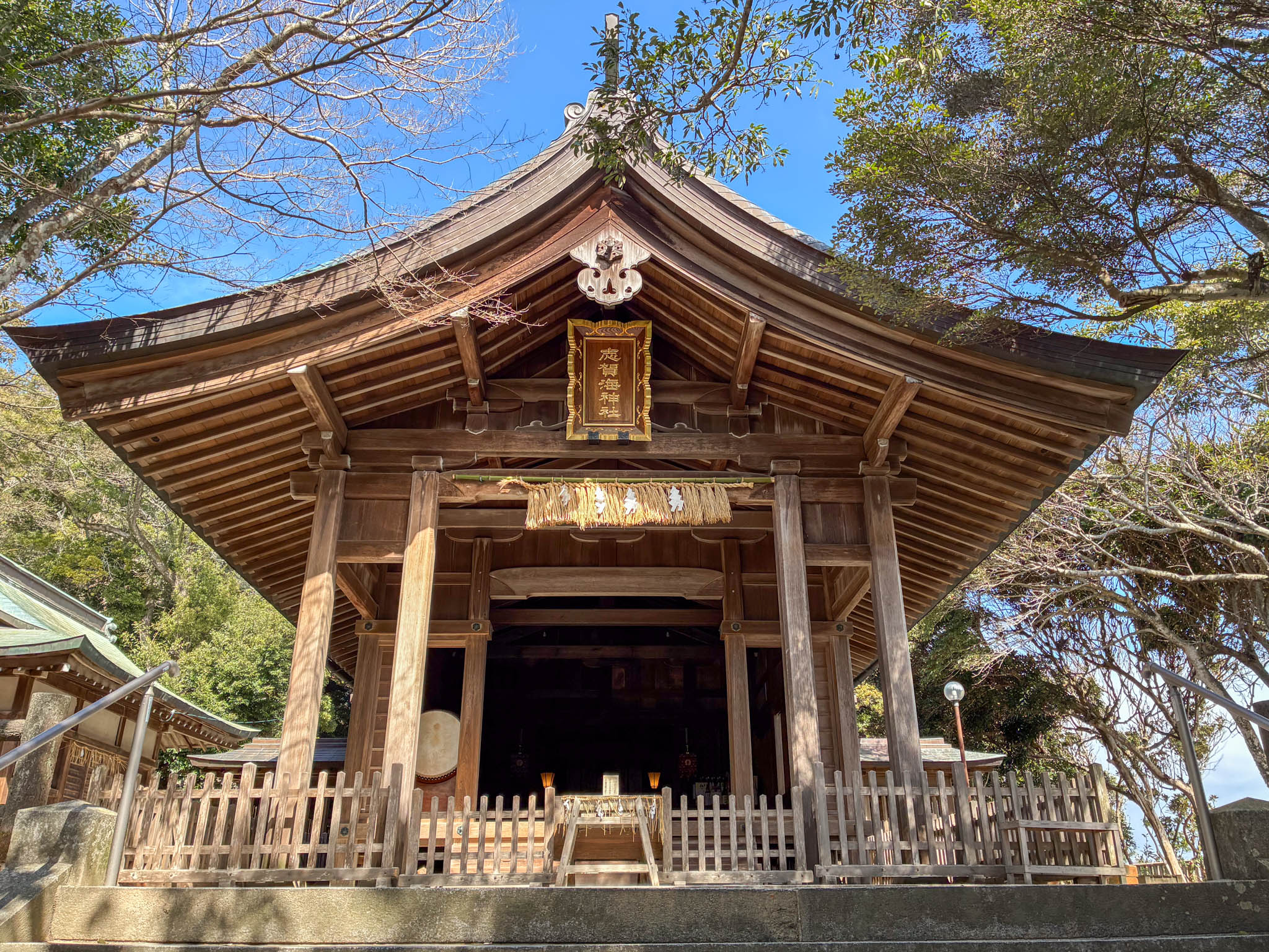楼門をくぐると、海の神様にふさわしい凛とした空気が満ちています。派手さはないけれど、長い歴史の重みと品格が伝わってくる社殿でした。