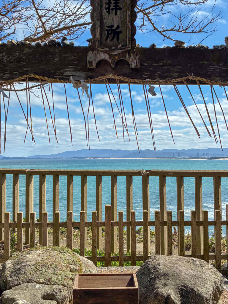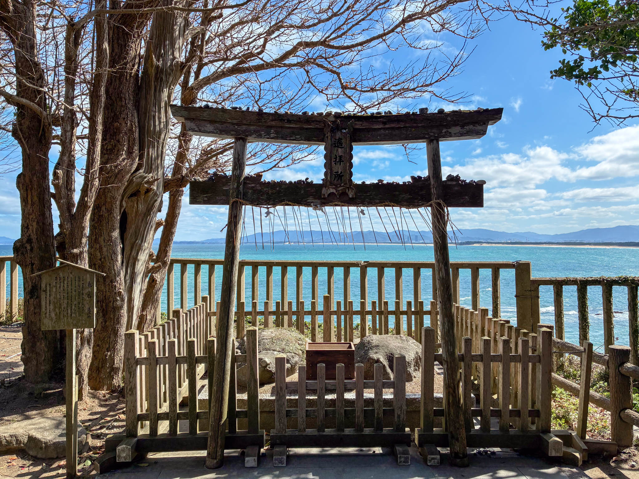 一般的な神社の手水舎とは違う、海の神社ならではの清め方。砂を振りかけた瞬間、なんだか気持ちがシャンと引き締まるような感覚がありました。「これから神様の領域に入るんだ」という意識が自然と芽生えます。