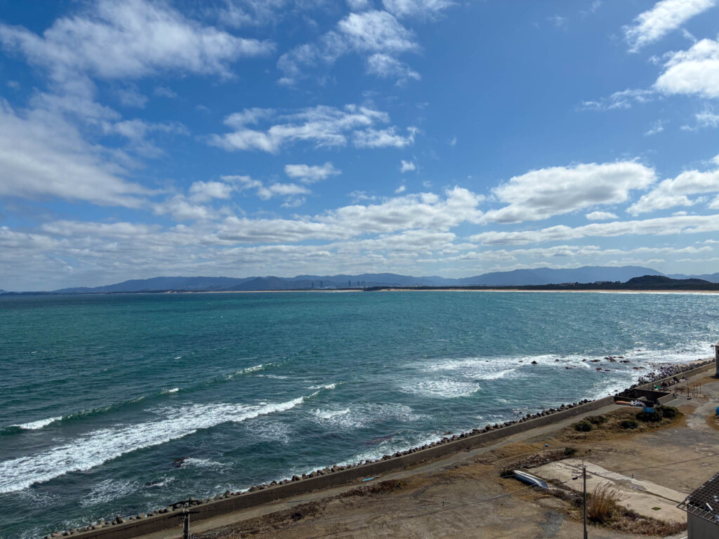 ところが、志賀島に入って神社の近くまで来ると、いつの間にか雲が切れて青空が広がっていたんです。風も少し穏やかになり、車の窓を開けると潮混じりの澄んだ空気が入ってきて、思わず深呼吸したくなるような気持ちよさでした。
