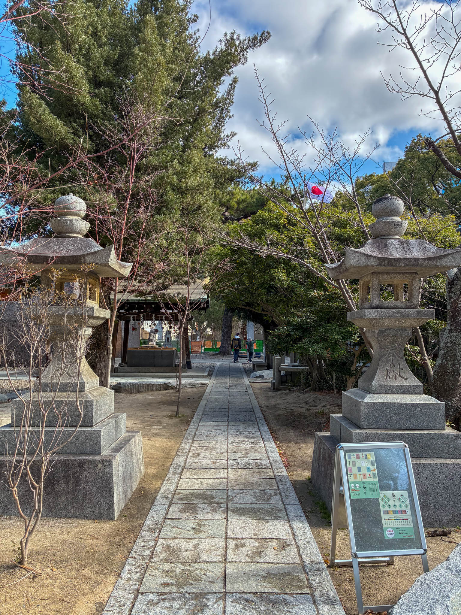 3月中旬の午前中、境内はとても穏やかな空気に包まれていました。時おり風が吹き抜け、木々がさわさわと揺れる音と、どこからか聞こえる鳥のさえずり。福岡の都心部にいるとは思えない静けさです。