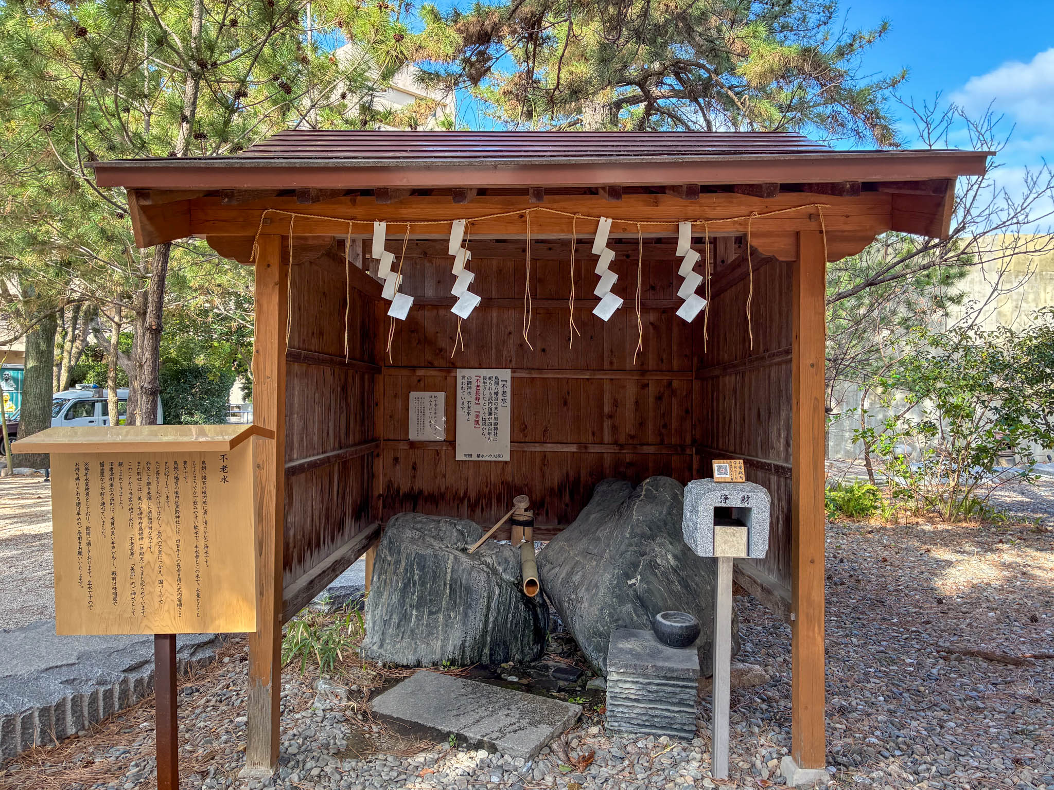 境内には「不老水」と呼ばれる名水が湧いています。不老長寿や美肌にご利益があるとされ、飲用もできるそうです。参拝の際にはぜひ立ち寄ってみてください。