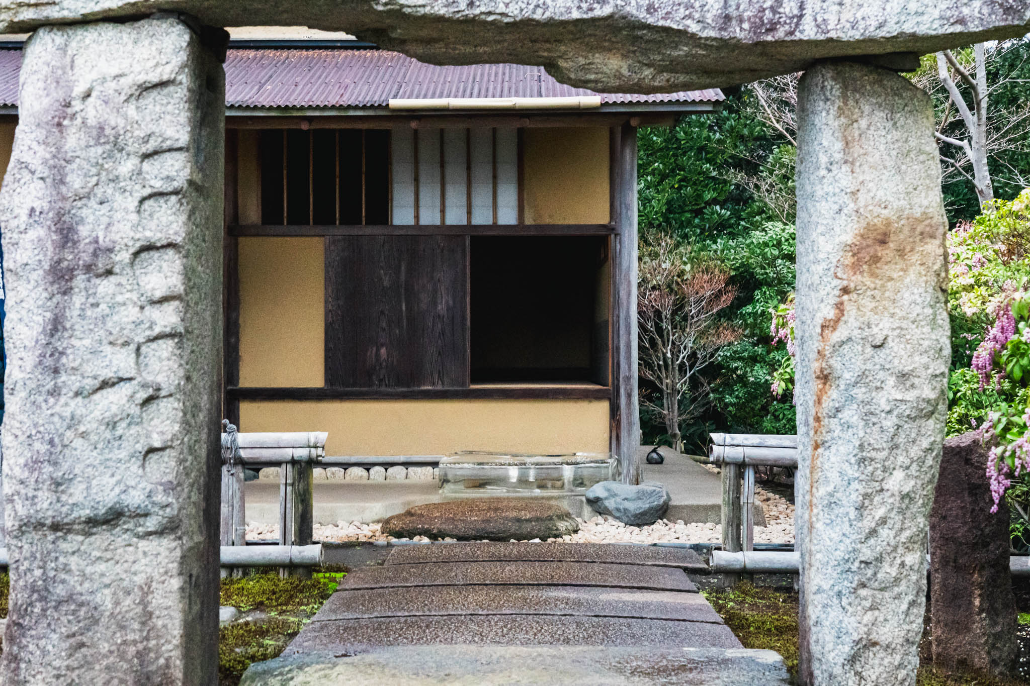 室町時代に建てられ、関東大震災で半壊した後、根津美術館の正門を経てこの地に再建された「明月門」。茶室「雨聴天」。4回目の訪問でも新しい発見があるのが江之浦測候所の面白いところだ。季節や時間帯、天候によって見え方がまったく変わるから、何度訪れても飽きることがない。