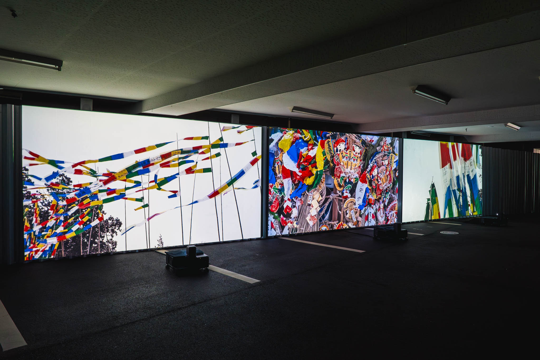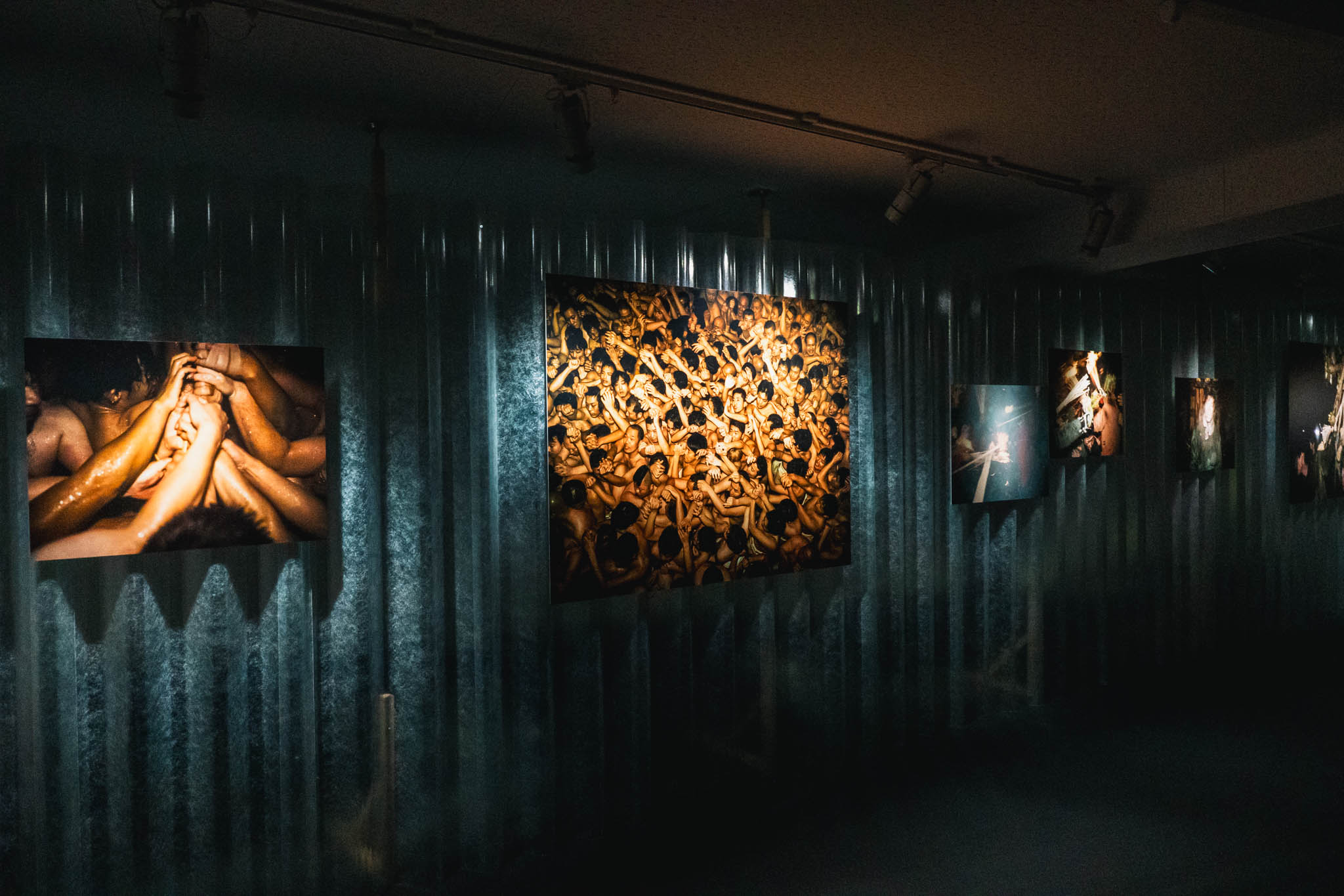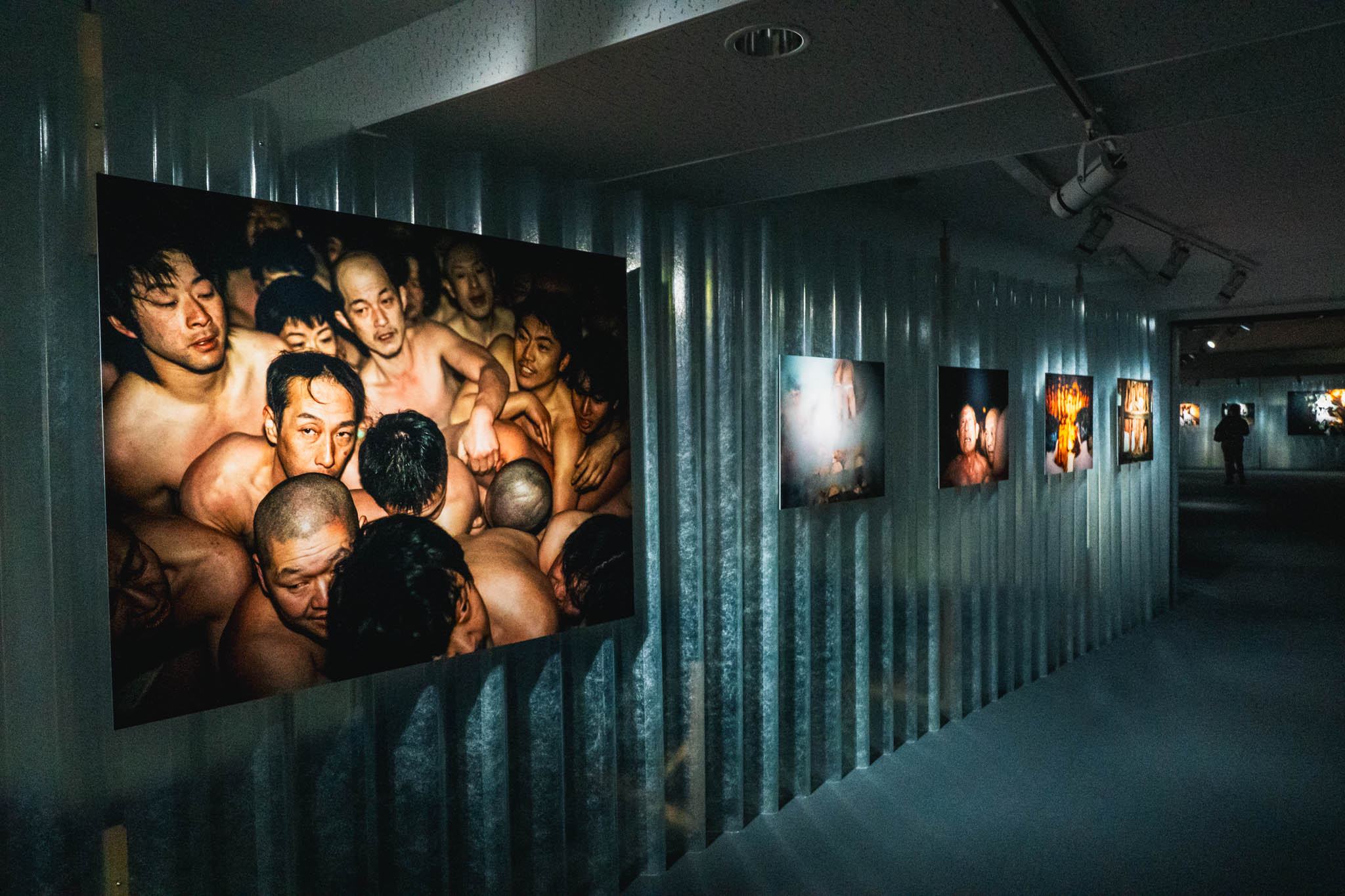 さらに1階では、4シリーズを映像にまとめた約9分の作品が3面の巨大スクリーンで初公開されていました。この映像が、とにかく迫力がありました。薄暗い空間の中で3方向から押し寄せてくる映像は、静止画よりもさらにダイレクトに、祭りの熱気と群衆のうねりを体に伝えてきます。