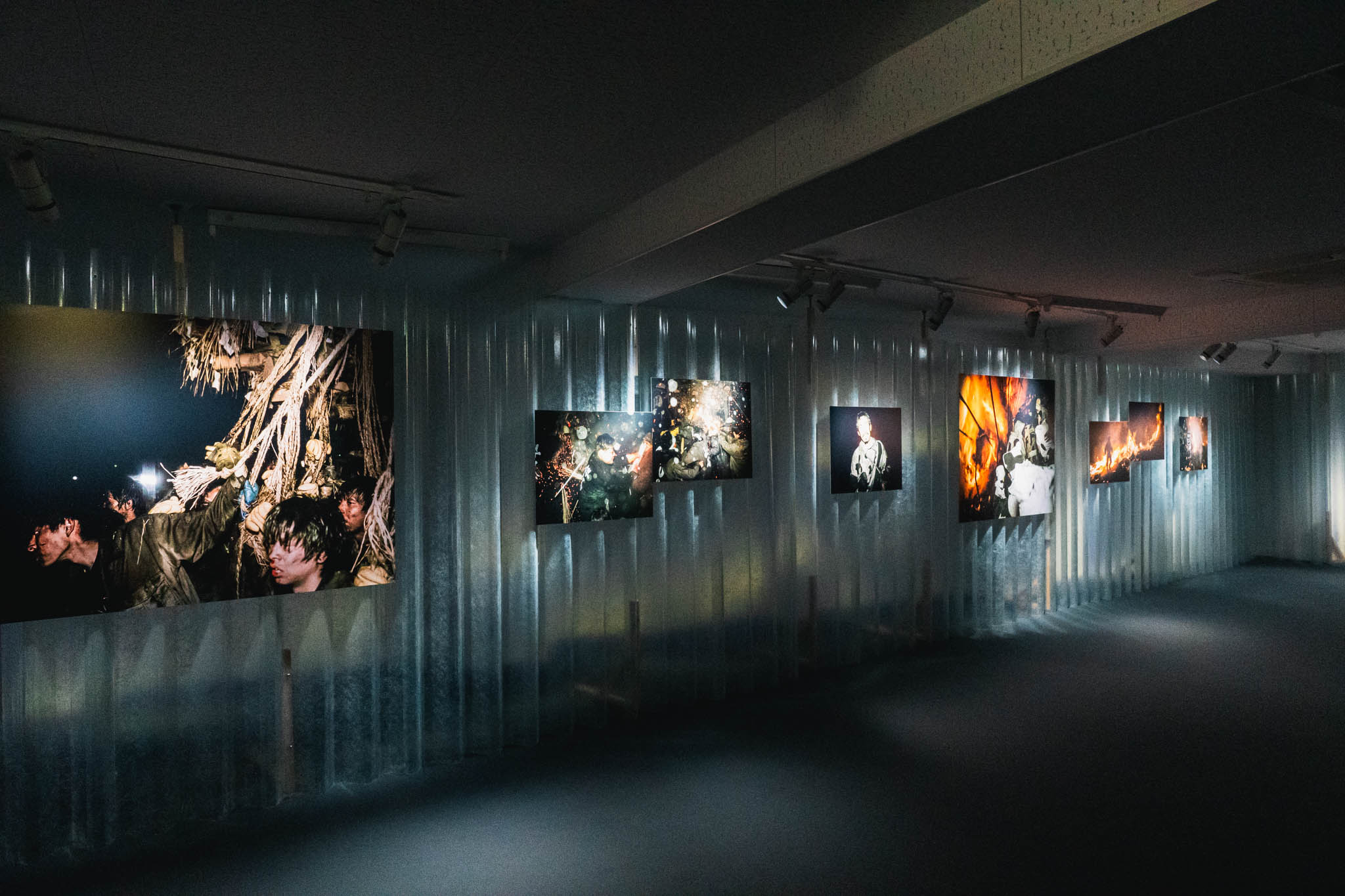 会場のくろちく万蔵ビルに入ると、まず空間の重さに引き込まれます。薄暗く重厚な雰囲気の中に、世界各地の祭りを捉えた写真が並んでいました。