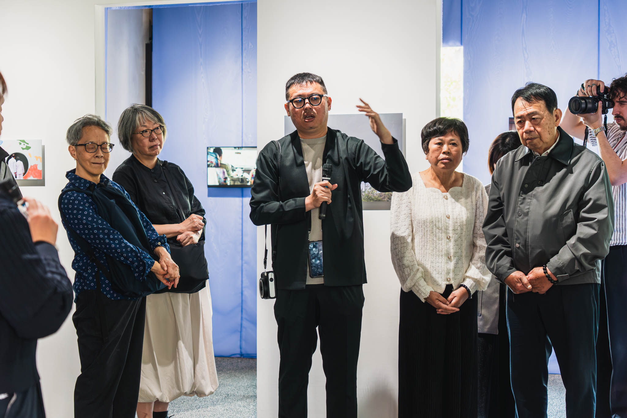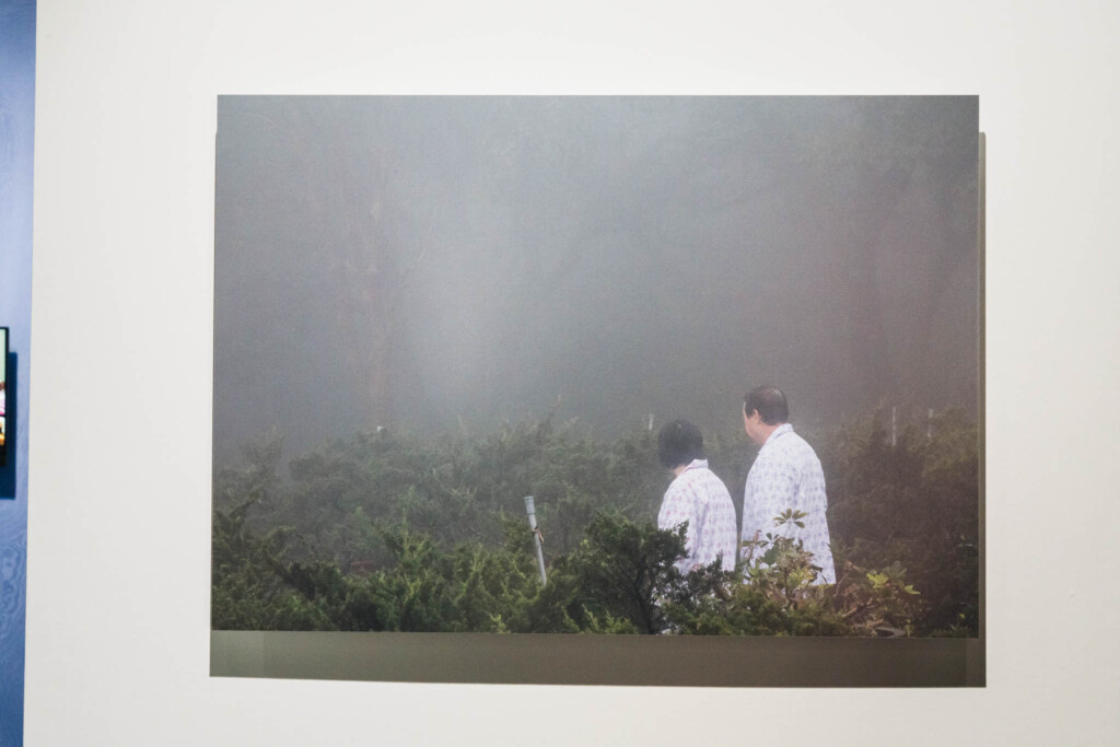 開幕初日の4月12日には、劉星佑本人によるアーティストツアーが開催されていました。しかも、このツアーのゲストは劉の「ご両親」。通訳を介してではありましたが、作品の中に登場するご両親が、実際に展示の前に立って話を聞いているという光景は、他の展示では絶対に体験できない特別な瞬間でした。