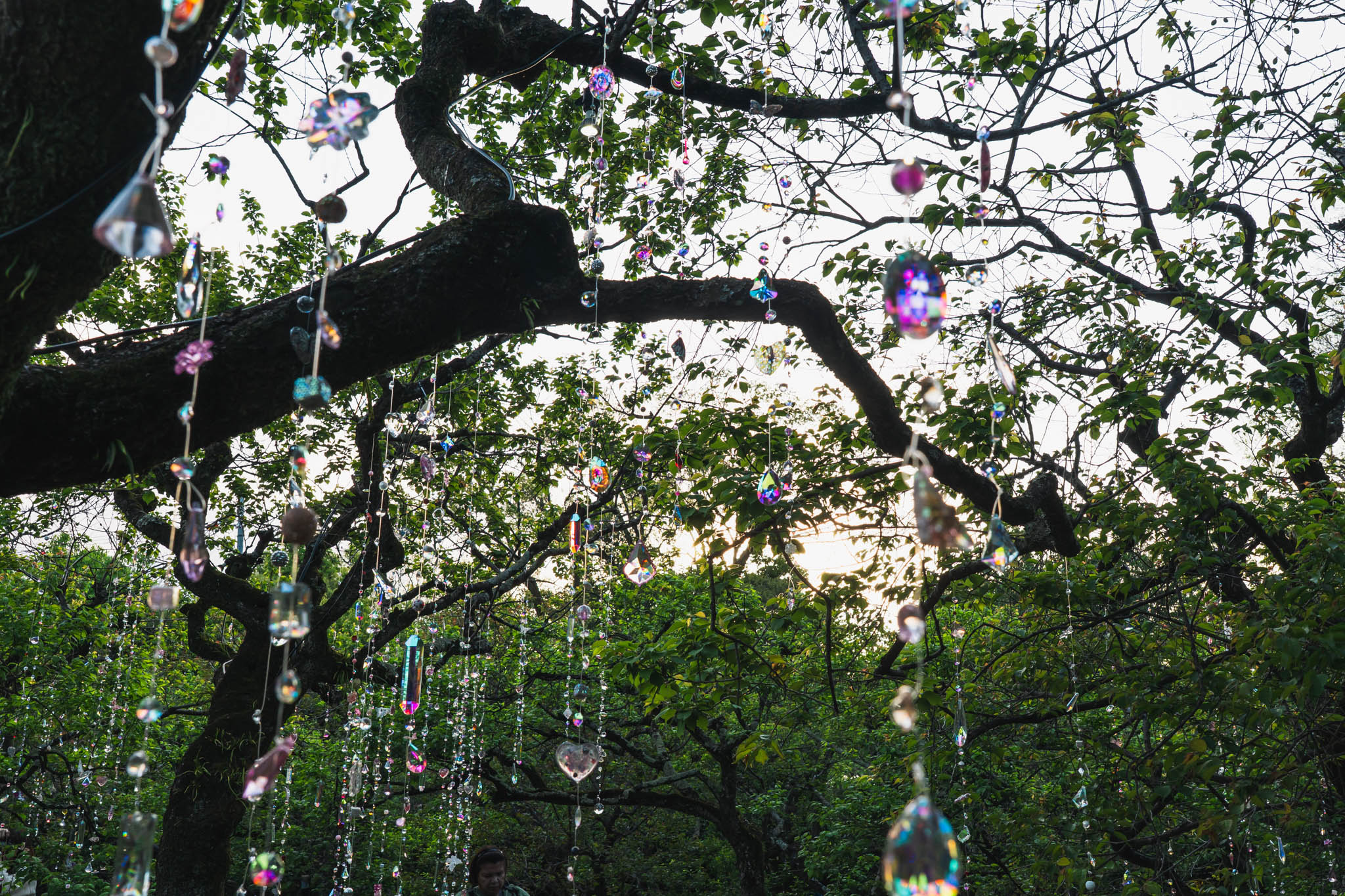 18時前に訪れると、夕日がまだしっかりと残っていました。橙色の光に照らされたクリスタルはやわらかく輝き、どこか夢の中にいるような感覚を纏っています。多くの方が訪れており、みなさん思い思いの角度でスマートフォンや一眼カメラを向けていました。それだけ被写体としての引力を持つ作品でもあります。