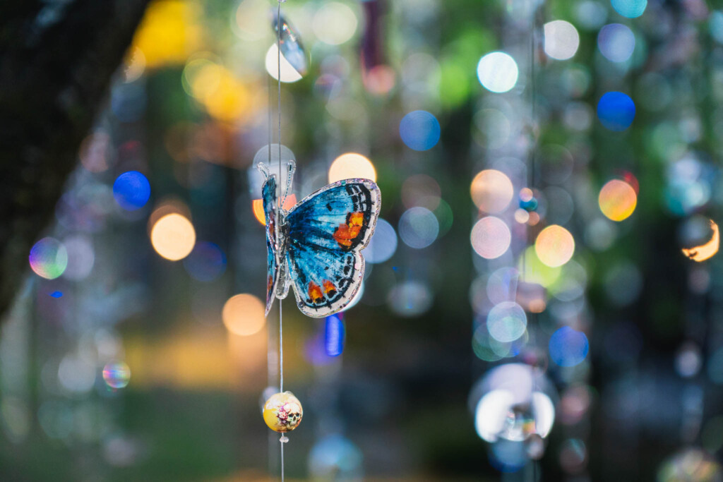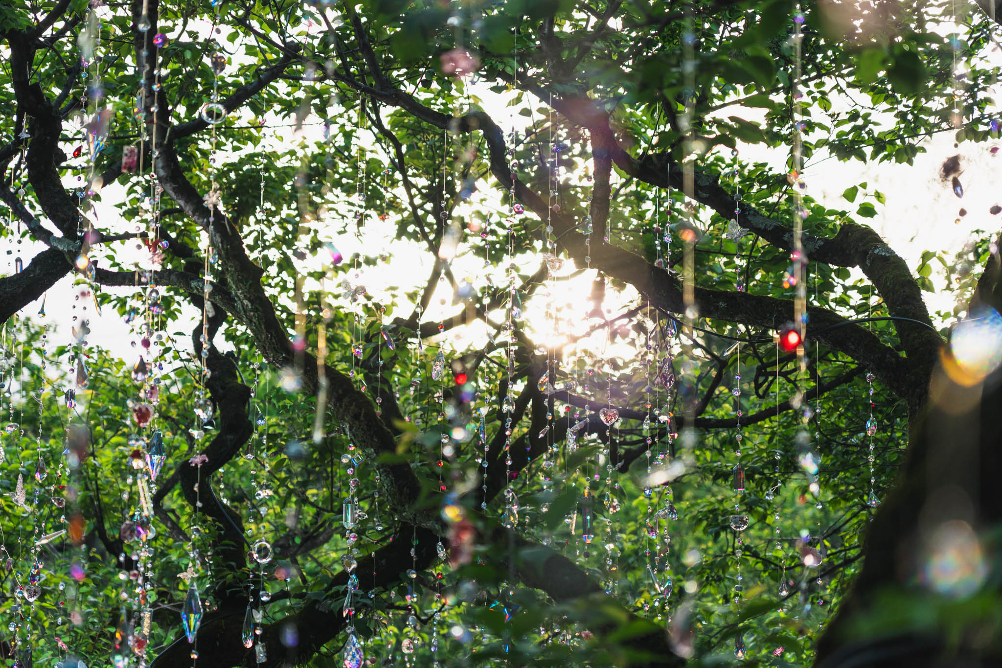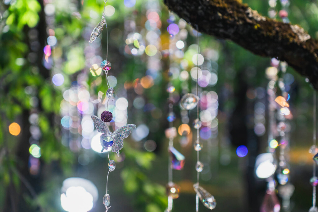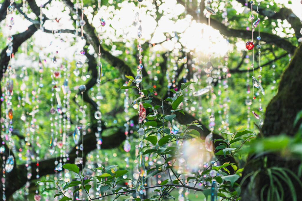 1200本のクリスタルが宙に浮かぶ「光と花の庭」