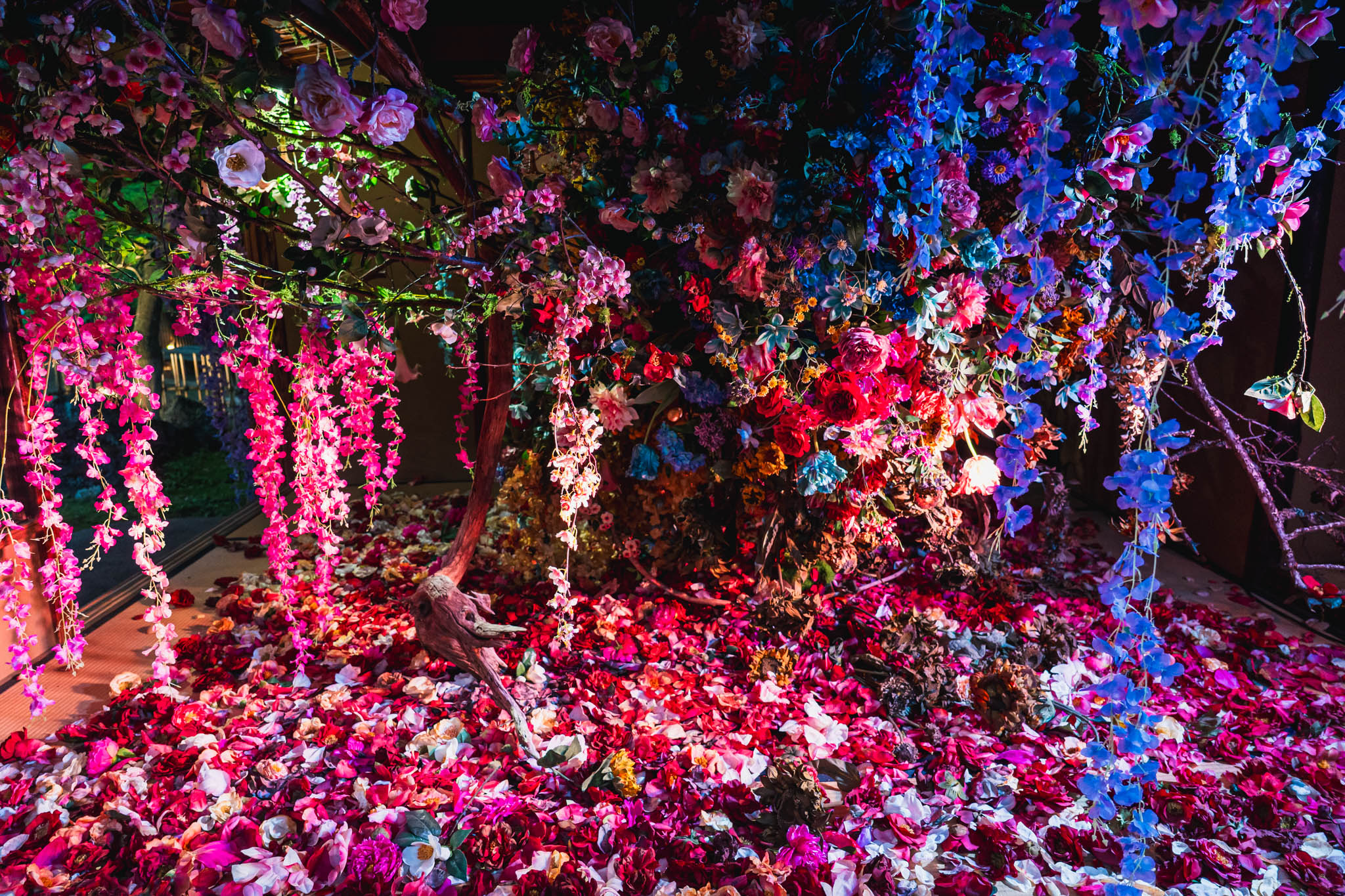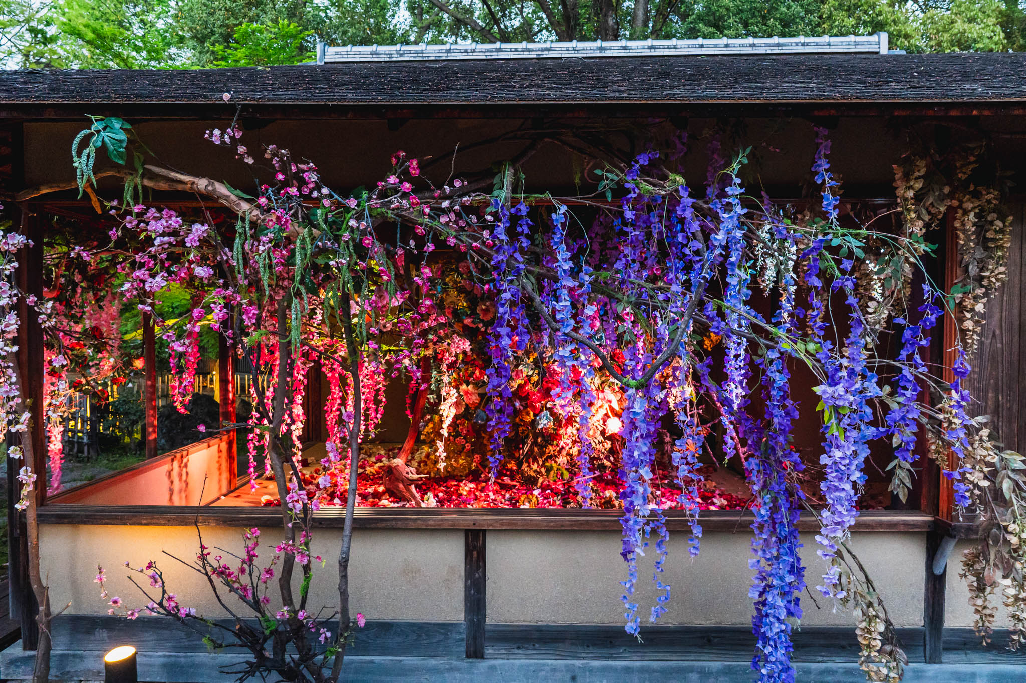 - 「光と花の庭」「残照」インスタレーションを夕方〜夜にかけて体験した様子