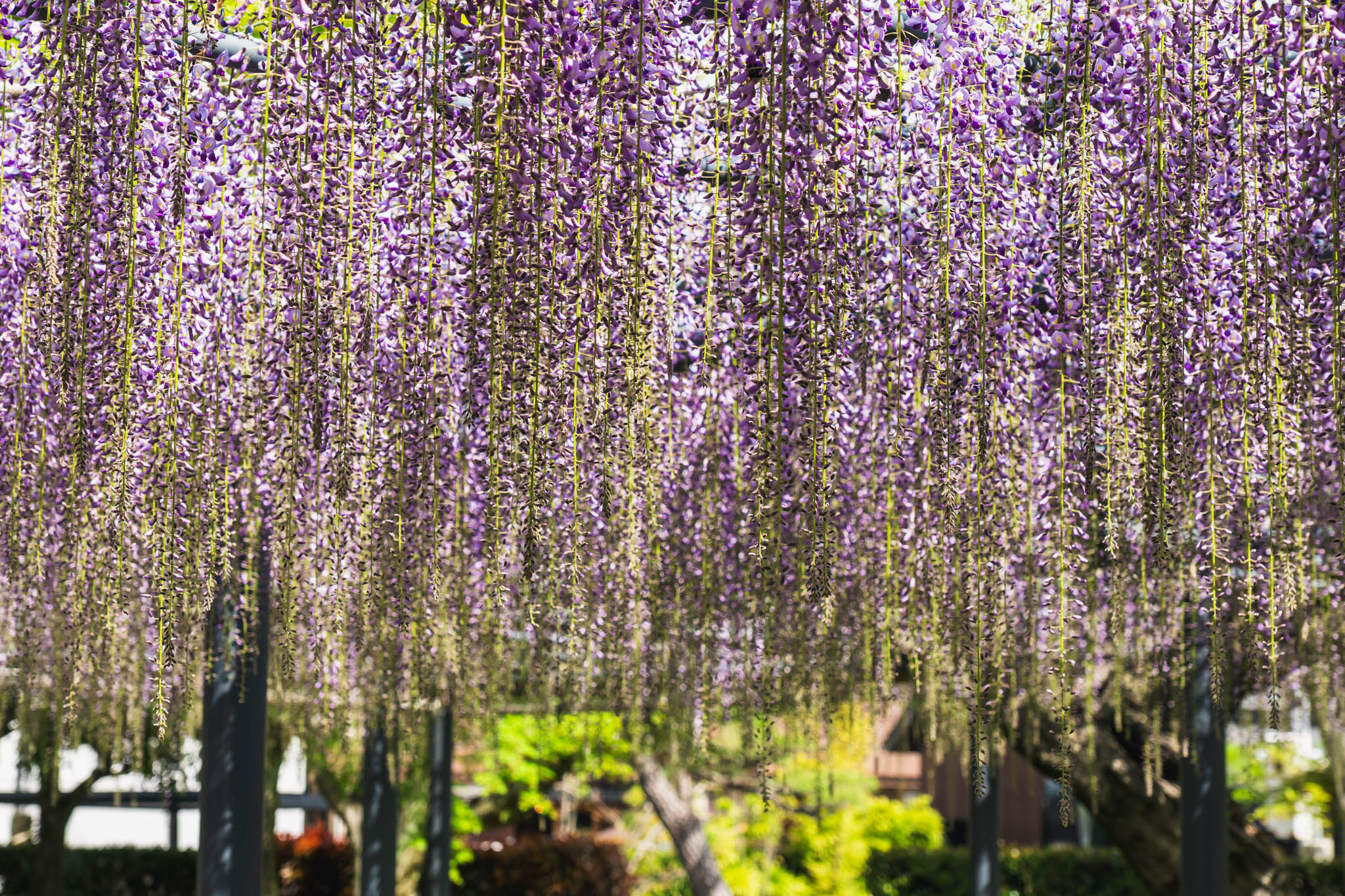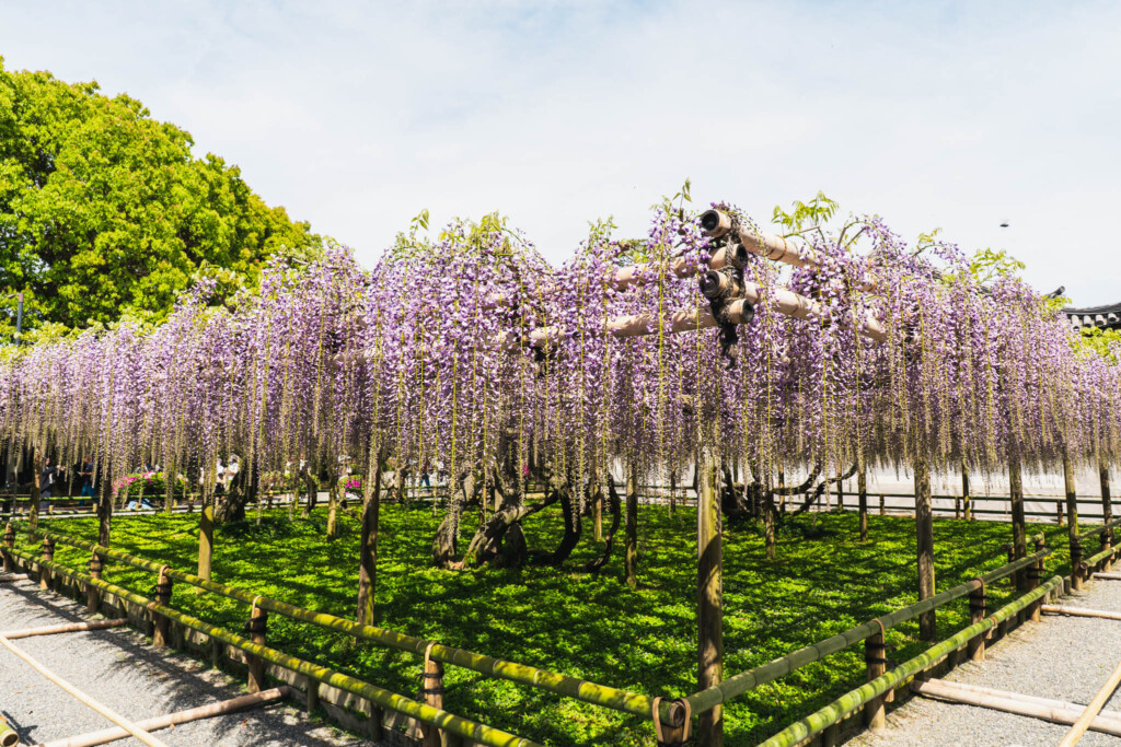 私は午前中に訪れましたが、結果的にとても良いタイミングだったと感じています。朝の光の中で見る紫の藤は色が澄んで見え、観光客もまだそれほど多くはなかったので、写真を撮るのにも、ただ静かに眺めるのにも適していました。