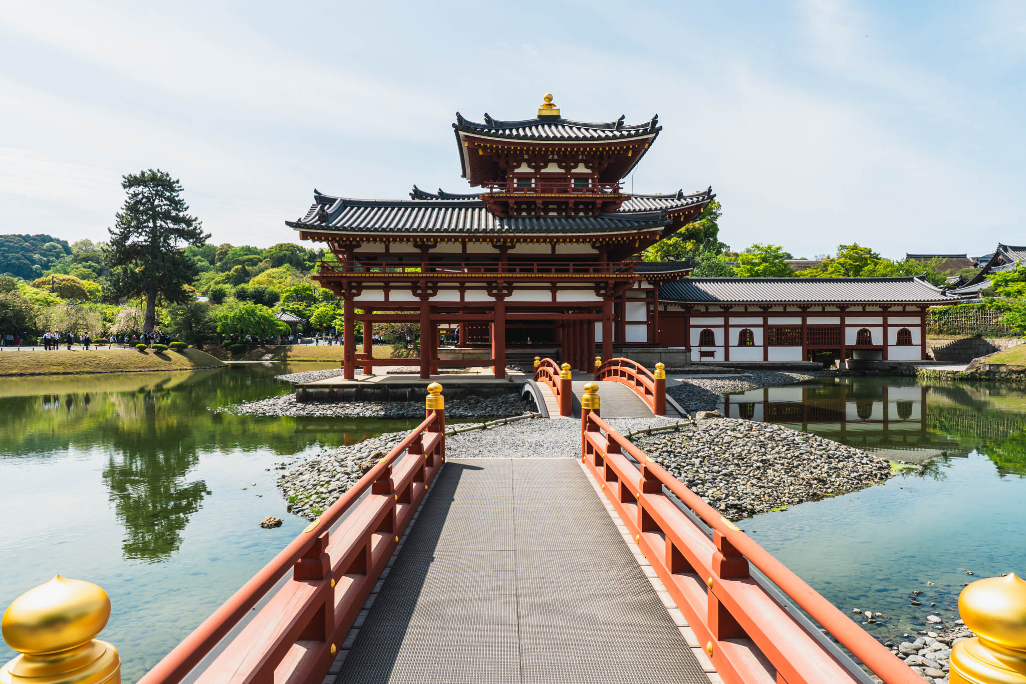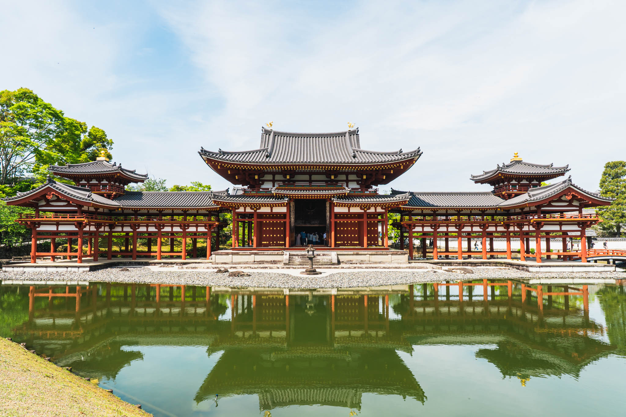 この日は風が穏やかで、池の水面に鳳凰堂の姿がうっすらと映り込んでいました。建物そのものの美しさもさることながら、「池越しに見ること」「光と水の反射を含めて眺めること」までが設計に組み込まれているのだと実感しました。平安時代の人々が、どれほど丁寧にこの景観を作り上げたのかを思うと、ただ立ち尽くしてしまう時間がありました。