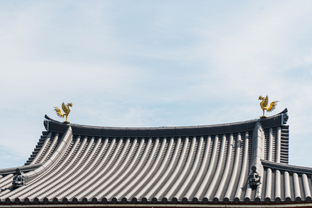 鳳凰堂の屋根の上で、長い年月のあいだ参拝者を見守ってきた国宝の鳳凰一対も、ここで間近に拝観することができます。遠くから屋根越しに見上げるのと、目の前で細部まで観察するのとでは、まったく違う体験です。