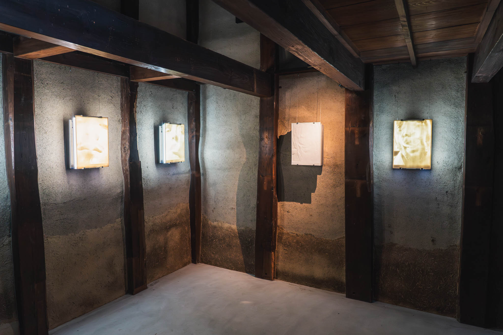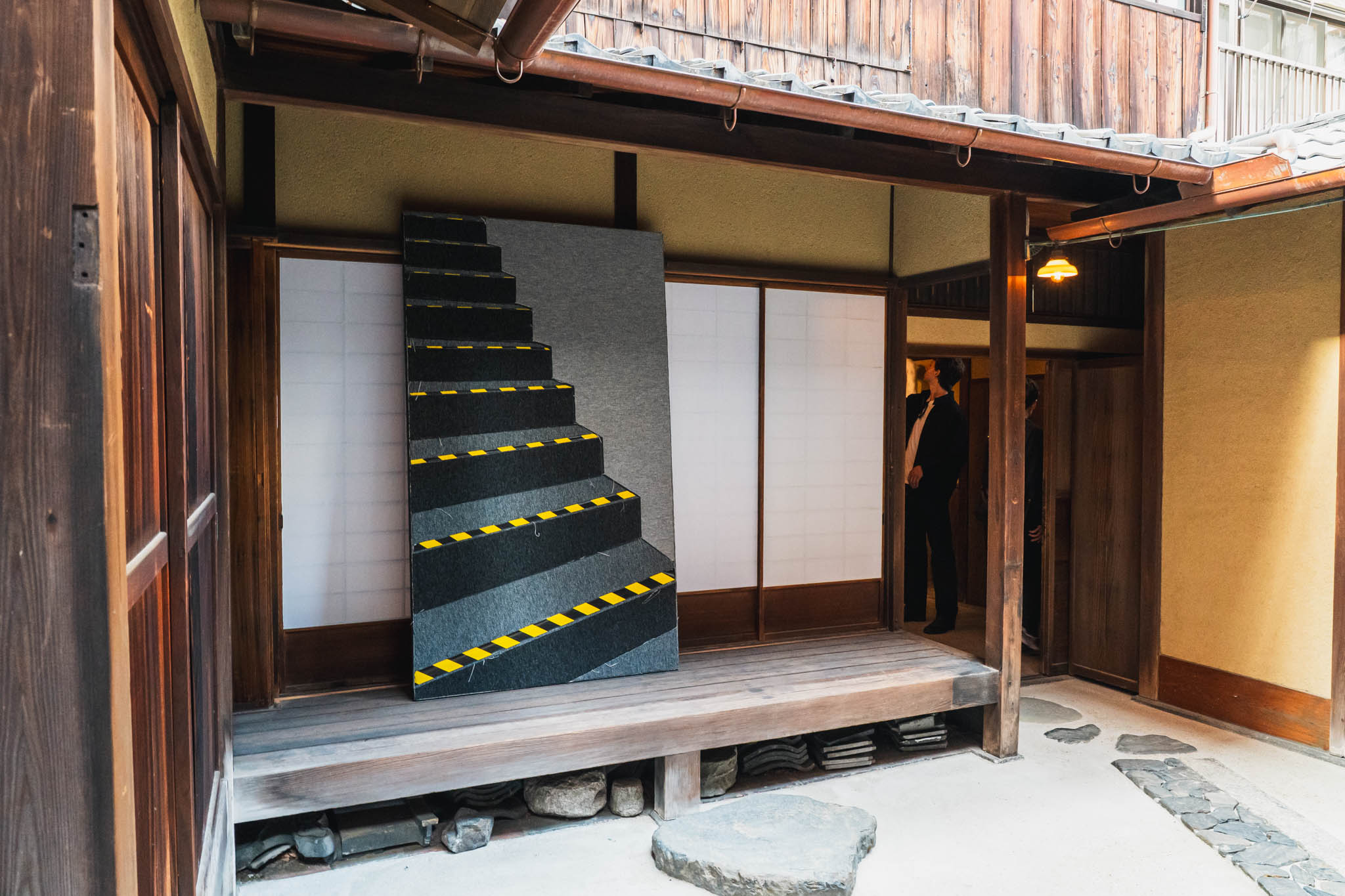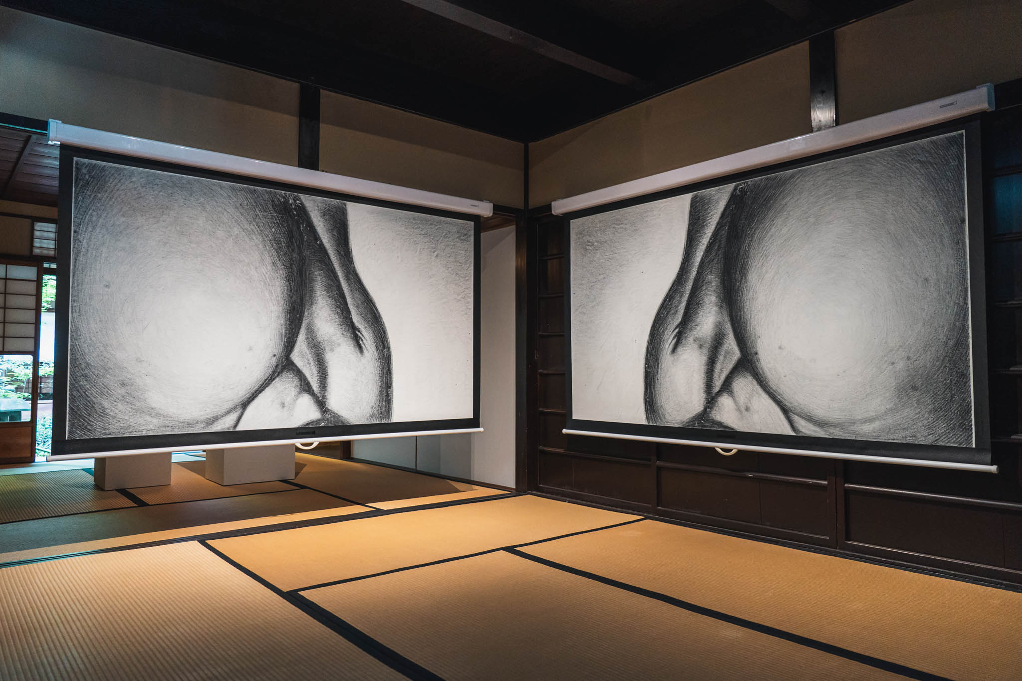東京・九段ハウスの全面ビニール被覆を見たあとに振り返ると、この「素のまま」の選択がいかに意図的であったかが理解できます。京都は引き算の展示。空間と作品の間に、たっぷりとした余白がある。